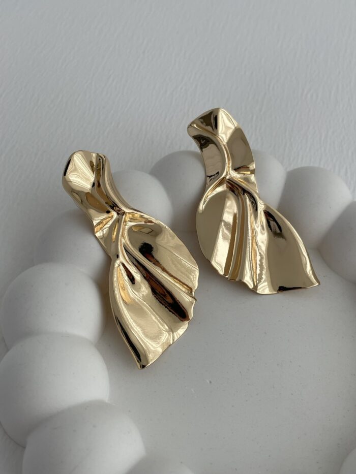 Özel Seri Kurdele Tasarım Büyük Gold Plaka Küpe