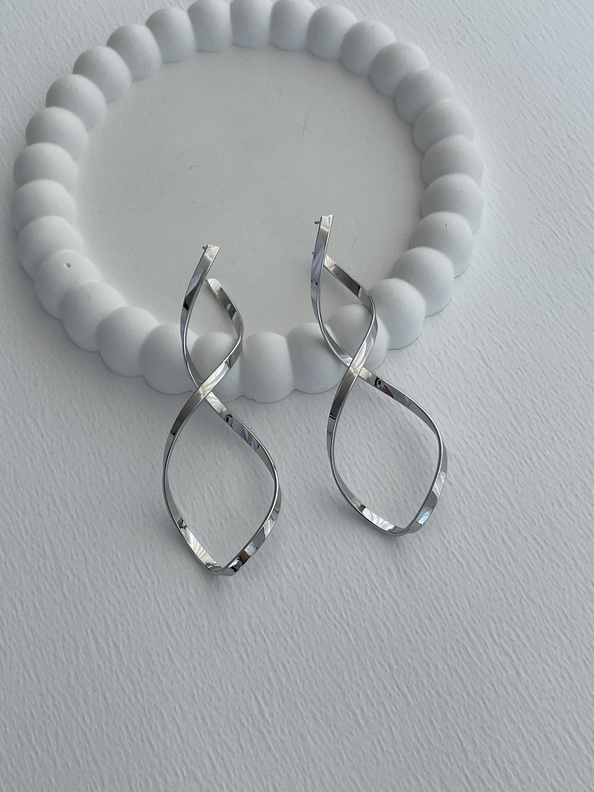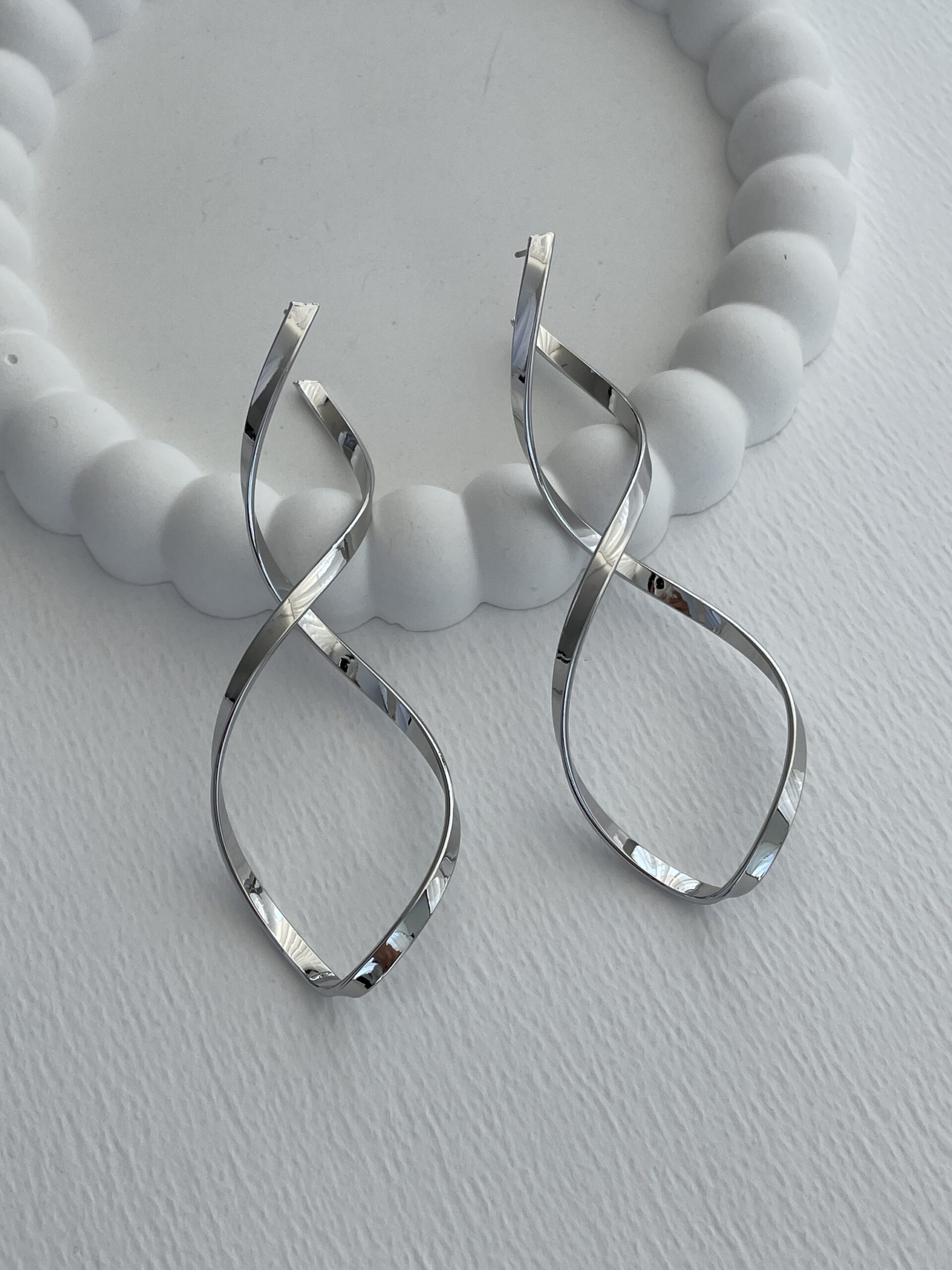 Özel Seri Kurdele Tasarım Büyük Gümüş Küpe