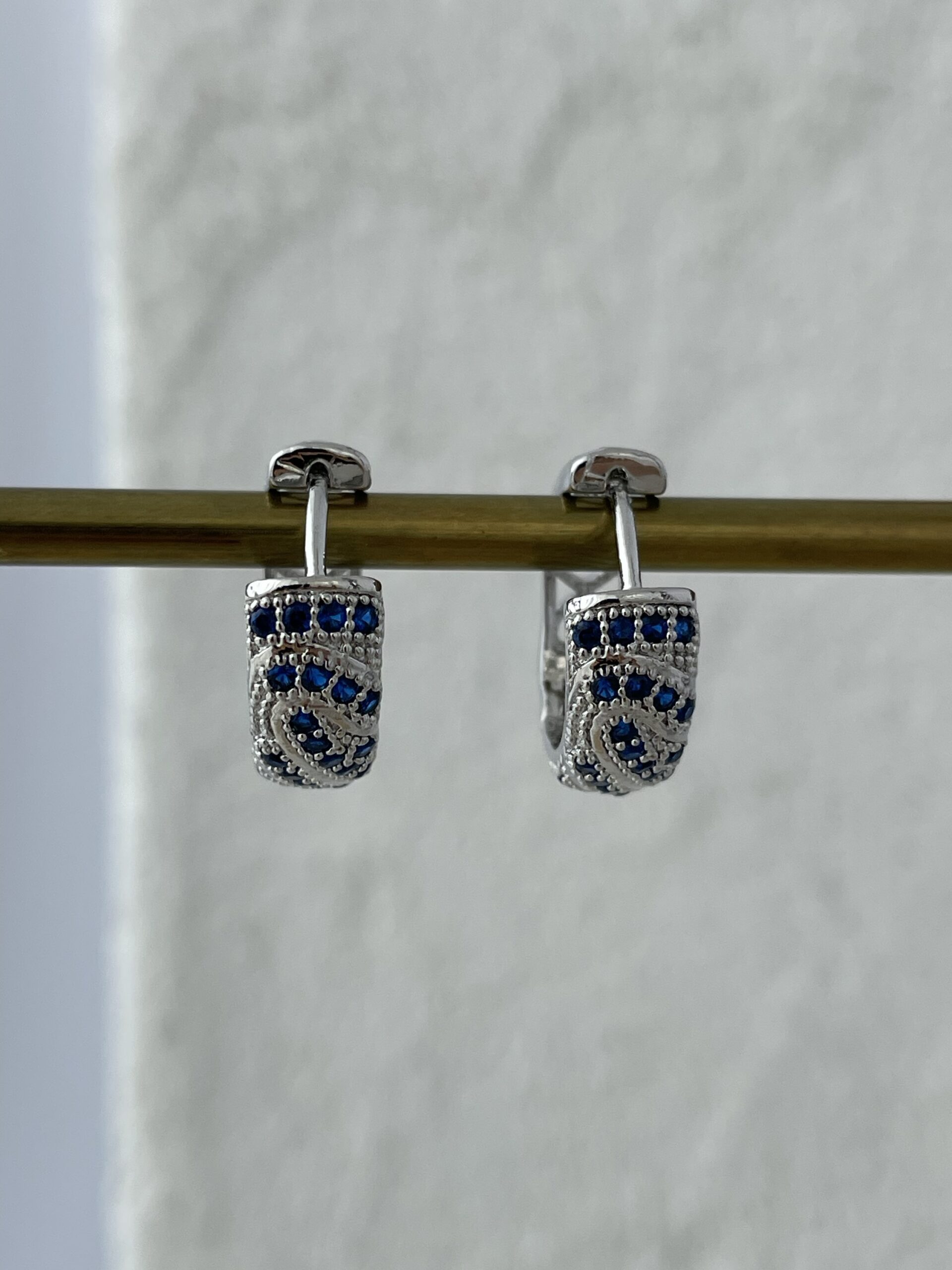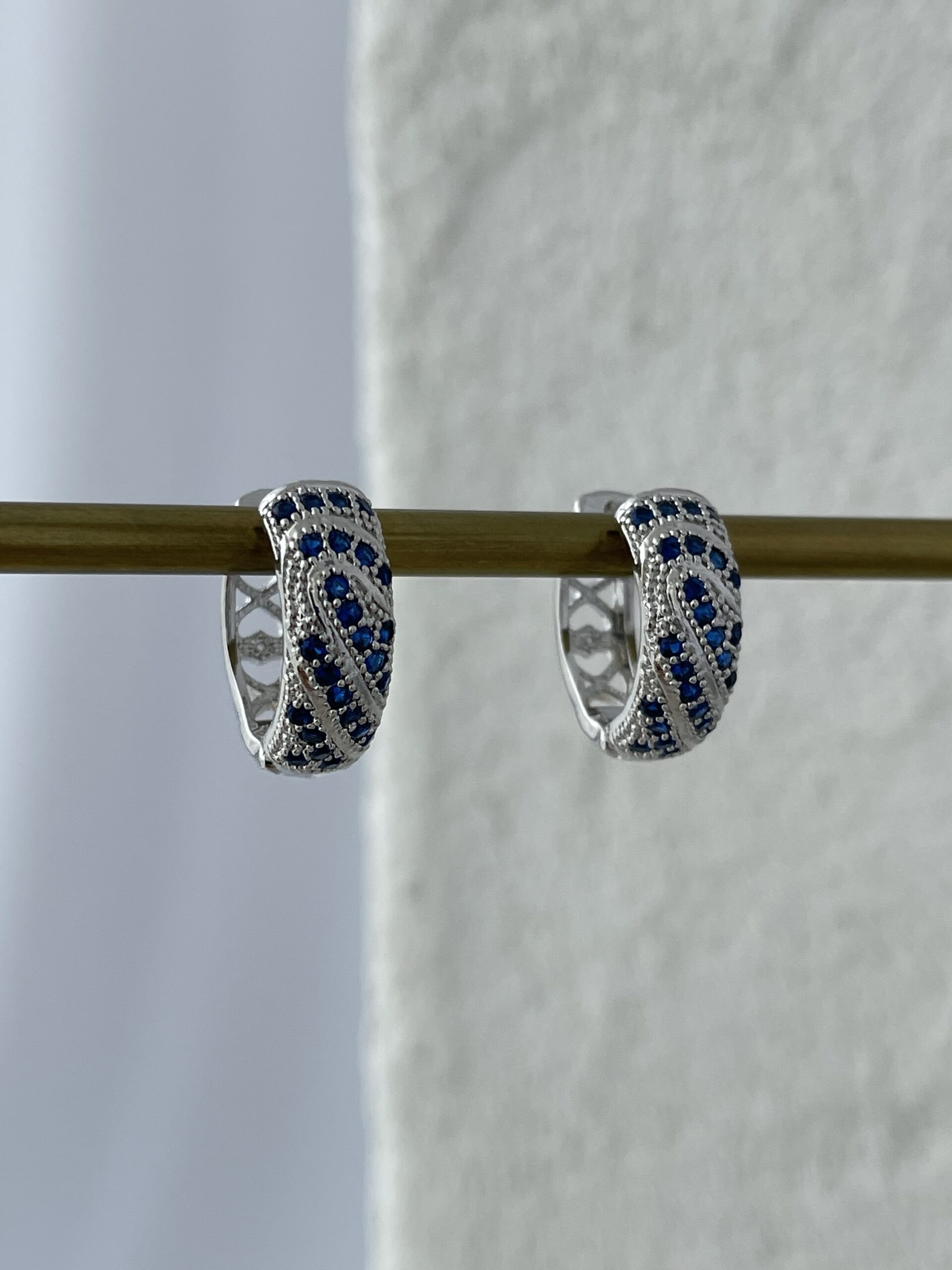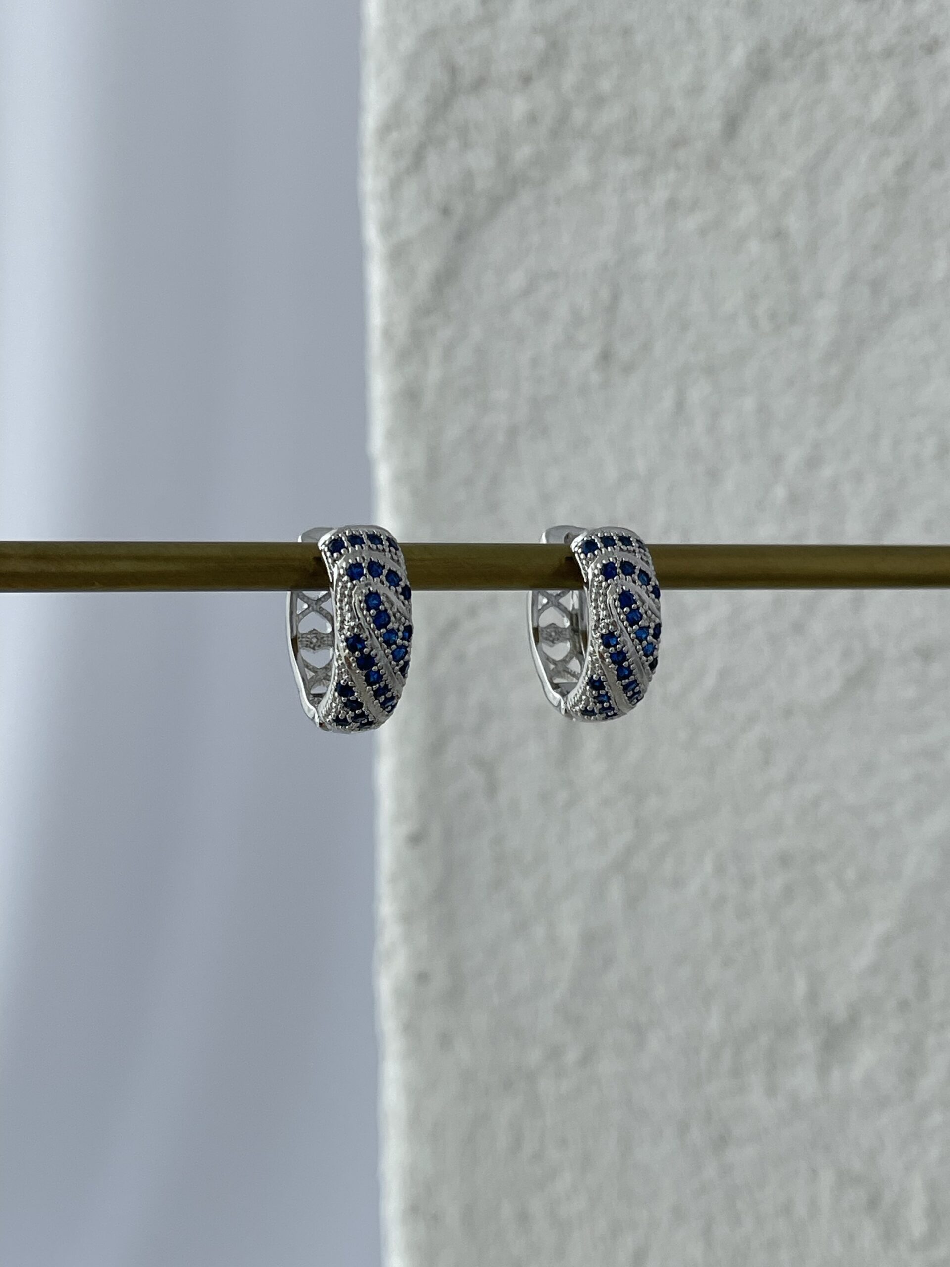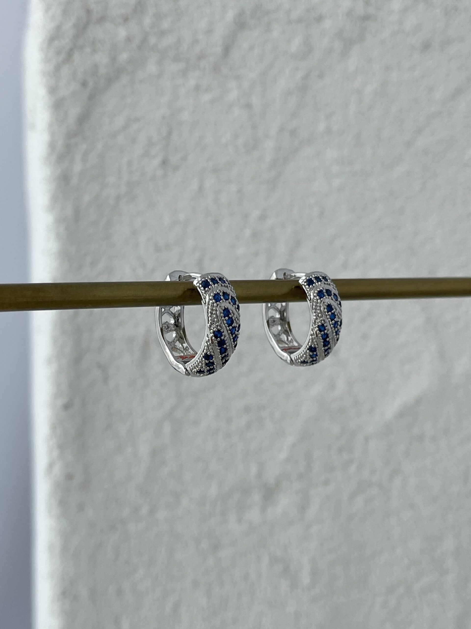 Özel Seri Lacivert Zirkon Taşlı Gümüş Halka Küpe