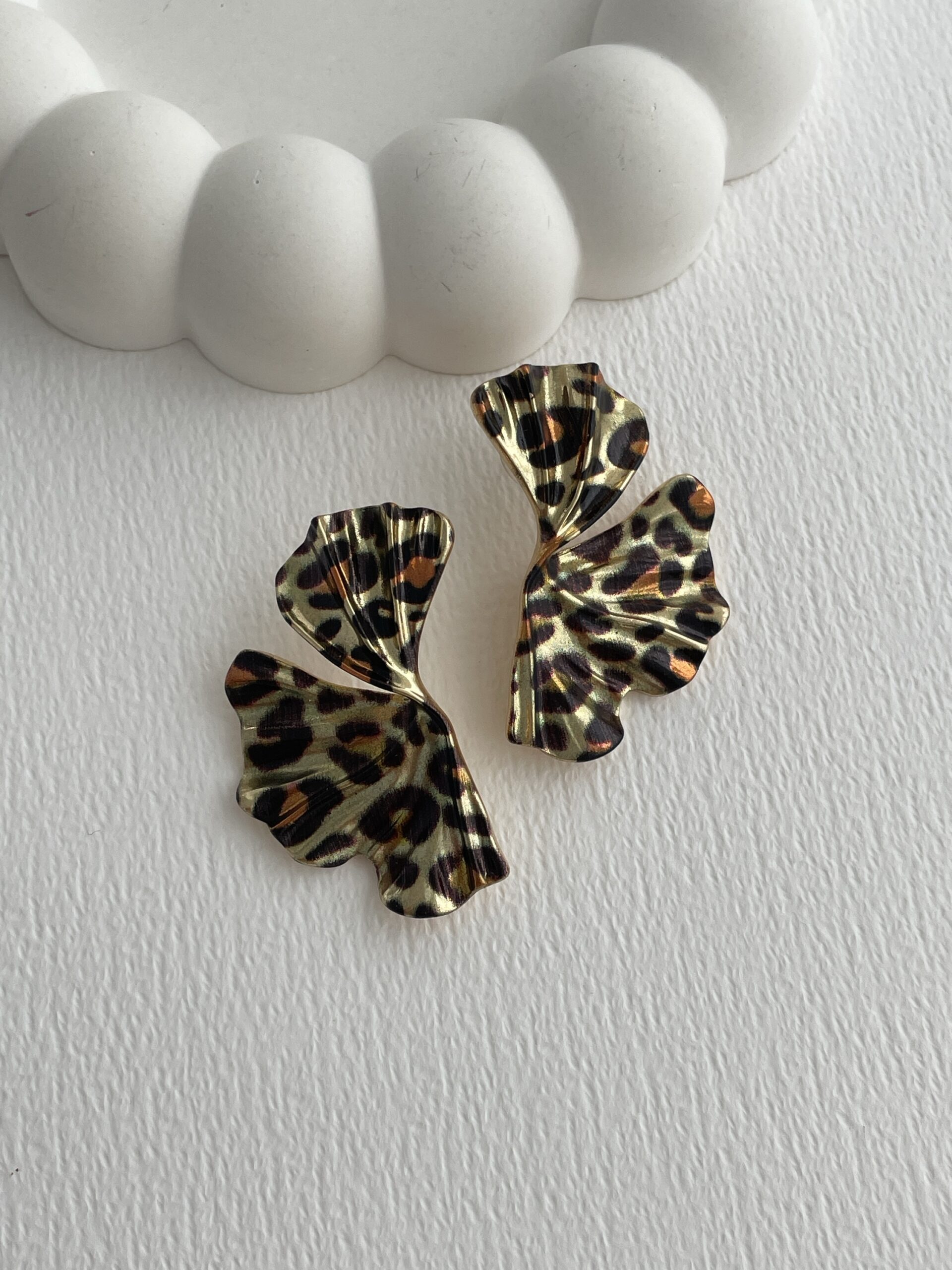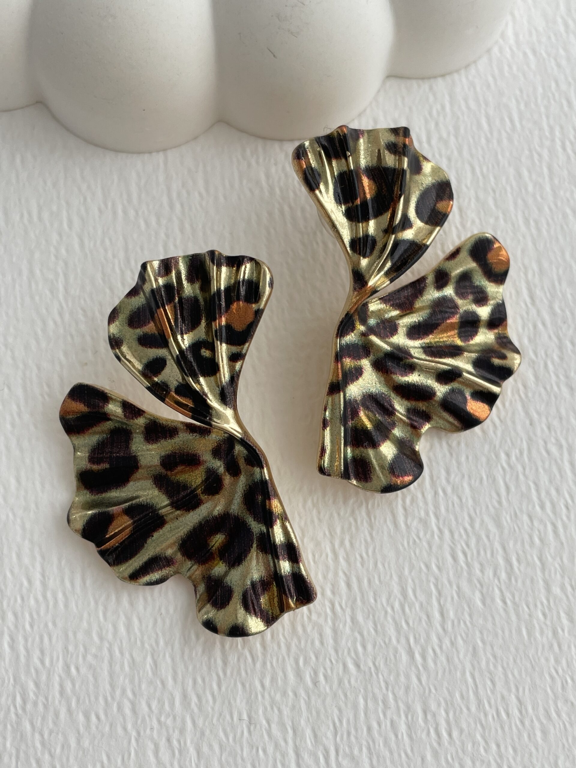 Özel Seri Leopar Desen Kıvrımlı Yaprak Tasarım Küpe