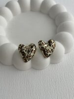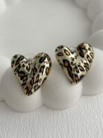 Özel Seri Leopar Desen Minik Kalp Küpe
