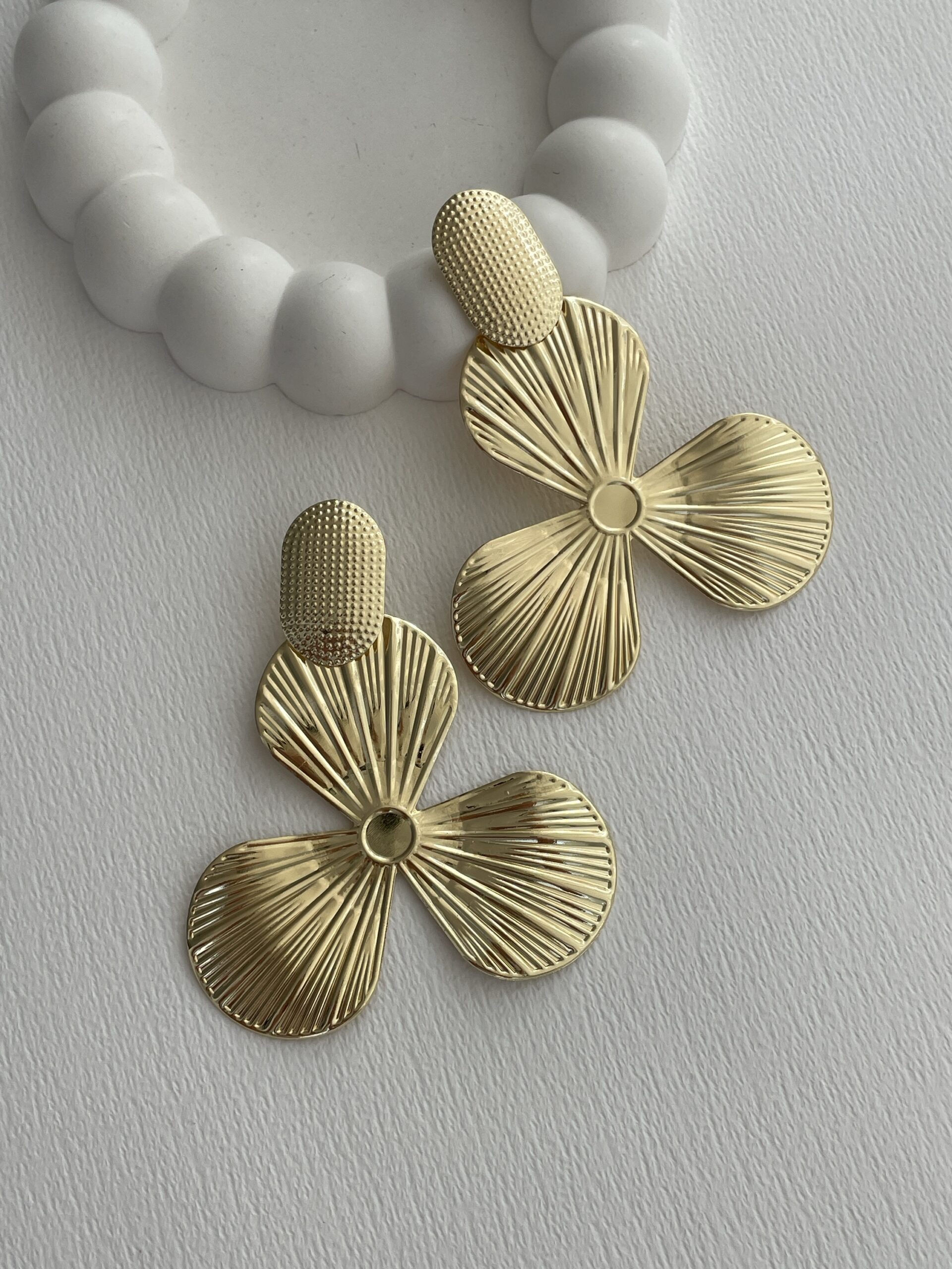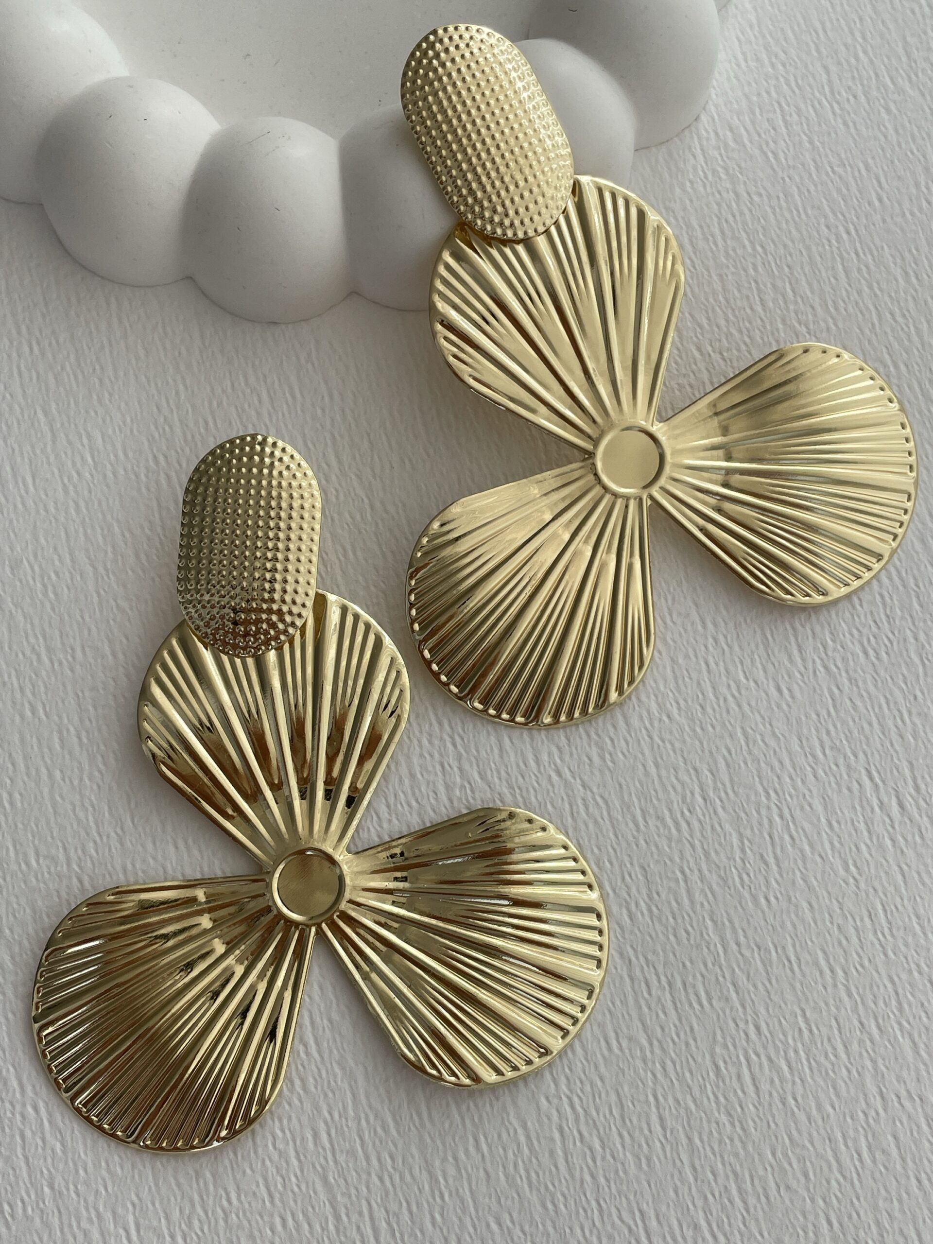 Özel Seri Maksi Boy Çiçek Tasarım Gold Küpe