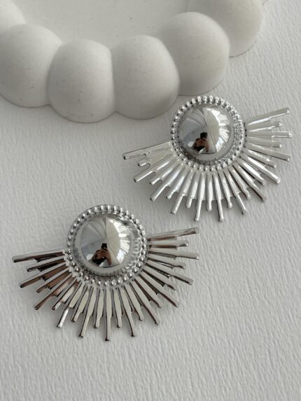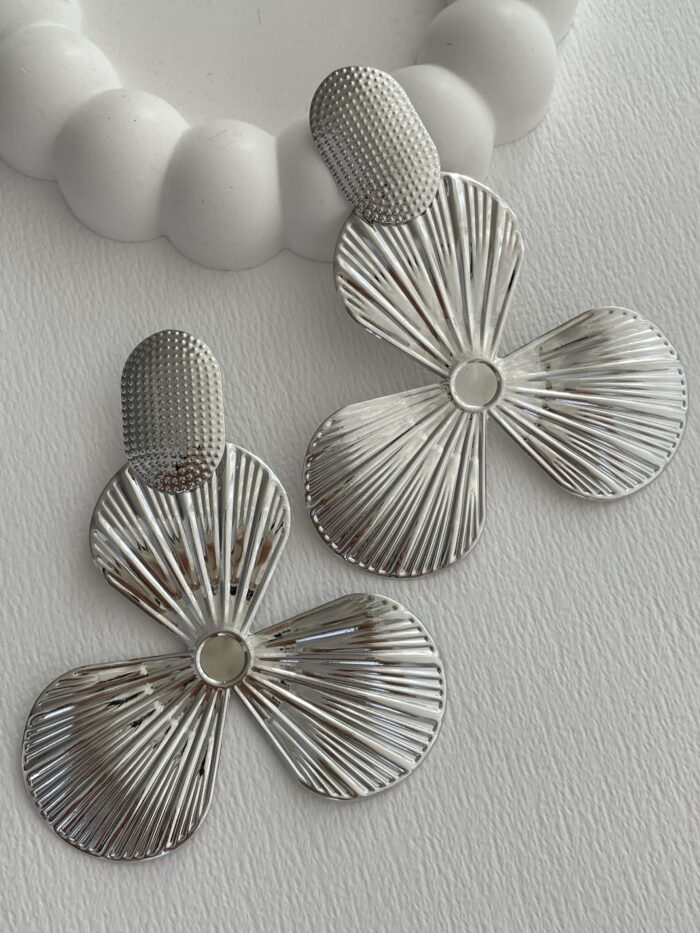Özel Seri Maksi Boy Çiçek Tasarım Gümüş Küpe