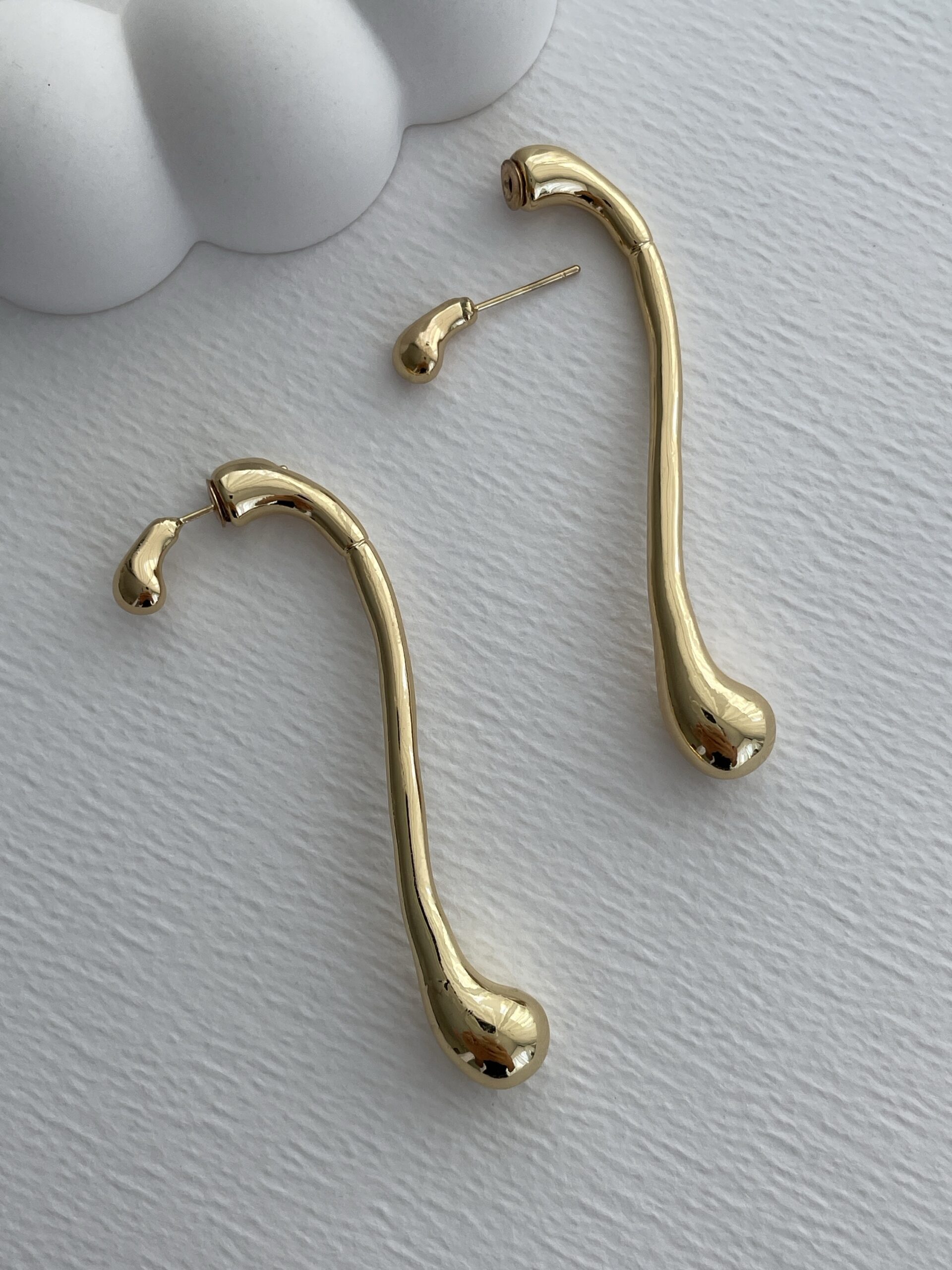 Özel Seri Maksi Boy Çift Taraflı Gold Damla Küpe
