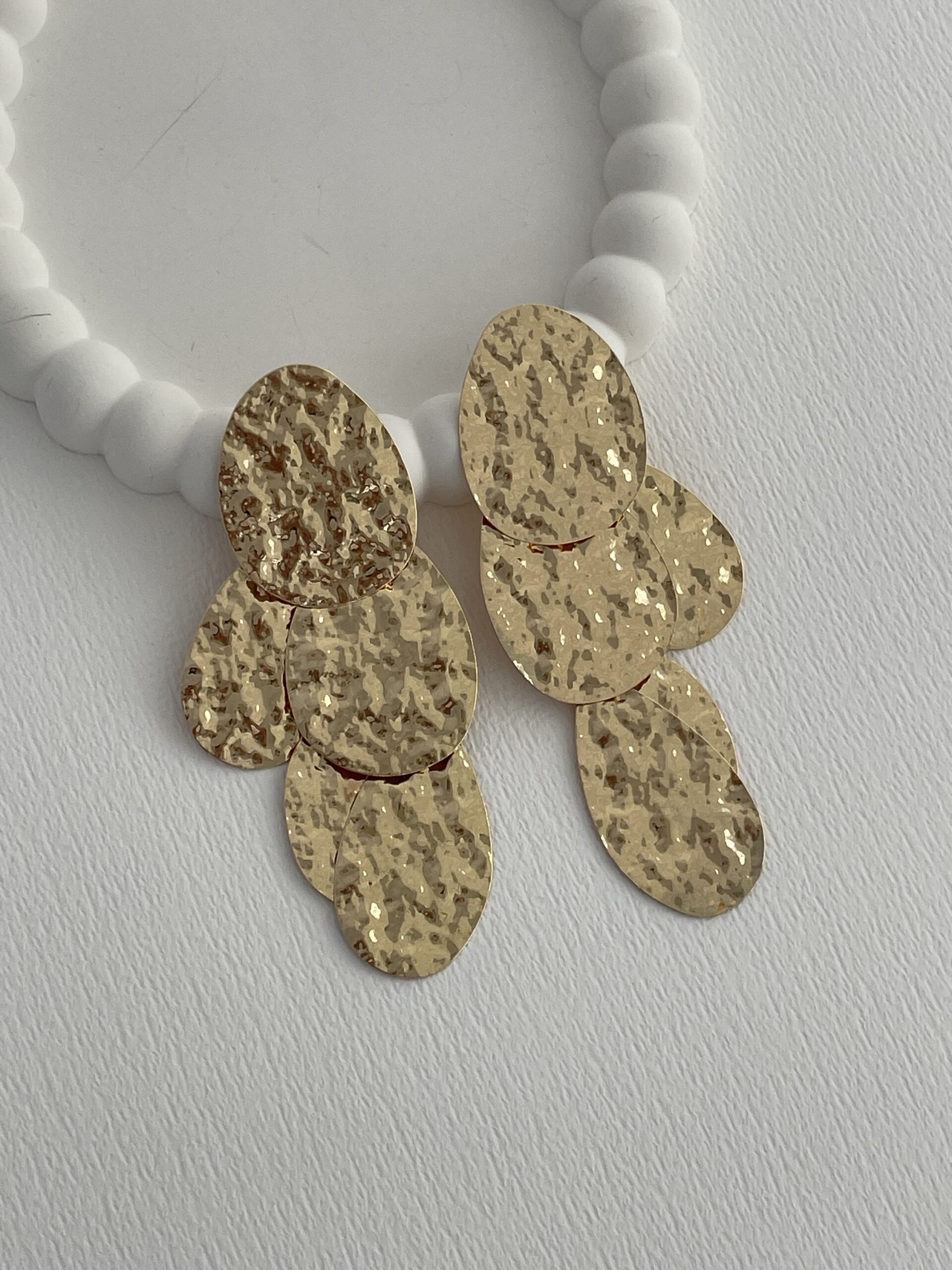 Özel Seri Maksi Boy Desenli Çoklu Oval Tasarım Gold Küpe