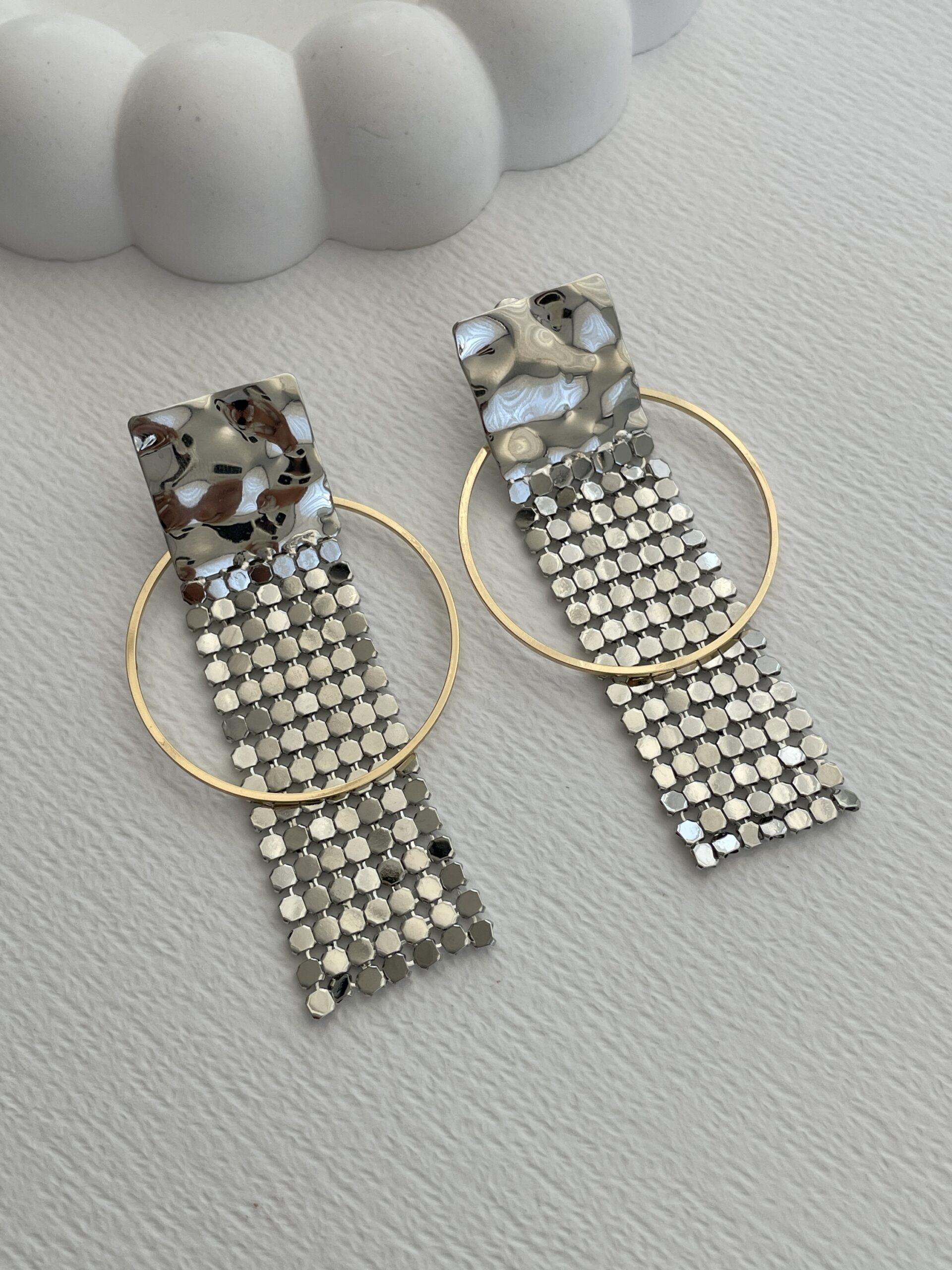 Özel Seri Maksi Boy Gold Halka Gümüş Pul Küpe