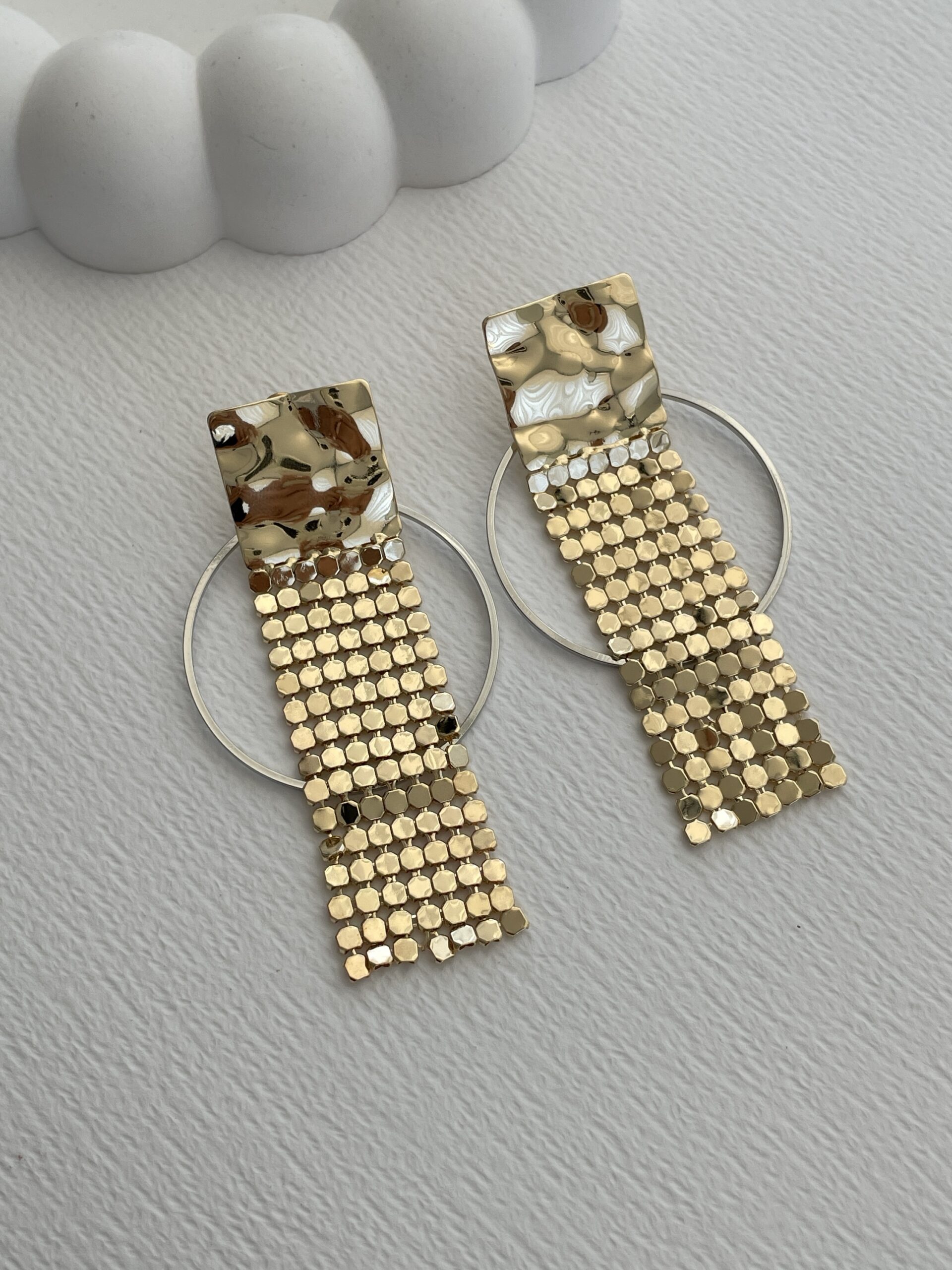 Özel Seri Maksi Boy Gümüş Halka Gold Pul Küpe