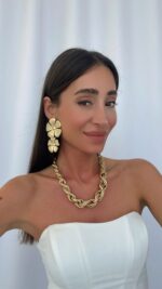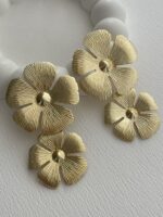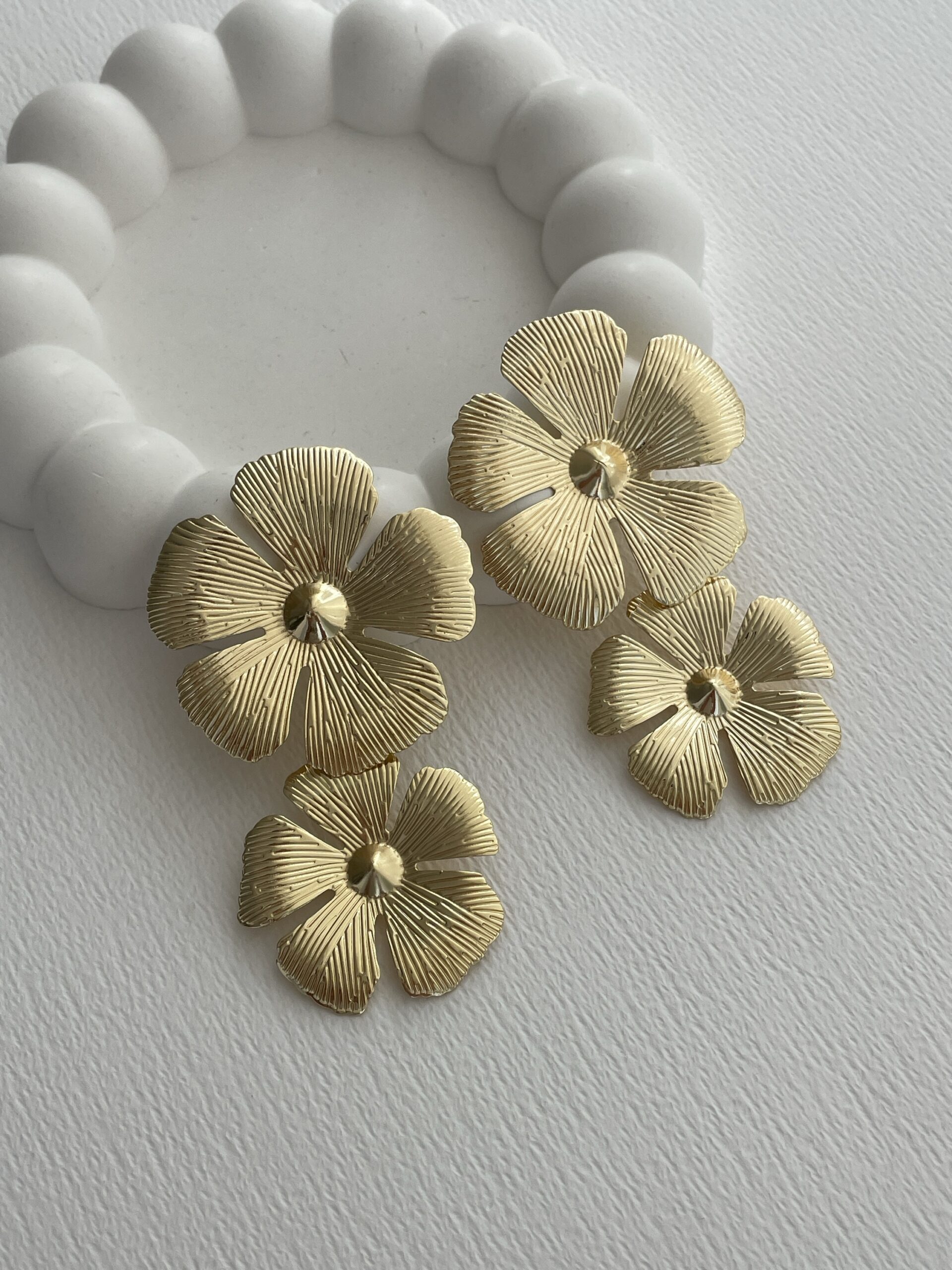 Özel Seri Maksi Boy İkili Çiçek Tasarım Gold Küpe