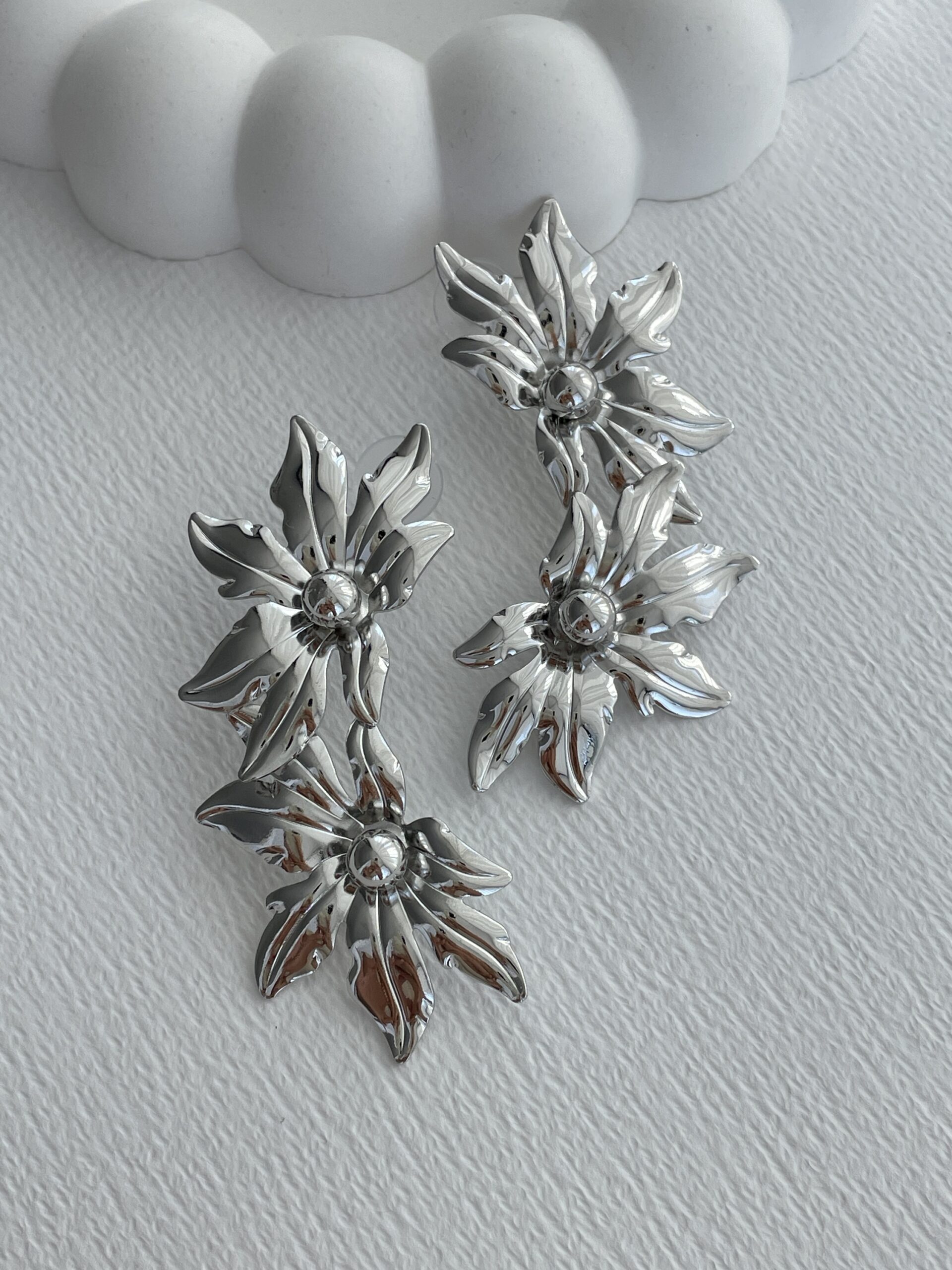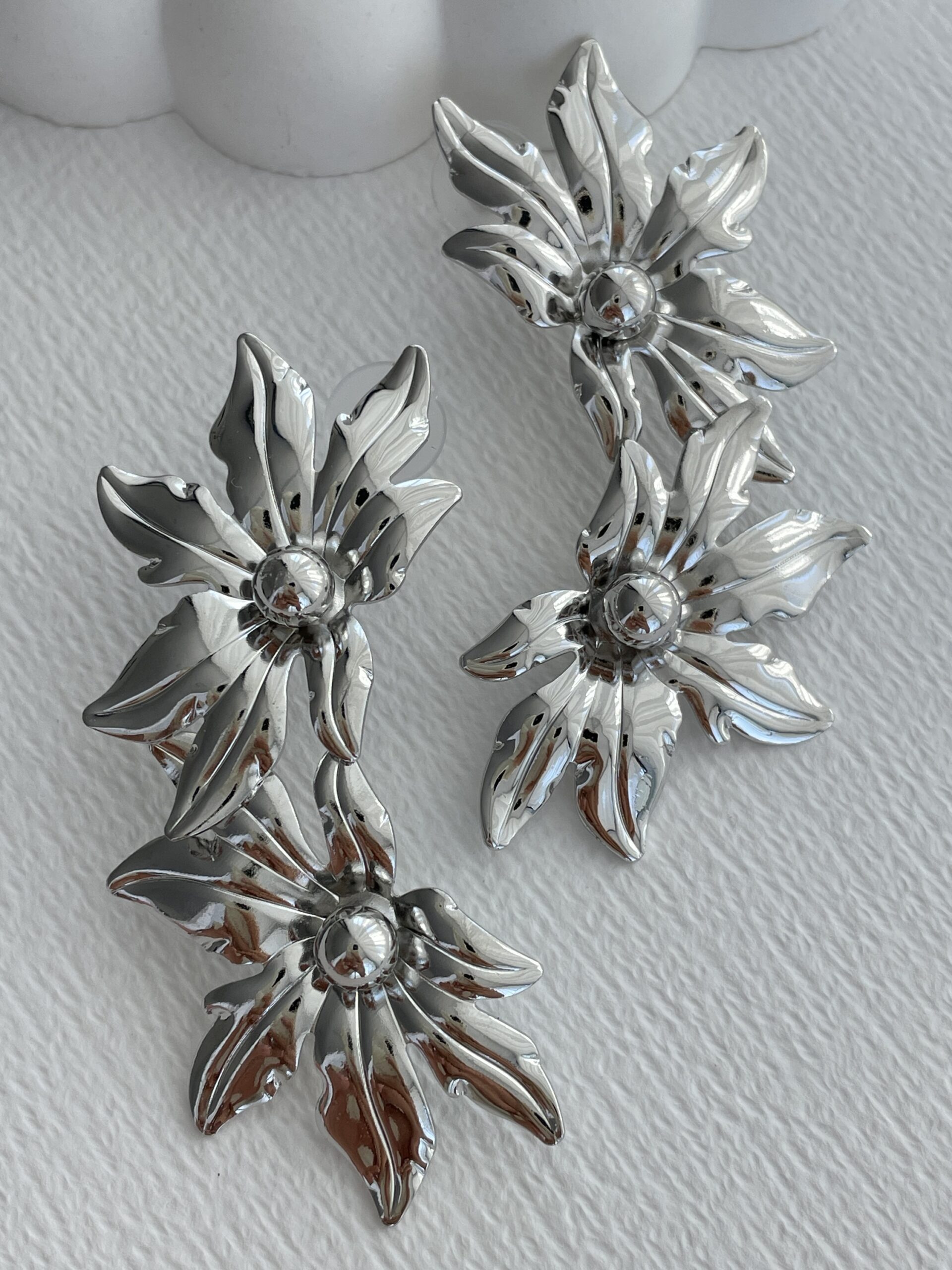 Özel Seri Maksi Boy İkili Çiçek Tasarım Gümüş Küpe