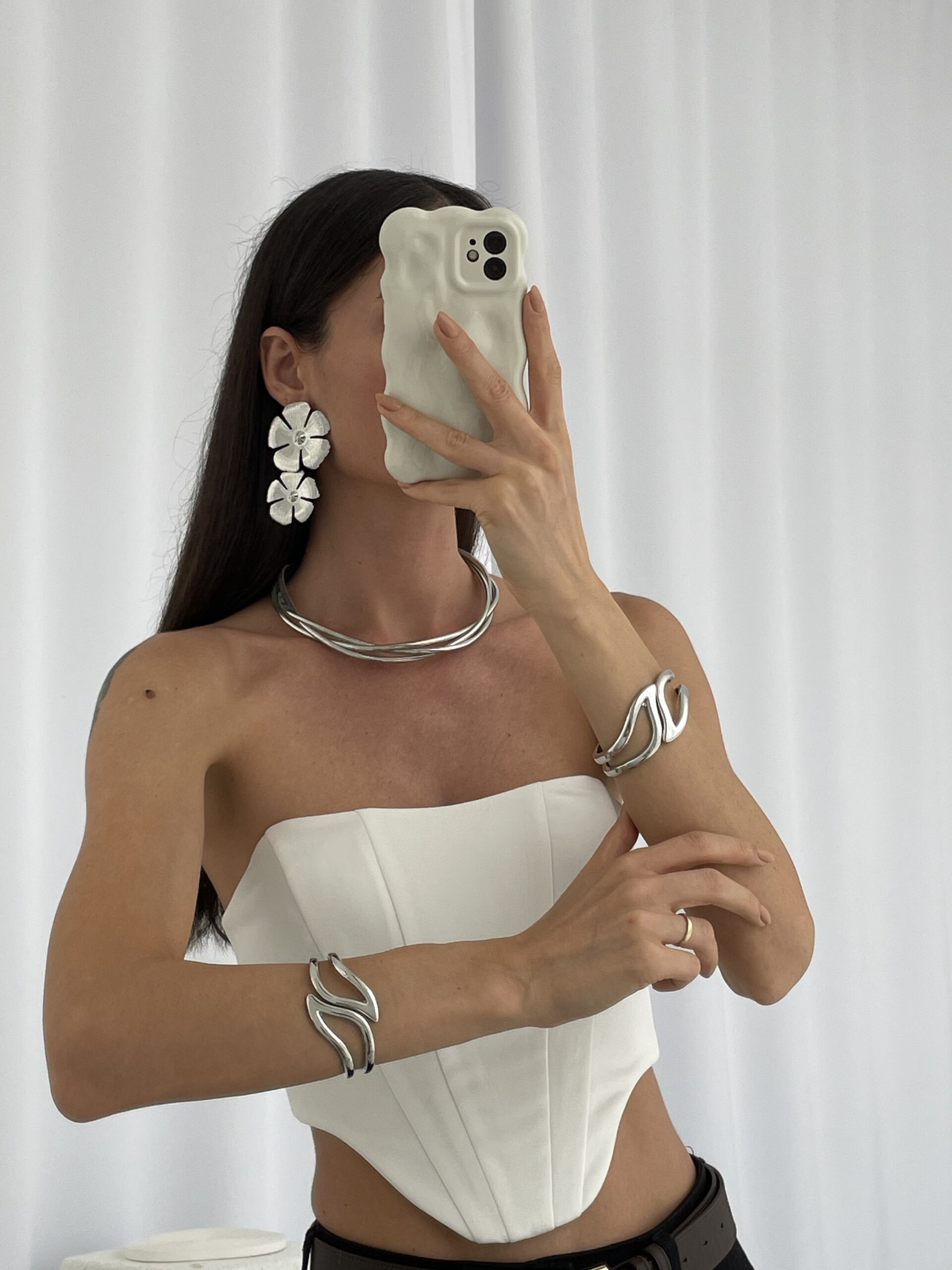 Özel Seri Maksi Boy İkili Çiçek Tasarım Gümüş Küpe