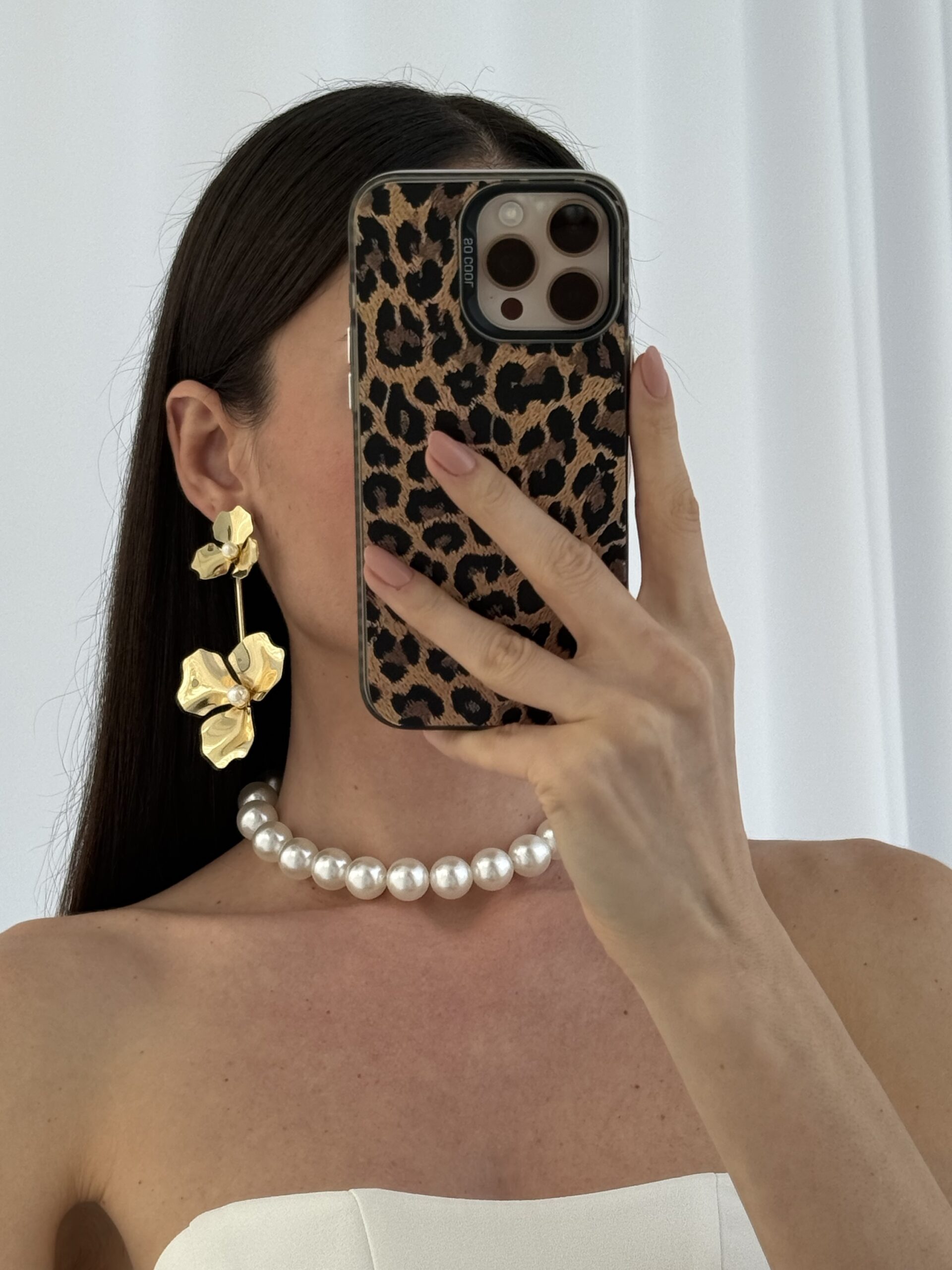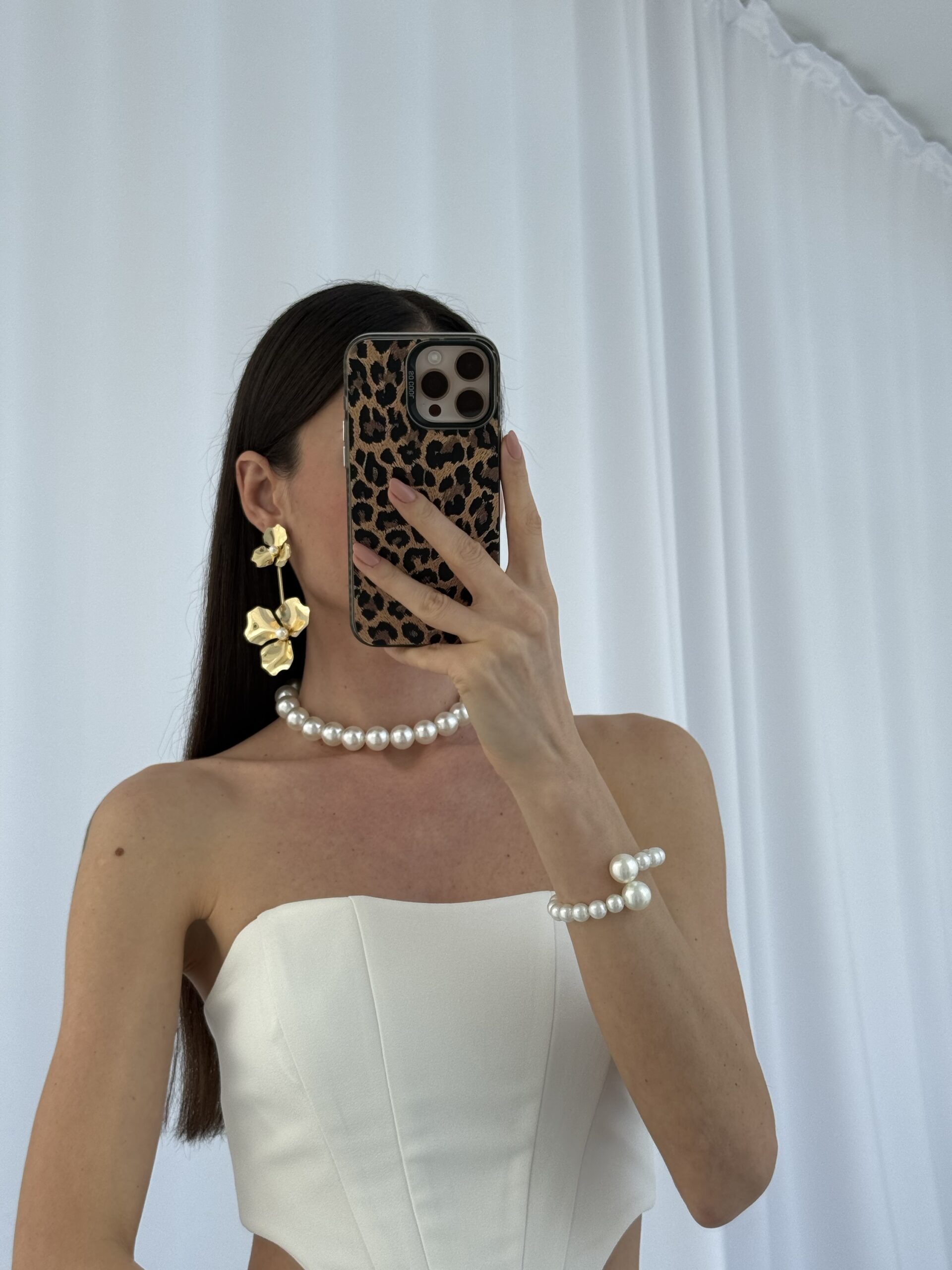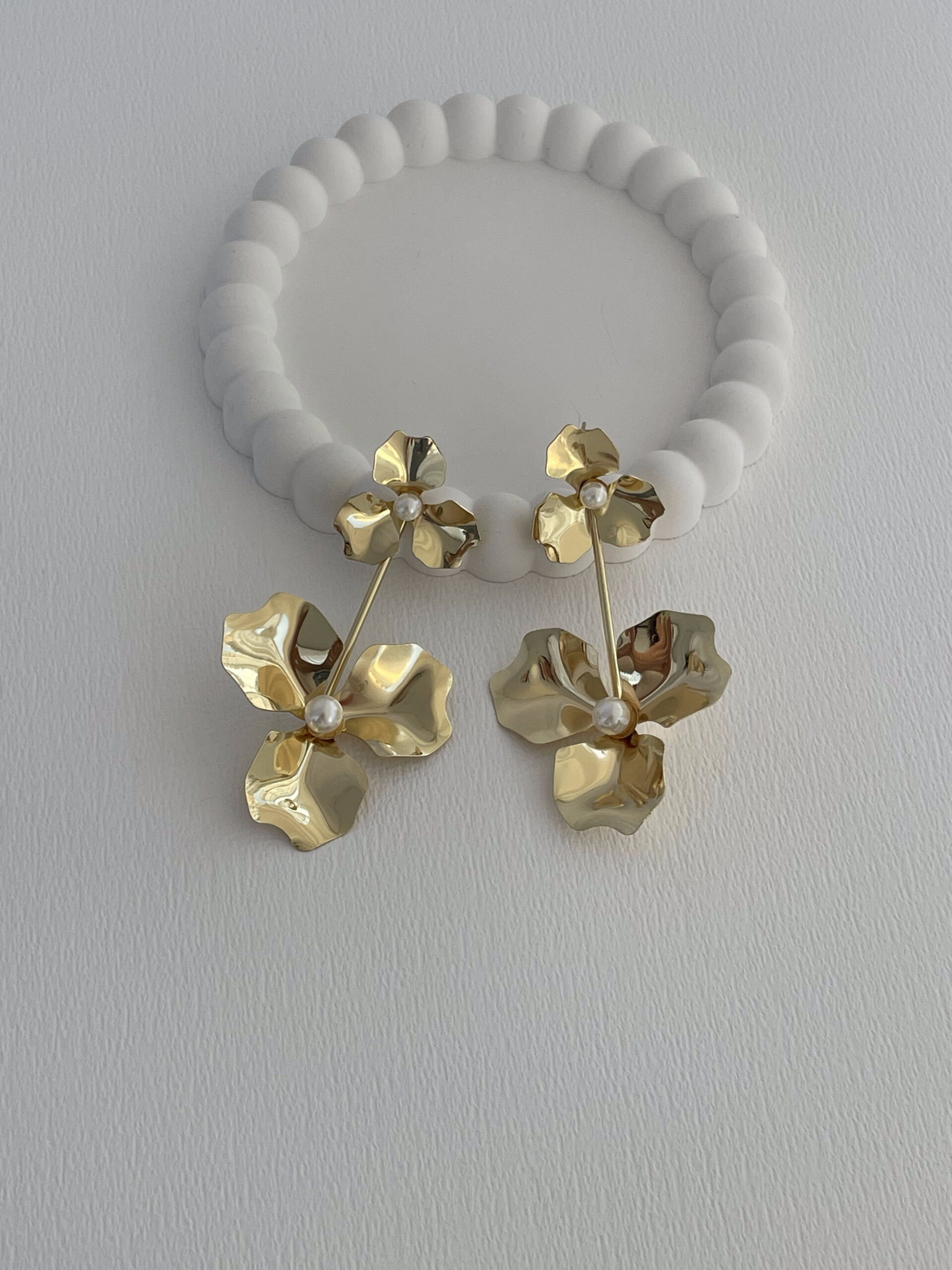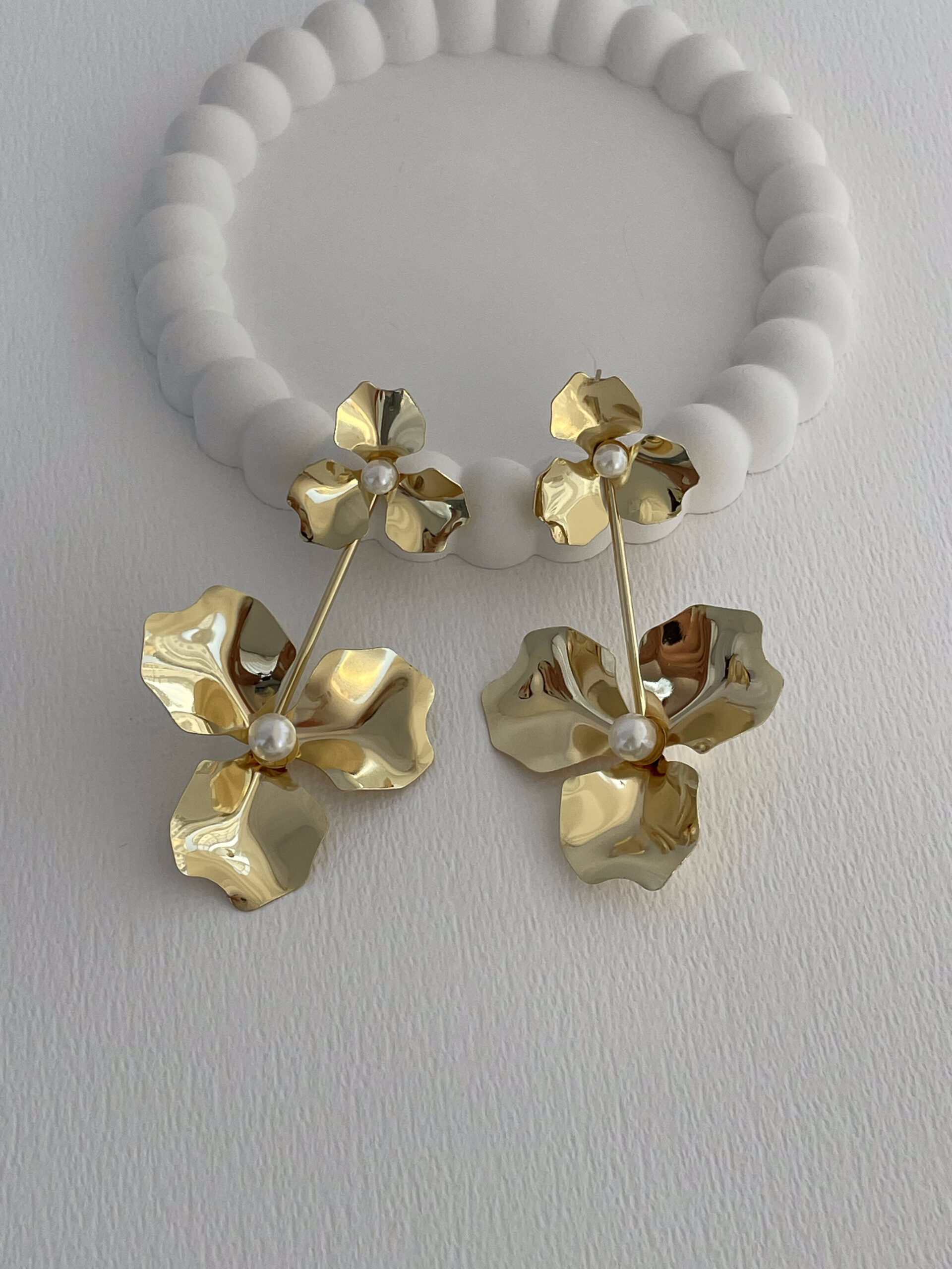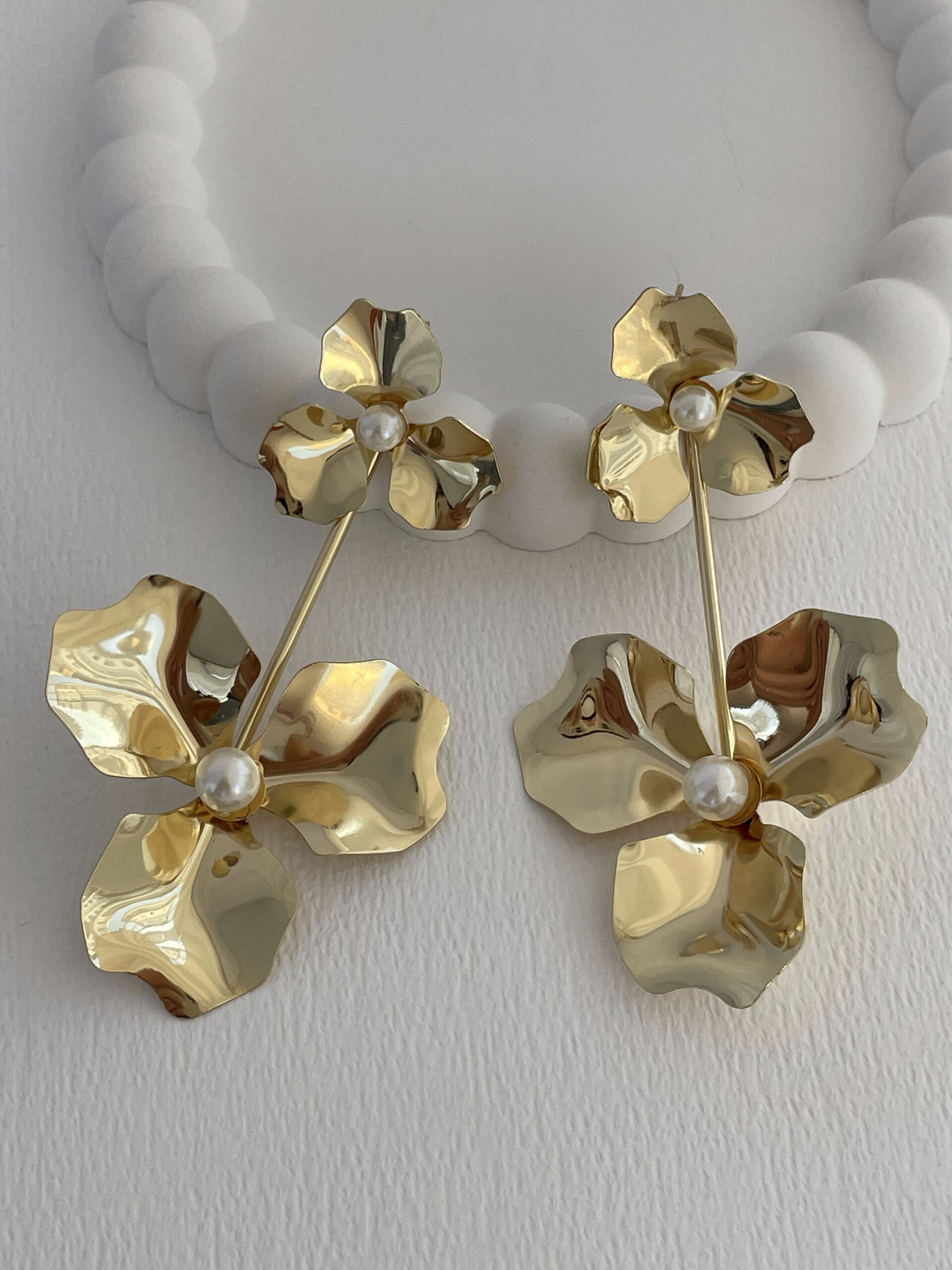 Özel Seri Maksi Boy İkili Çiçek Tasarım İnci Detay Gold Küpe