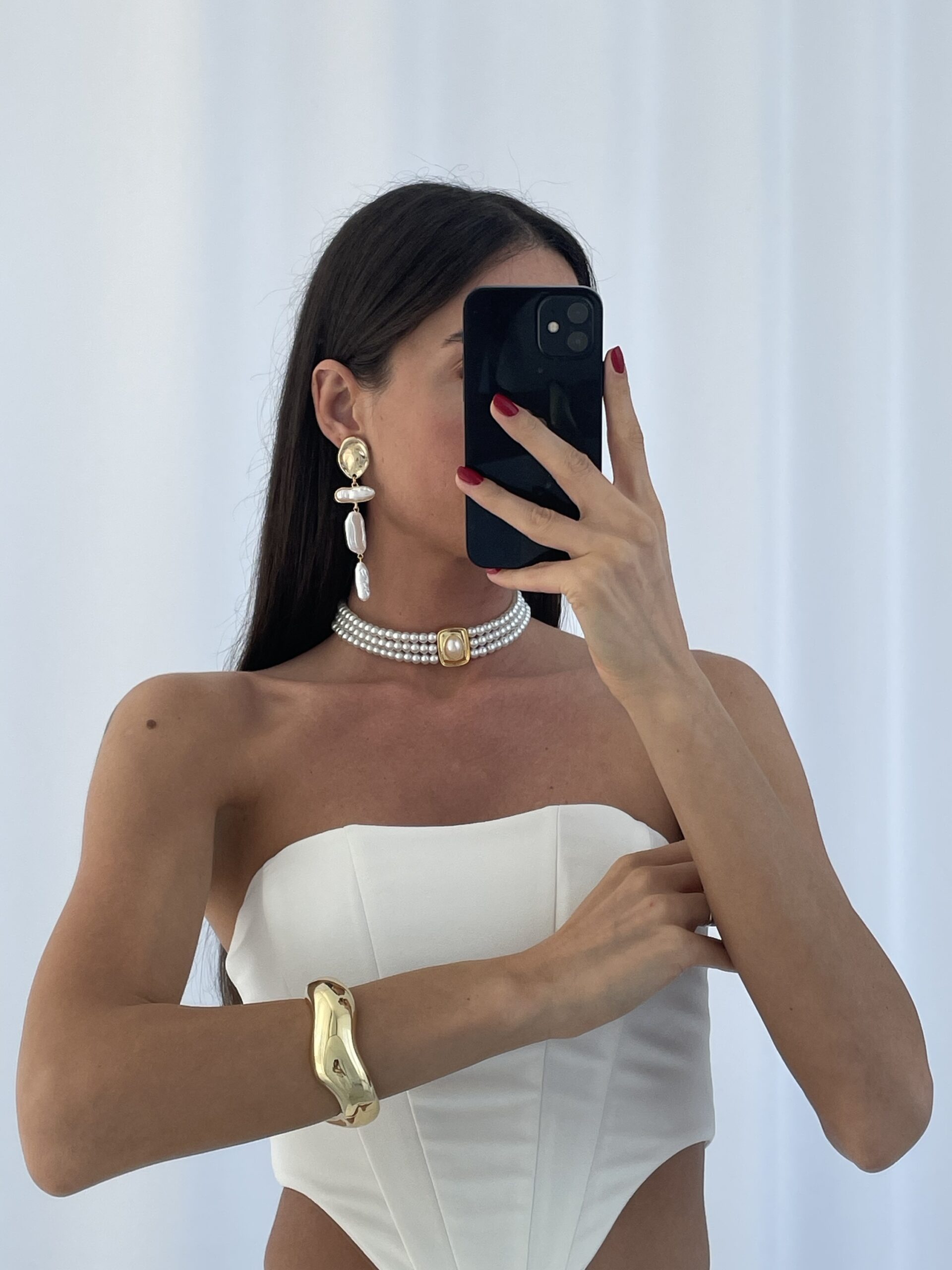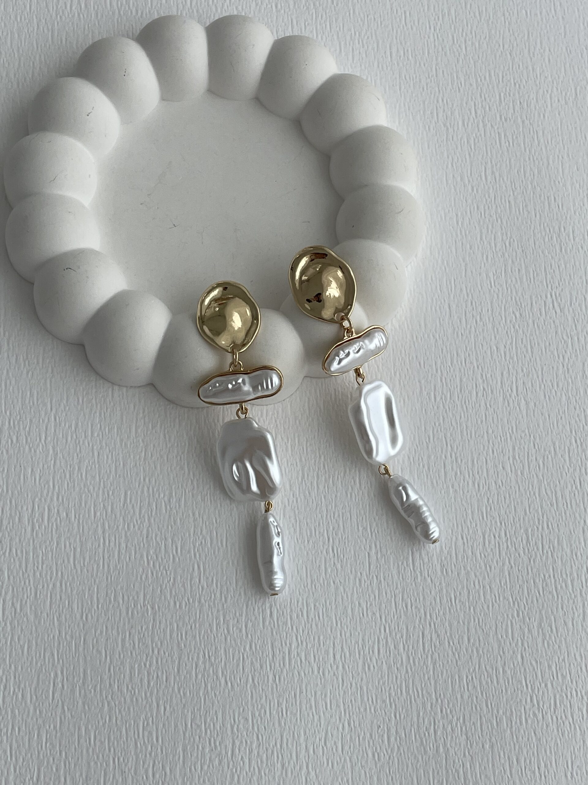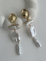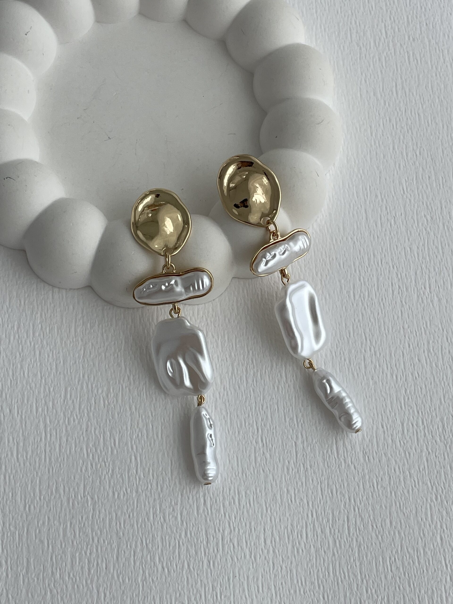 Özel Seri Maksi Boy Sallantılı İnci Gold Küpe