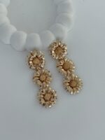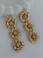Özel Seri Maksi Boy Üçlü Papatya Tasarım Gold Küpe