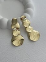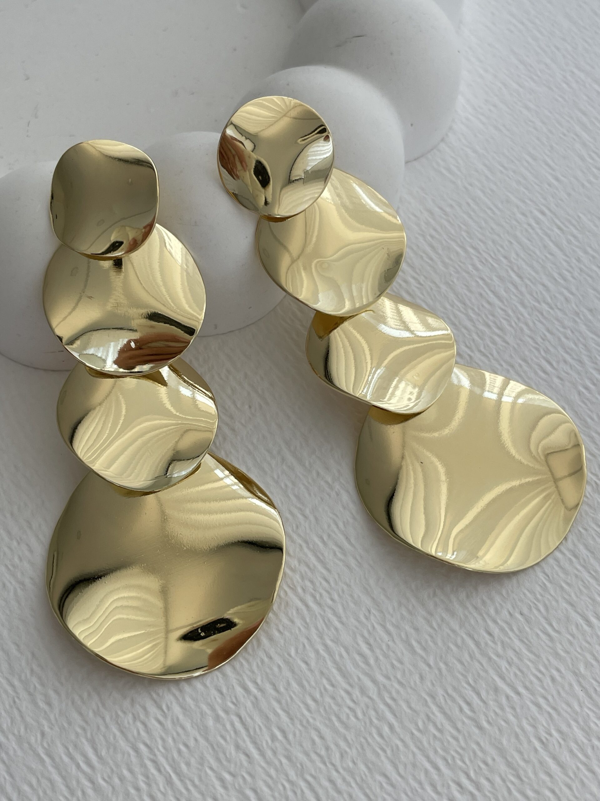 Özel Seri Maksi Boy Üçlü Yuvarlak Plaka Gold Küpe