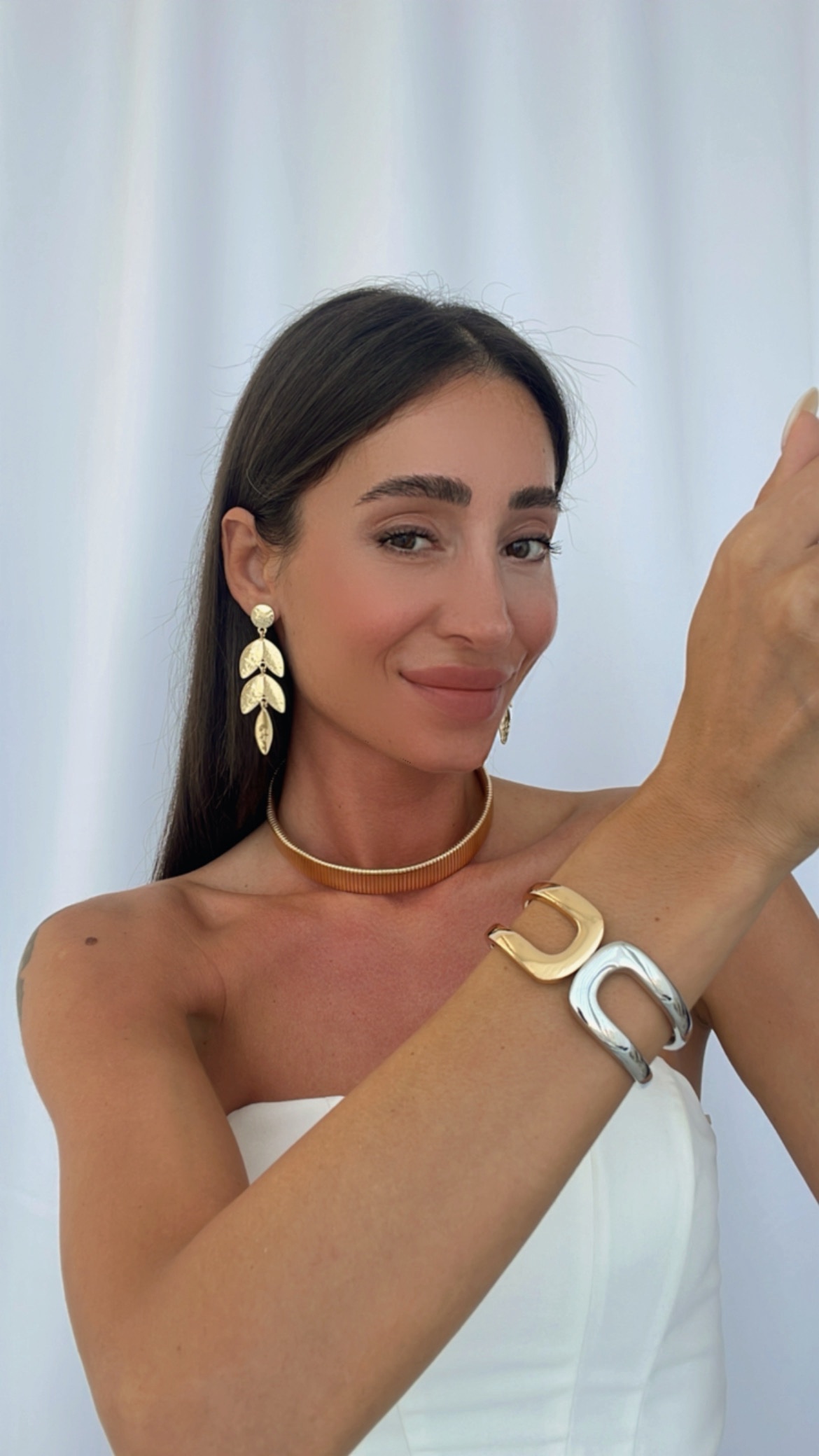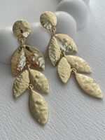 Özel Seri Maksi Boy Desenli Yaprak Tasarım Gold Küpe