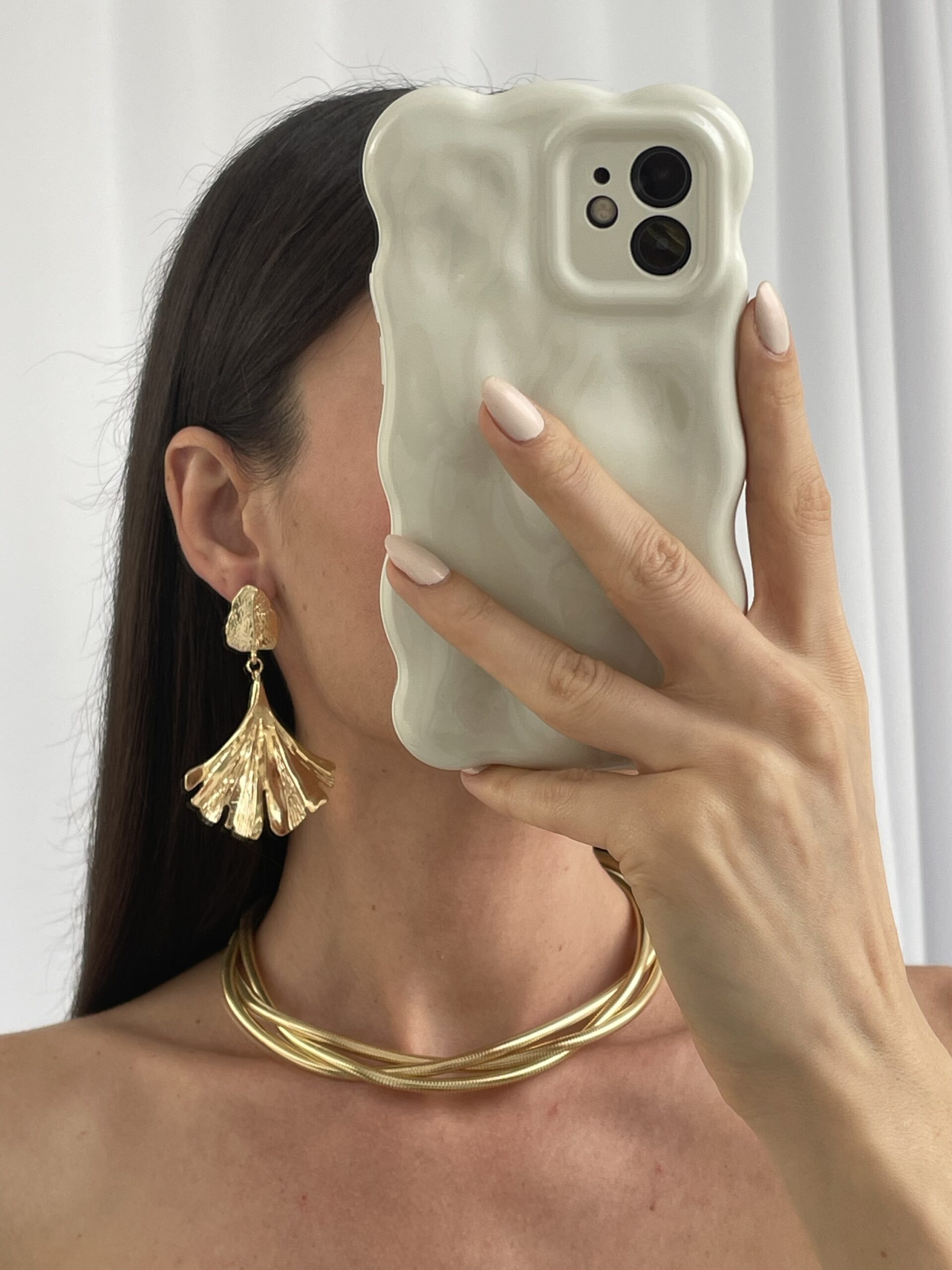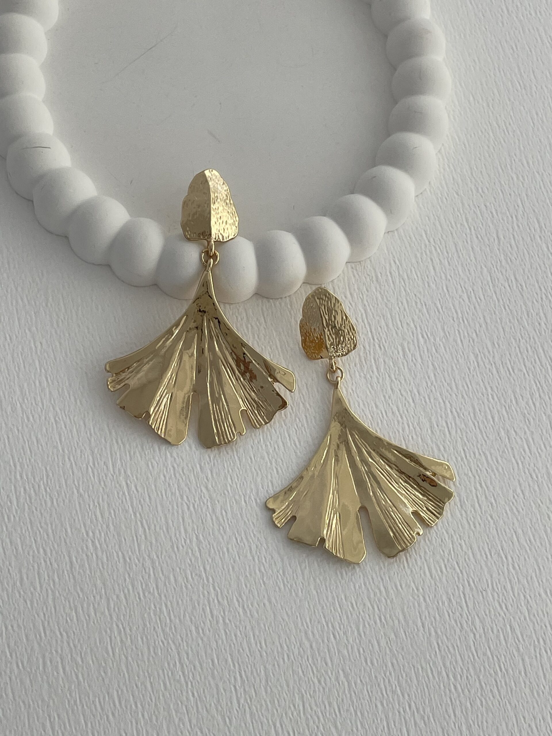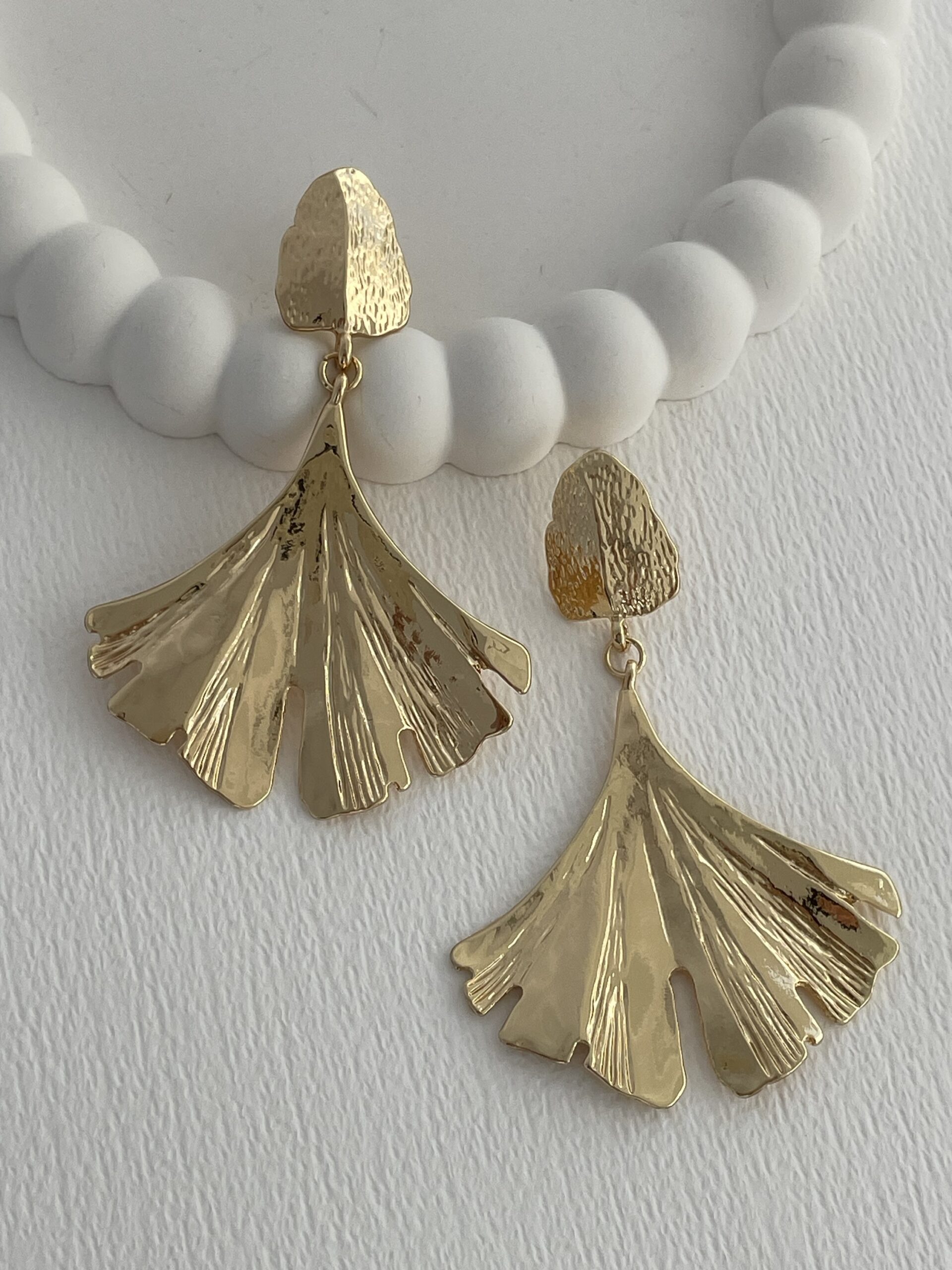 Özel Seri Maksi Boy Yaprak Tasarım Gold Küpe