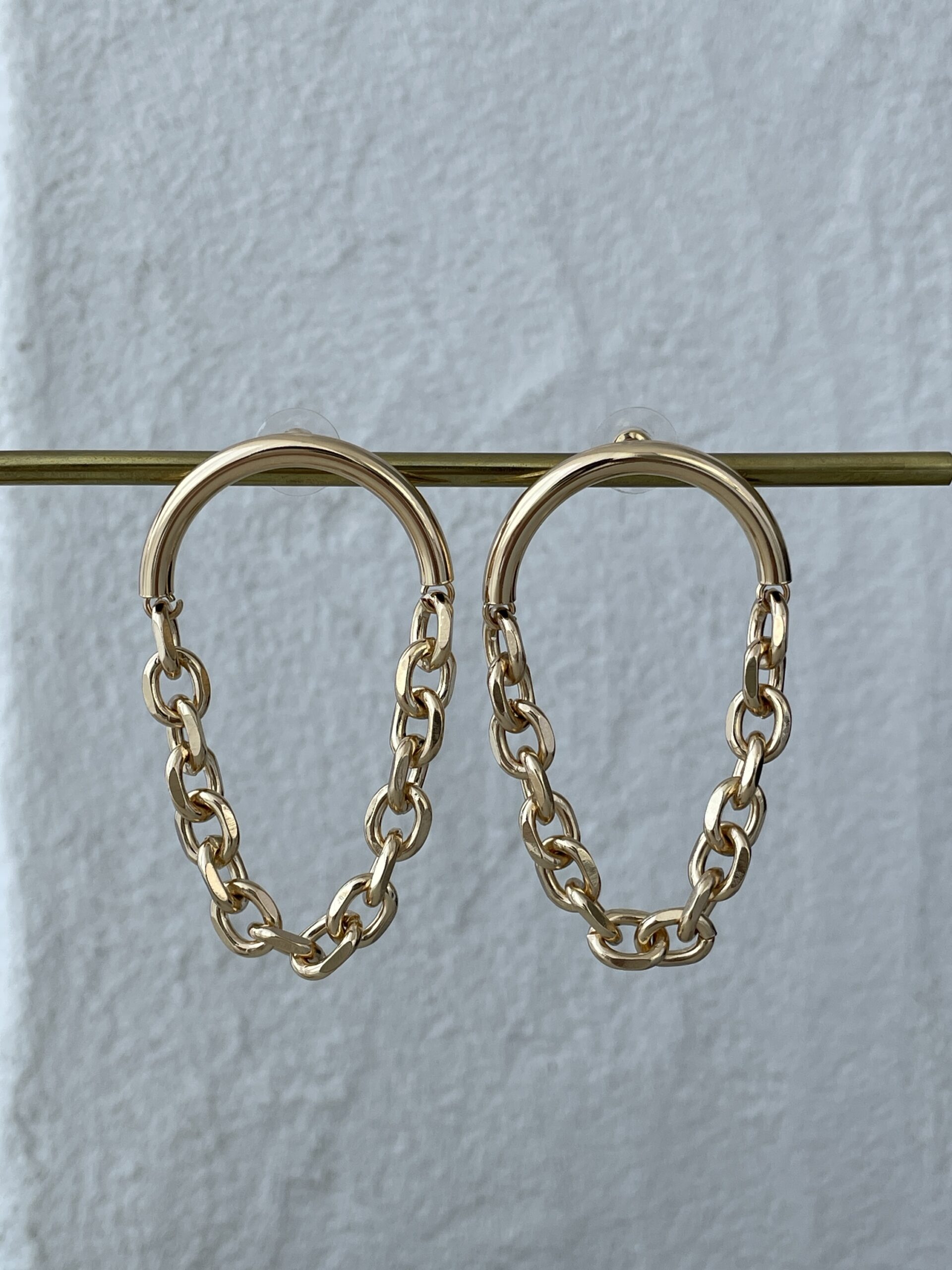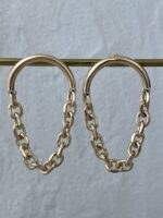 Özel Seri Maksi Boy Zincir Detaylı Gold Oval Küpe