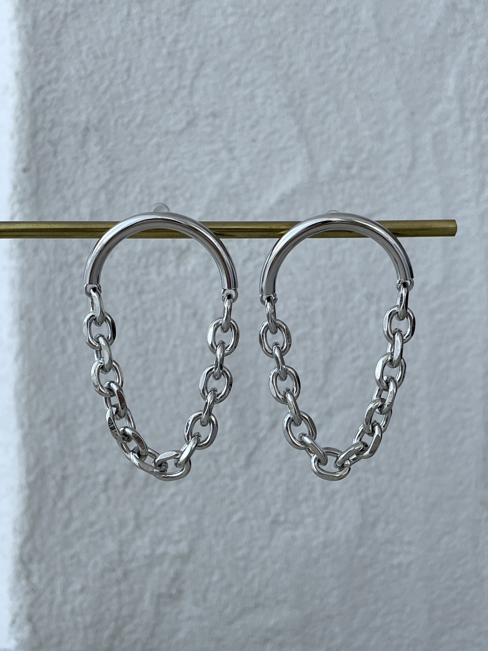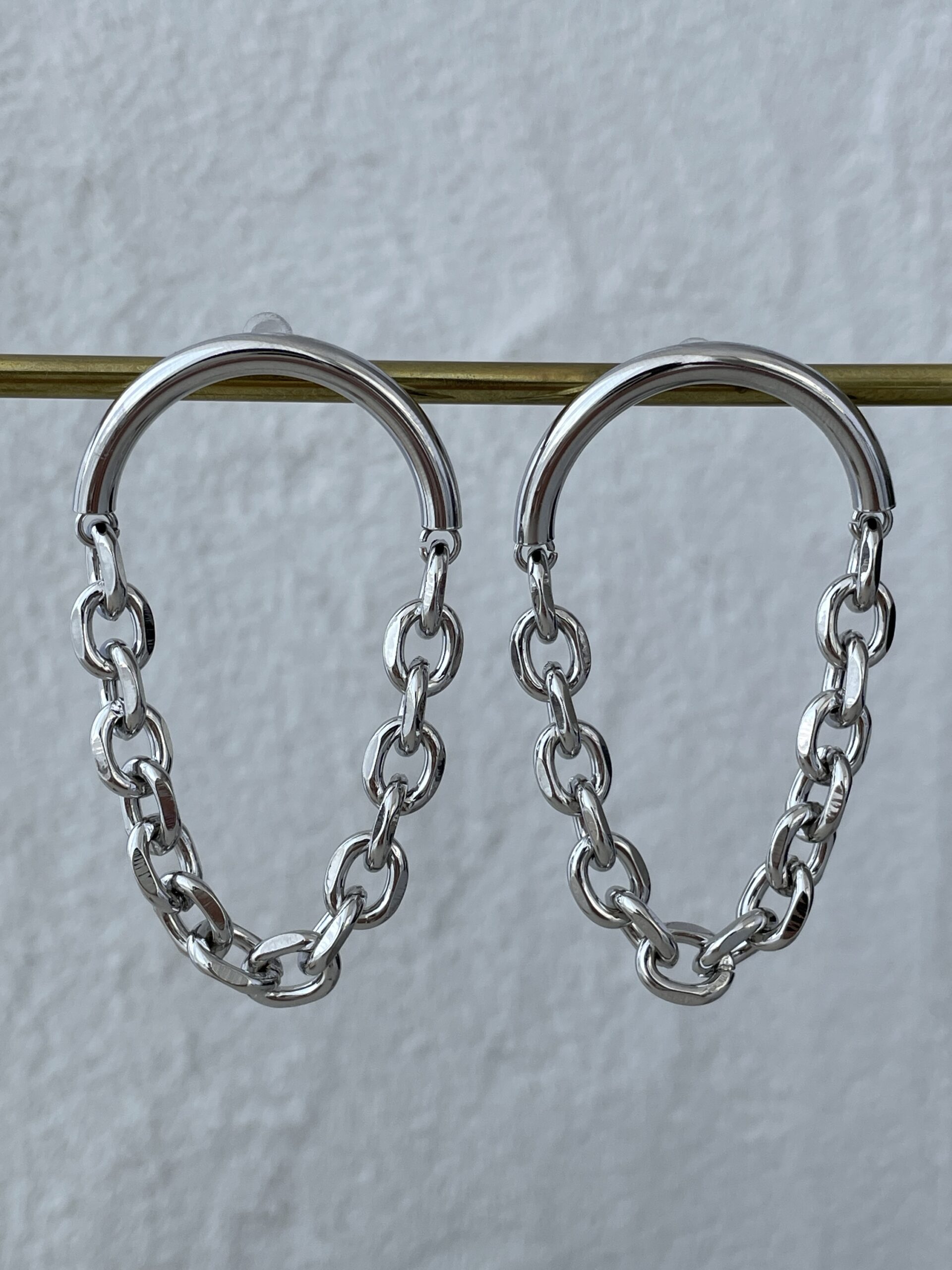 Özel Seri Maksi Boy Zincir Detaylı Gümüş Oval Küpe