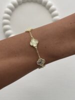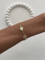 Özel Seri Marka Model Beşli Yonca Tasarım Gold Bileklik