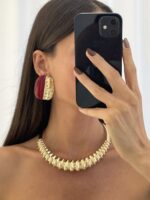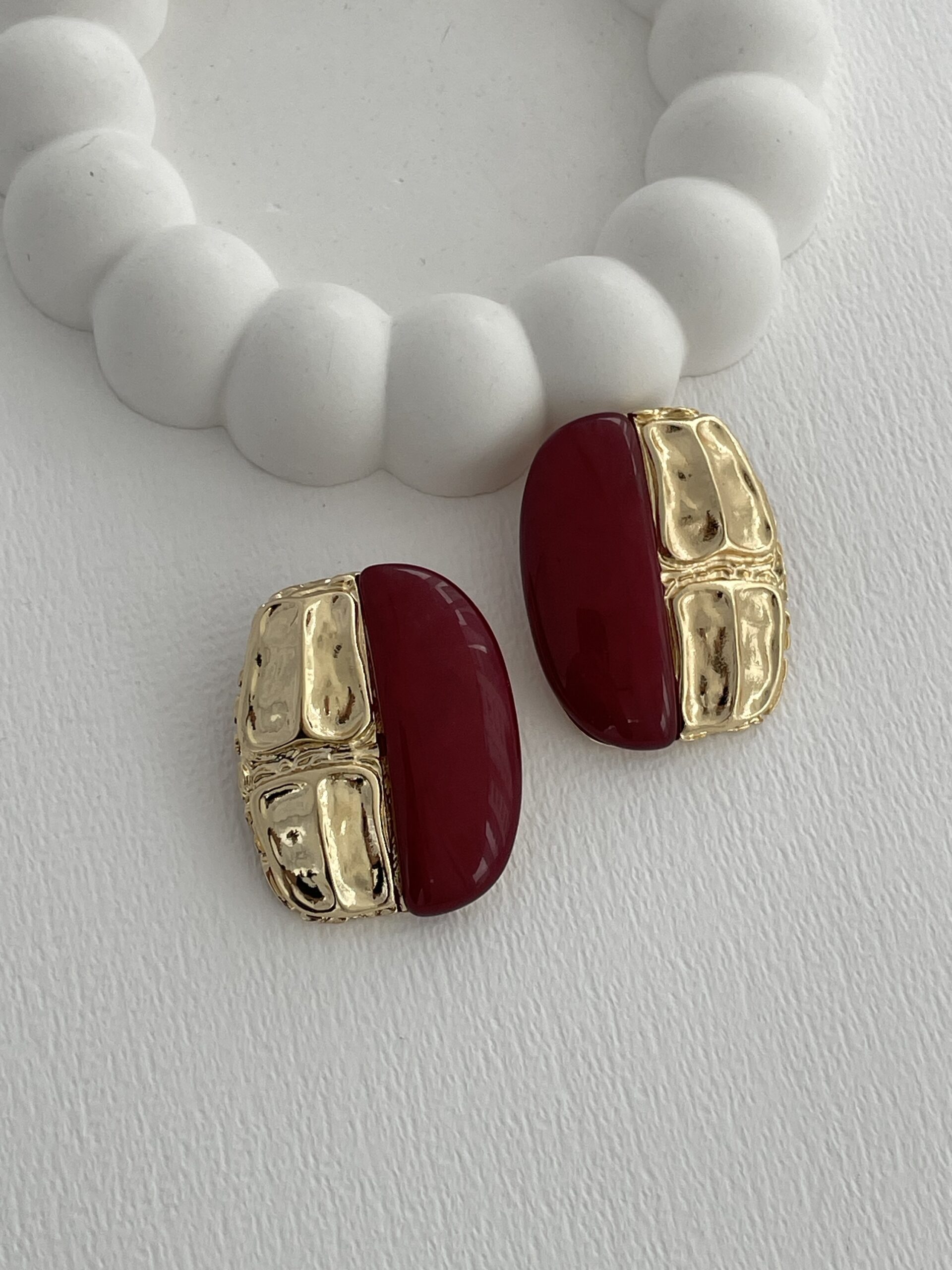 Özel Seri Marka Model Gold & Bordo Tasarım Küpe