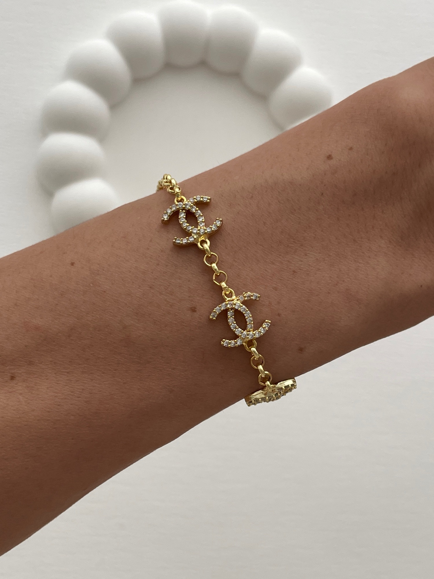 Özel Seri Marka Model Zirkon Taşlı CC Üçlü Tasarım Gold Bileklik