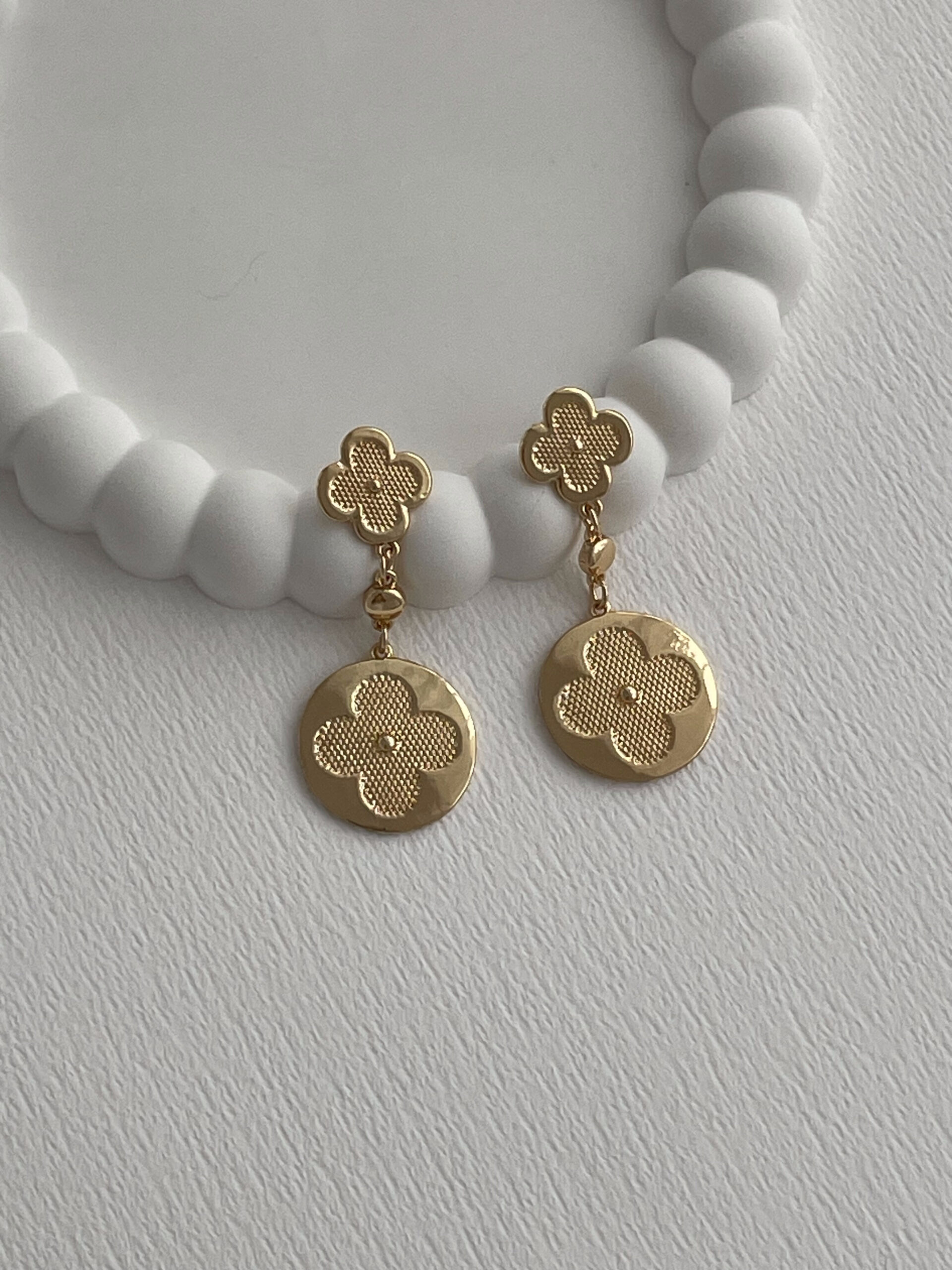 Özel Seri Marka Model Yonca Sallantılı Gold Küpe