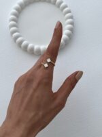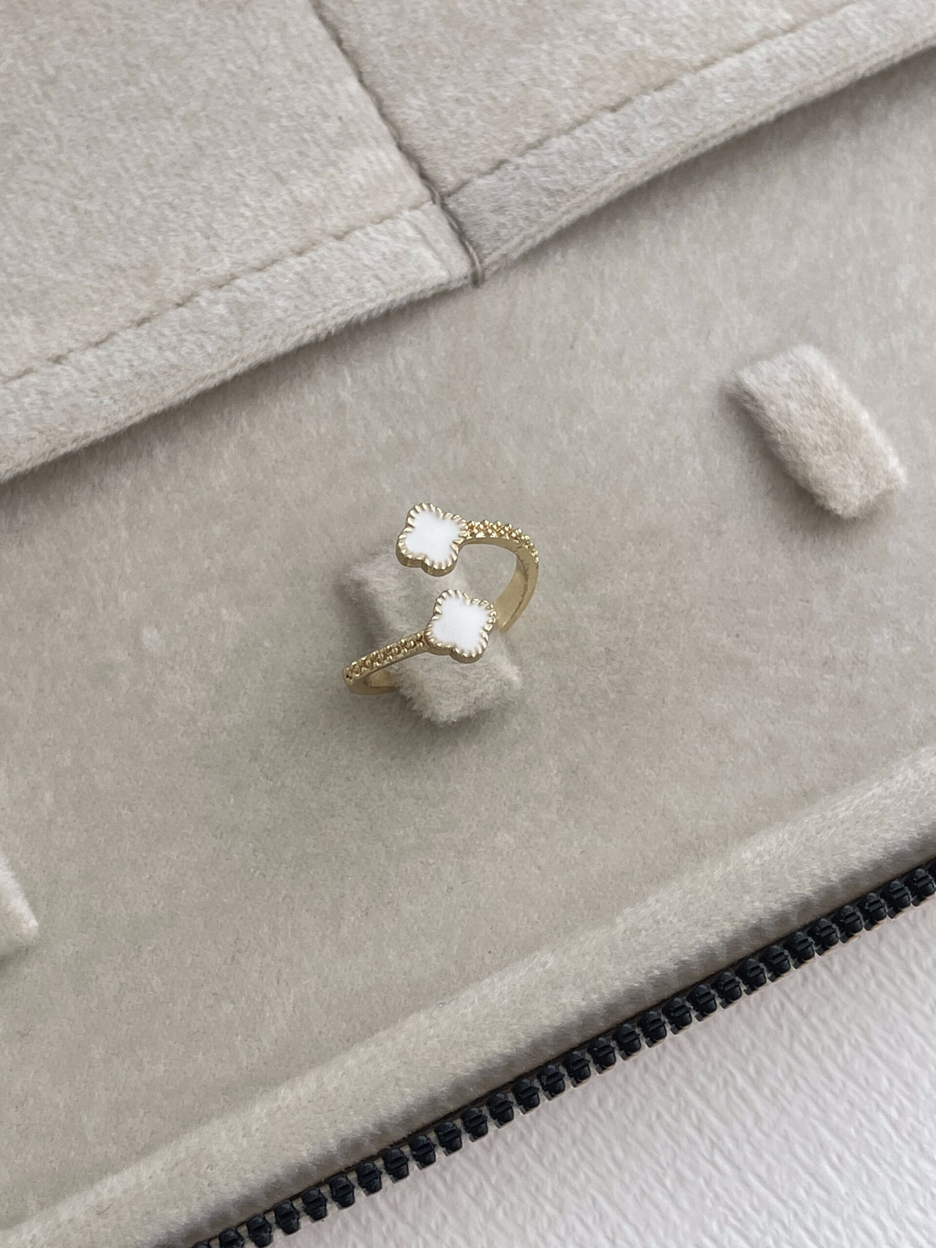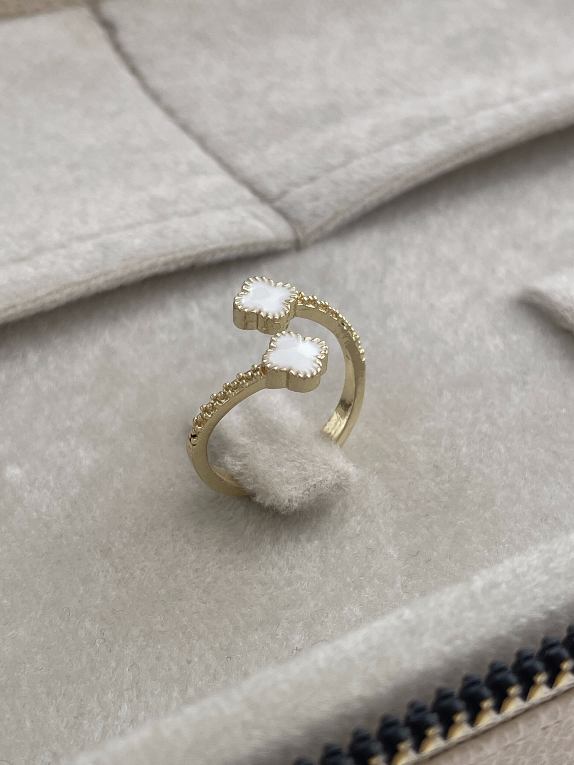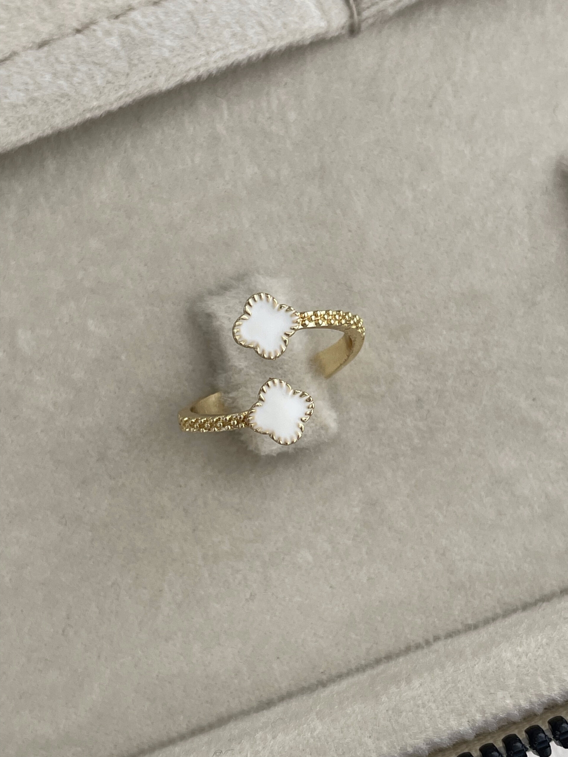 Özel Seri Marka Model Yonca Tasarım Beyaz Mineli Ayarlanabilir Gold Yüzük