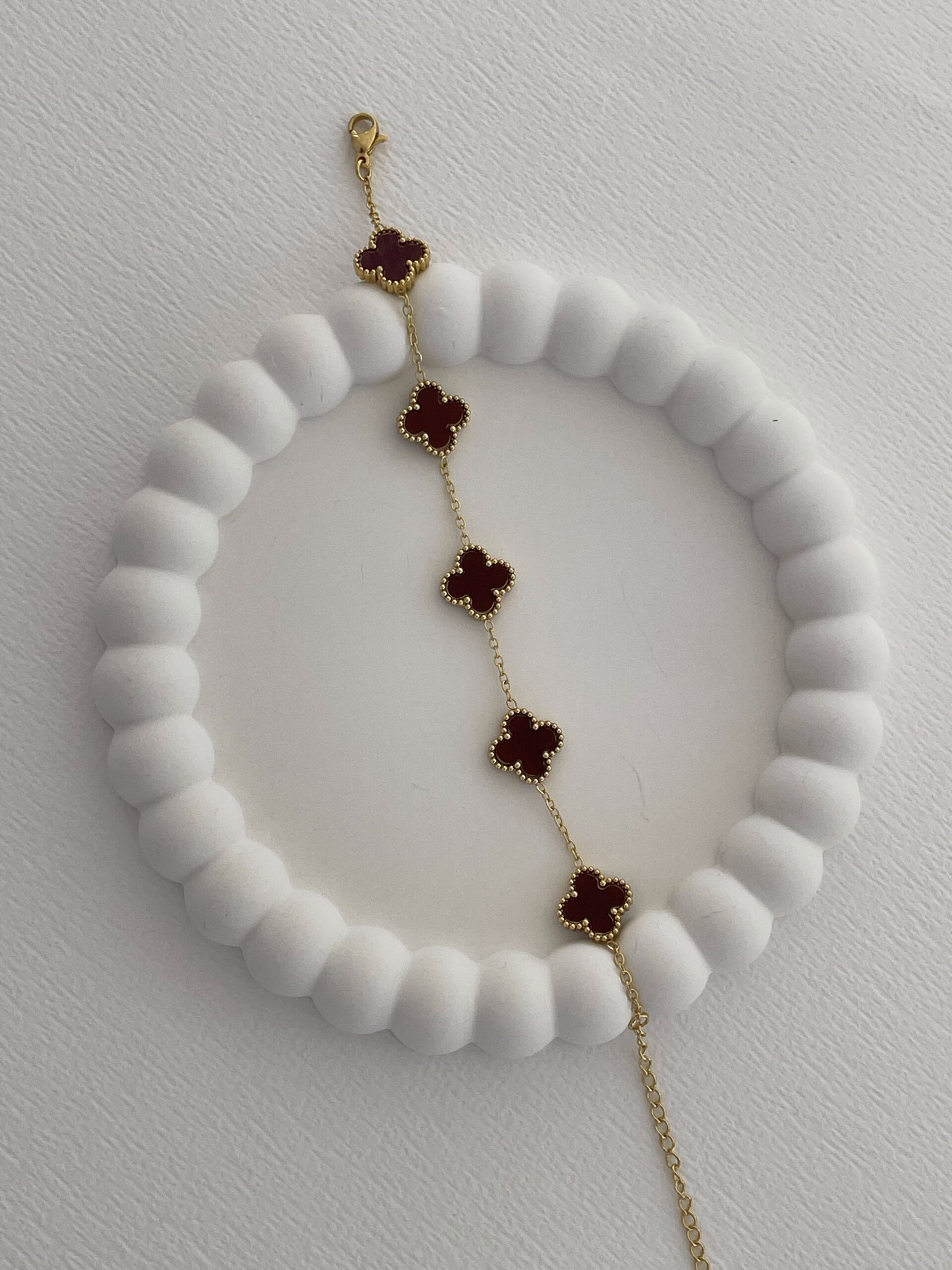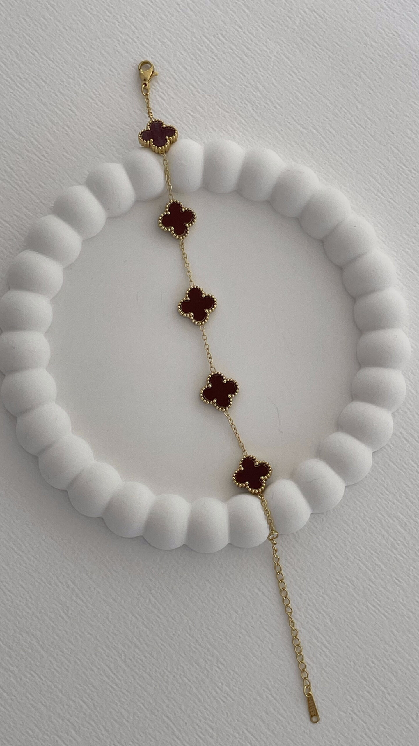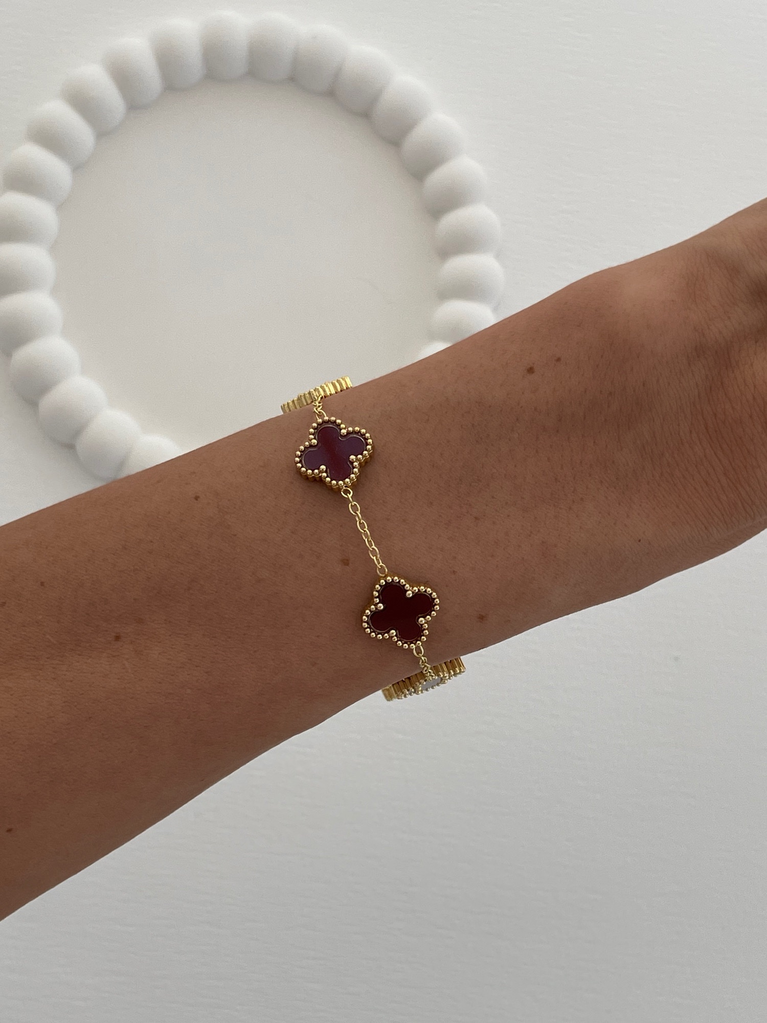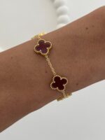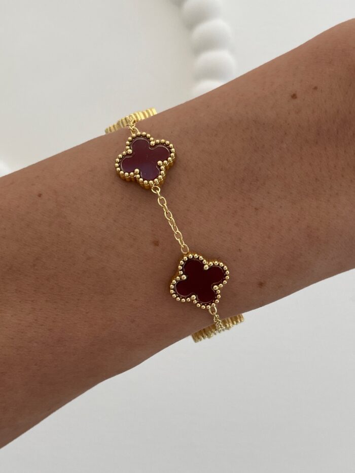 Özel Seri Marka Model Yonca Tasarım Bordo Mineli Gold Bileklik
