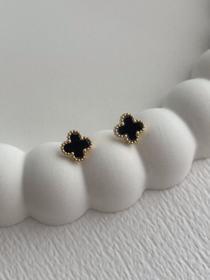 Özel Seri Marka Model Yonca Tasarım Mini Siyah Küpe