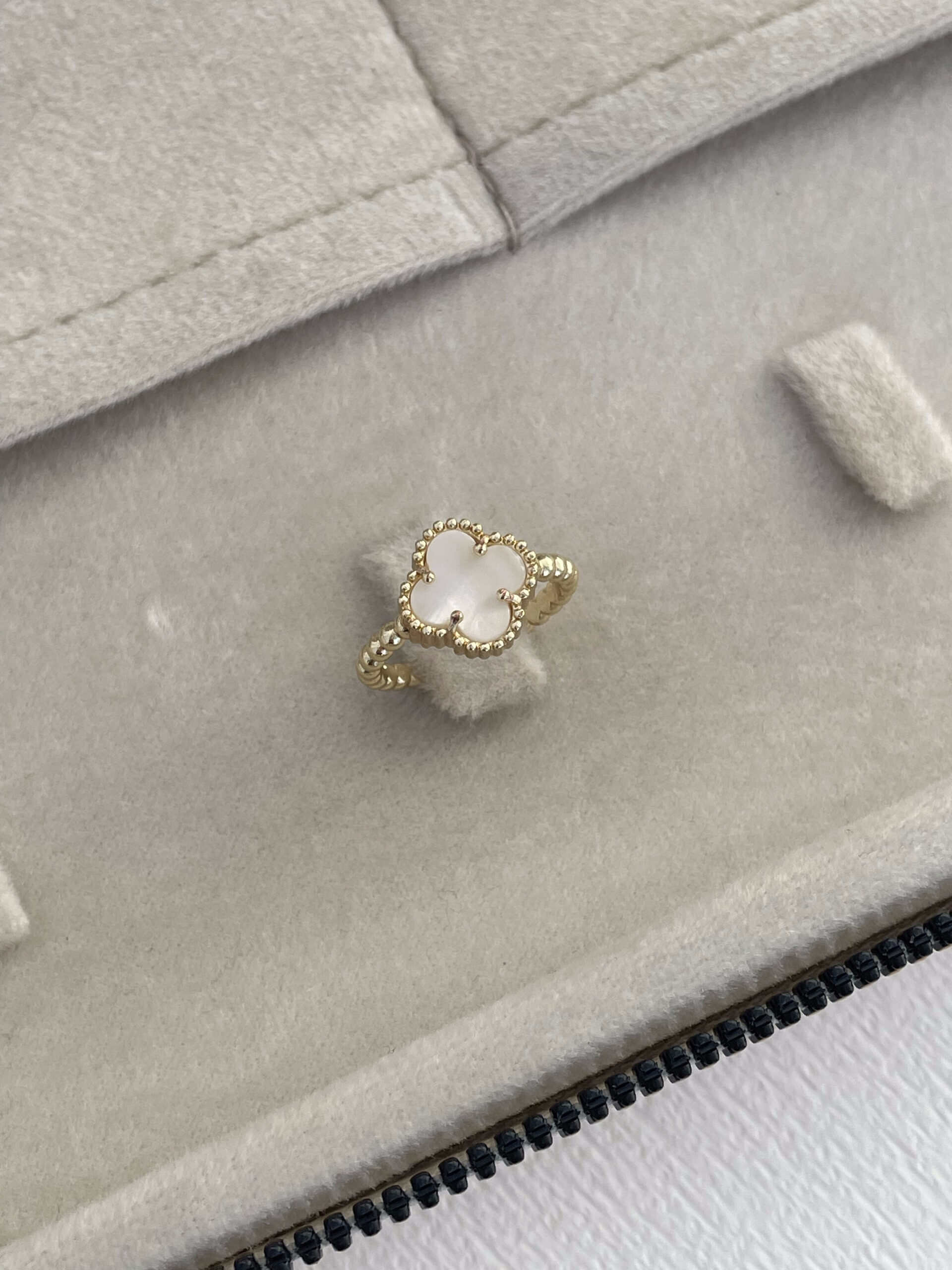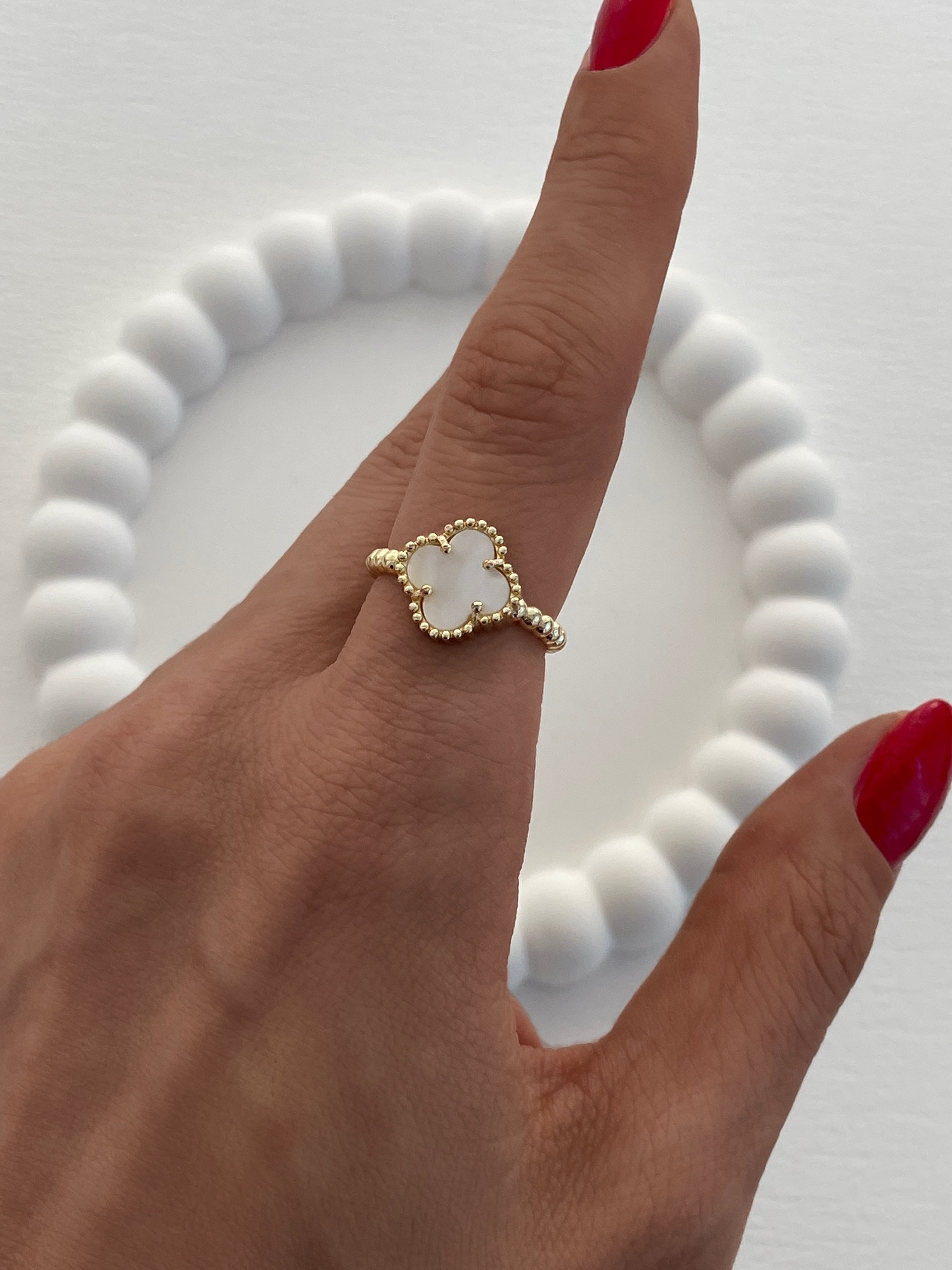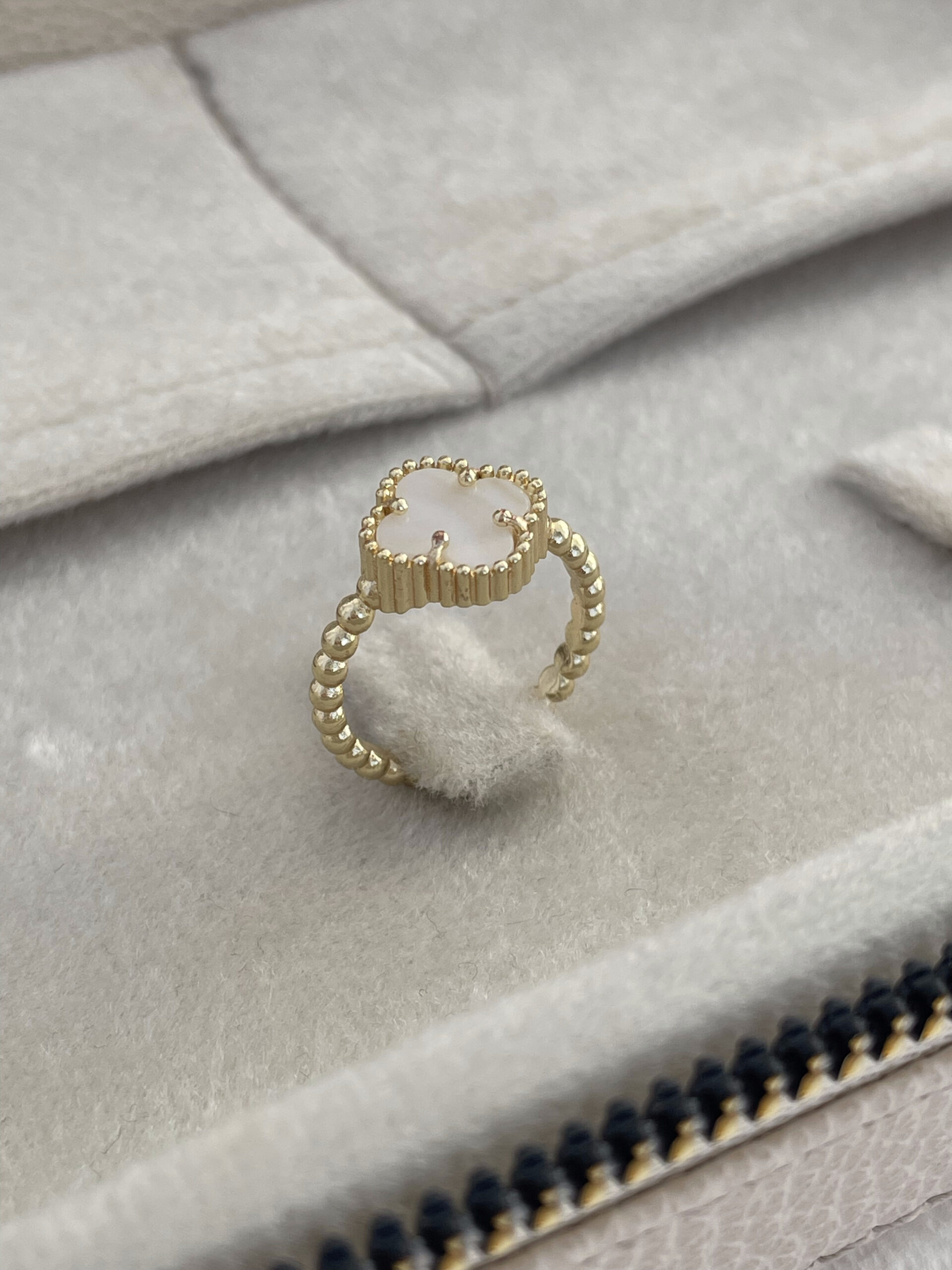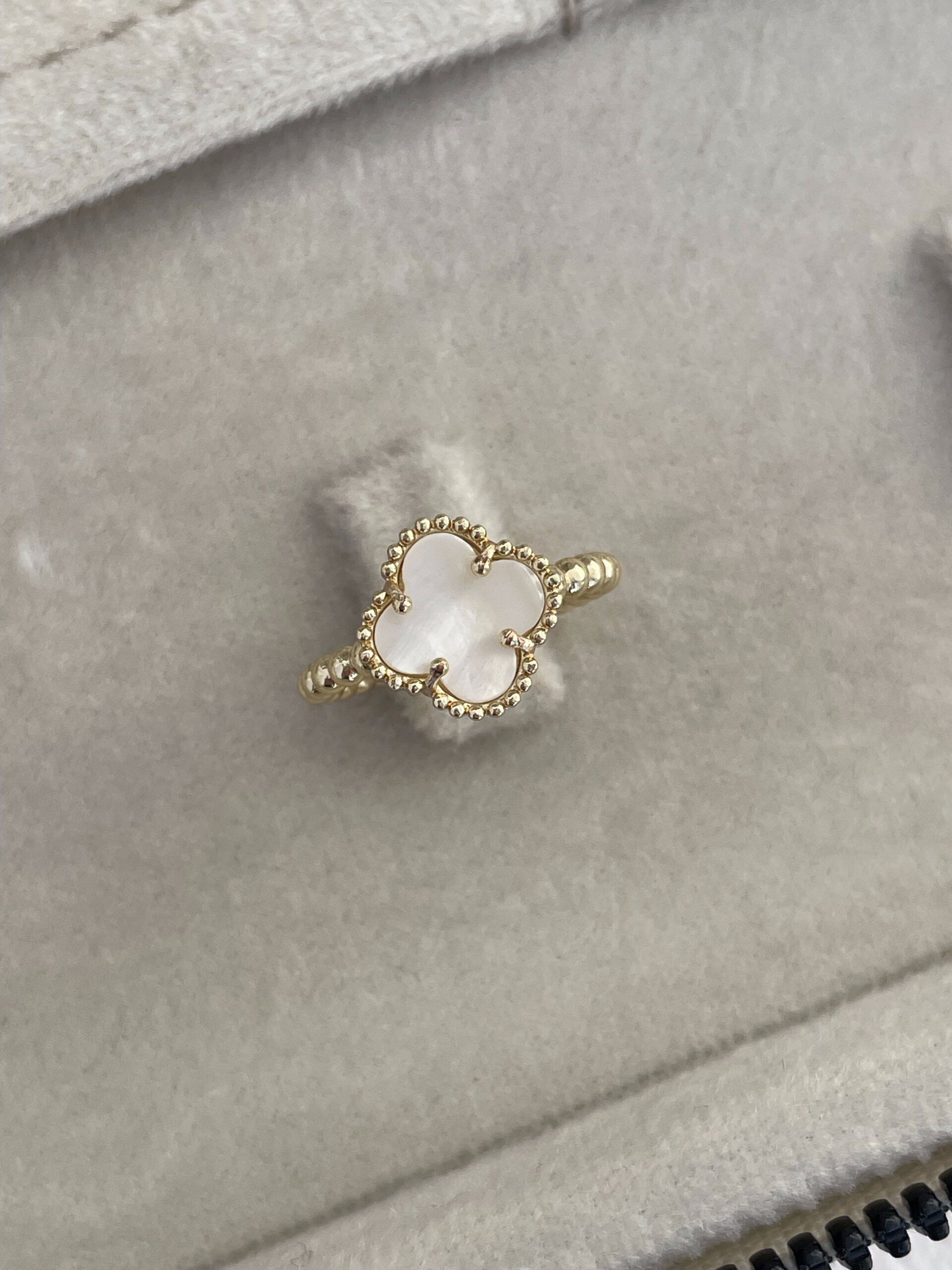 Özel Seri Yonca Tasarım Sedef Mineli Gold Ayarlanabilir Yüzük