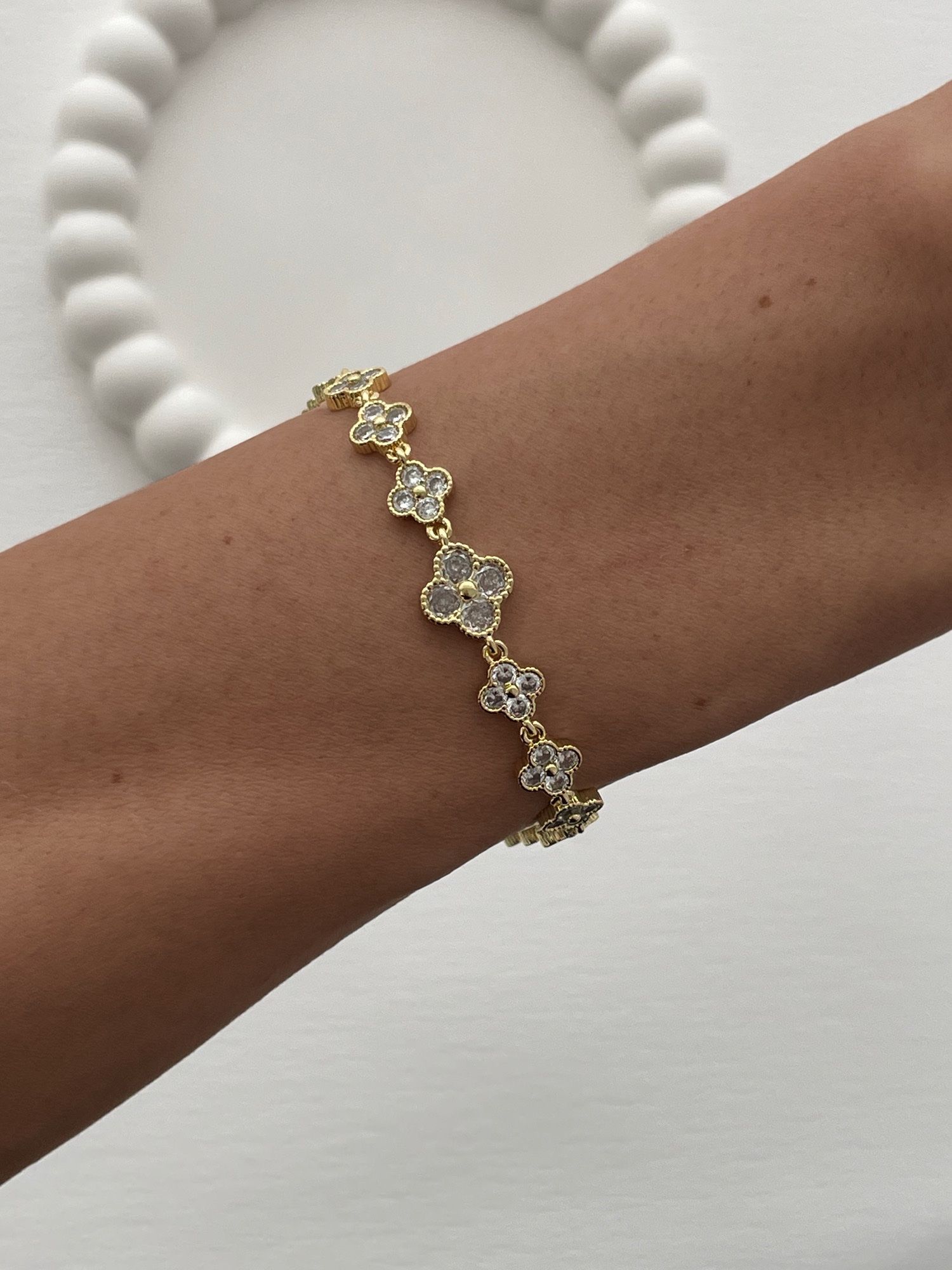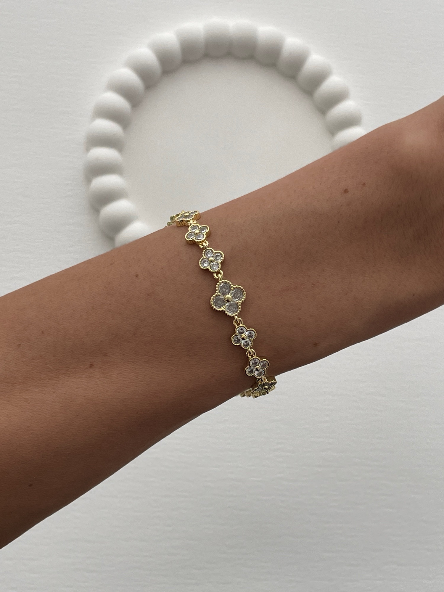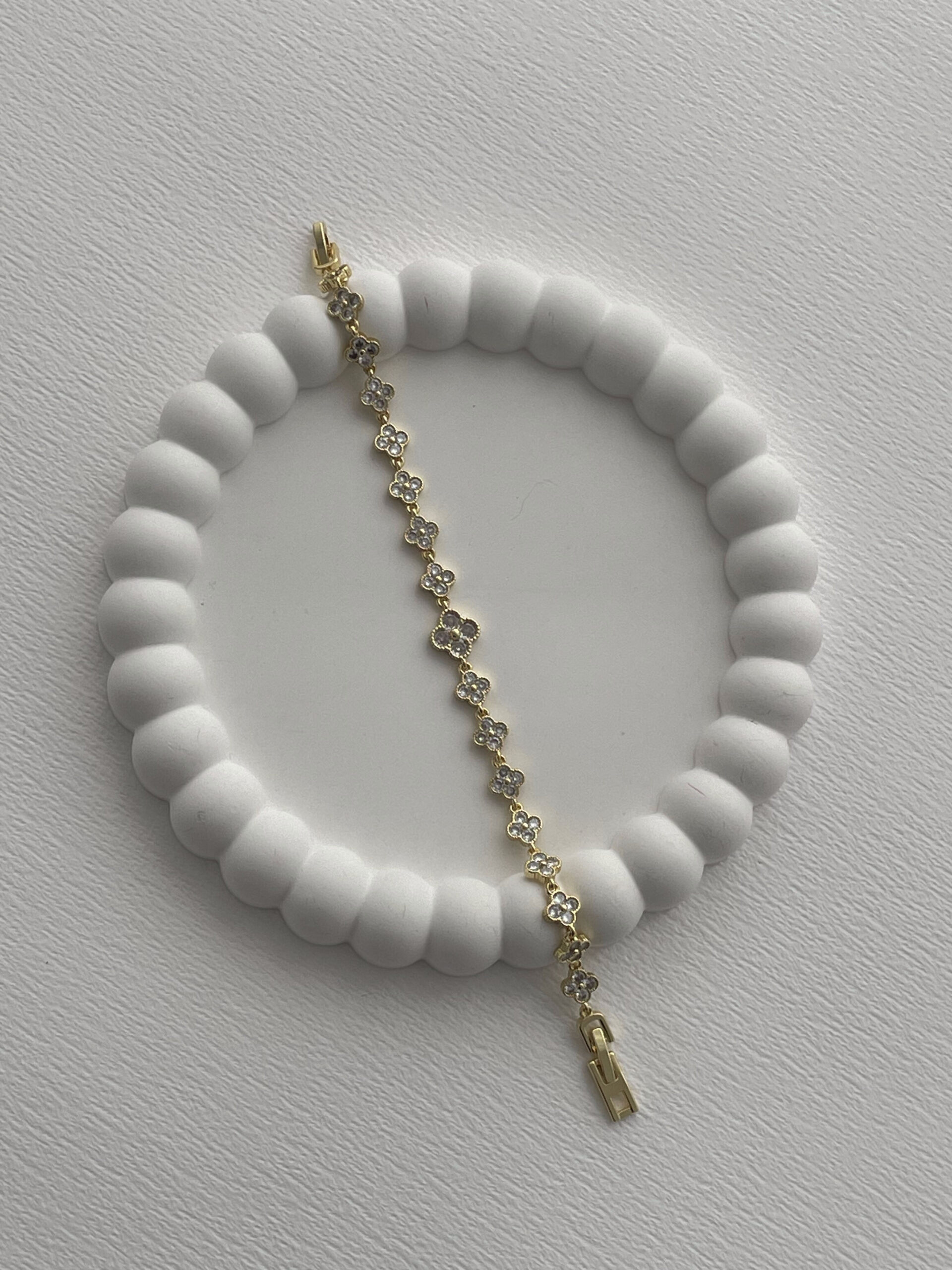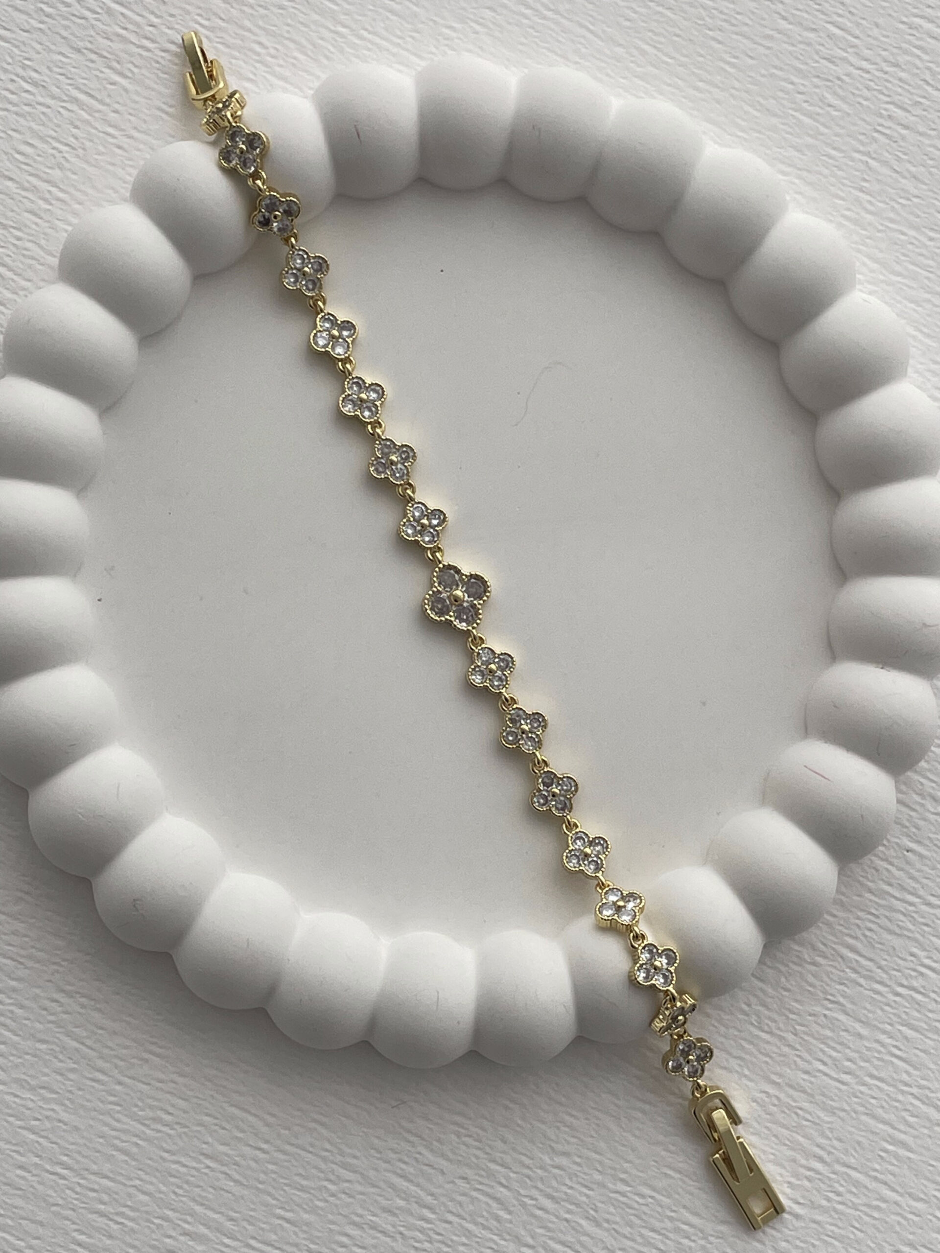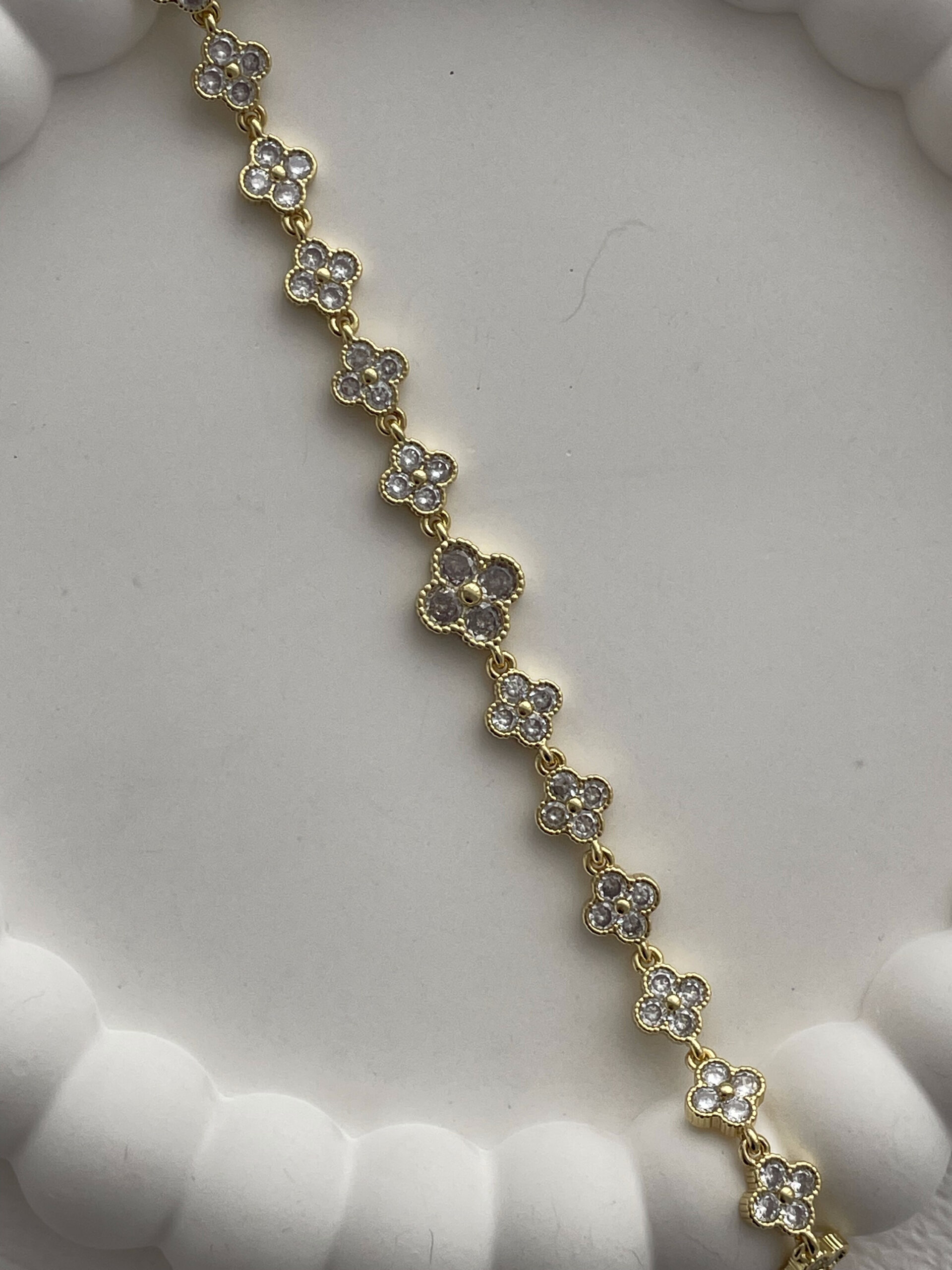 Özel Seri Marka Model Yonca Tasarım Zirkon Taşlı Gold Bileklik