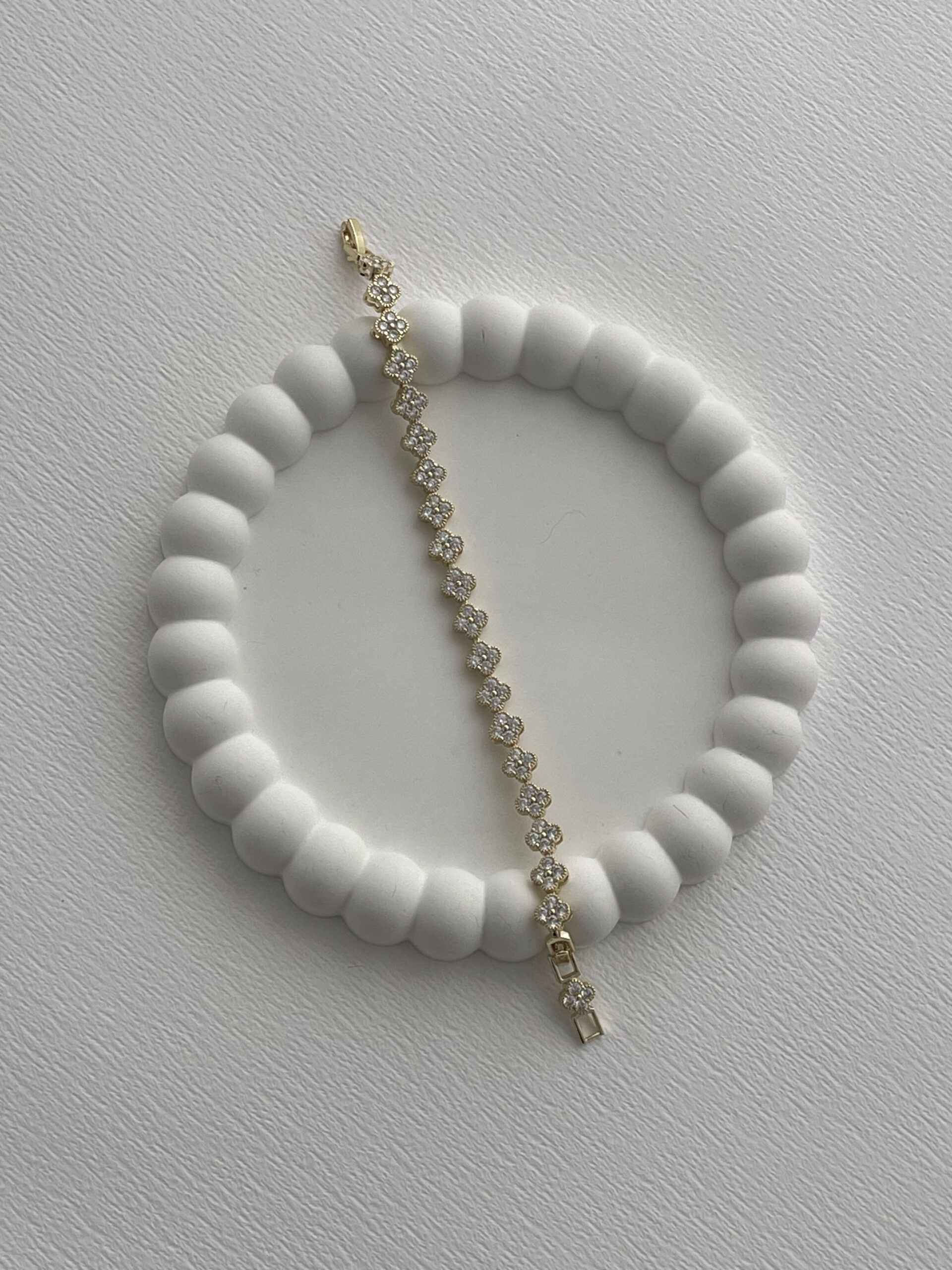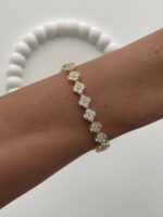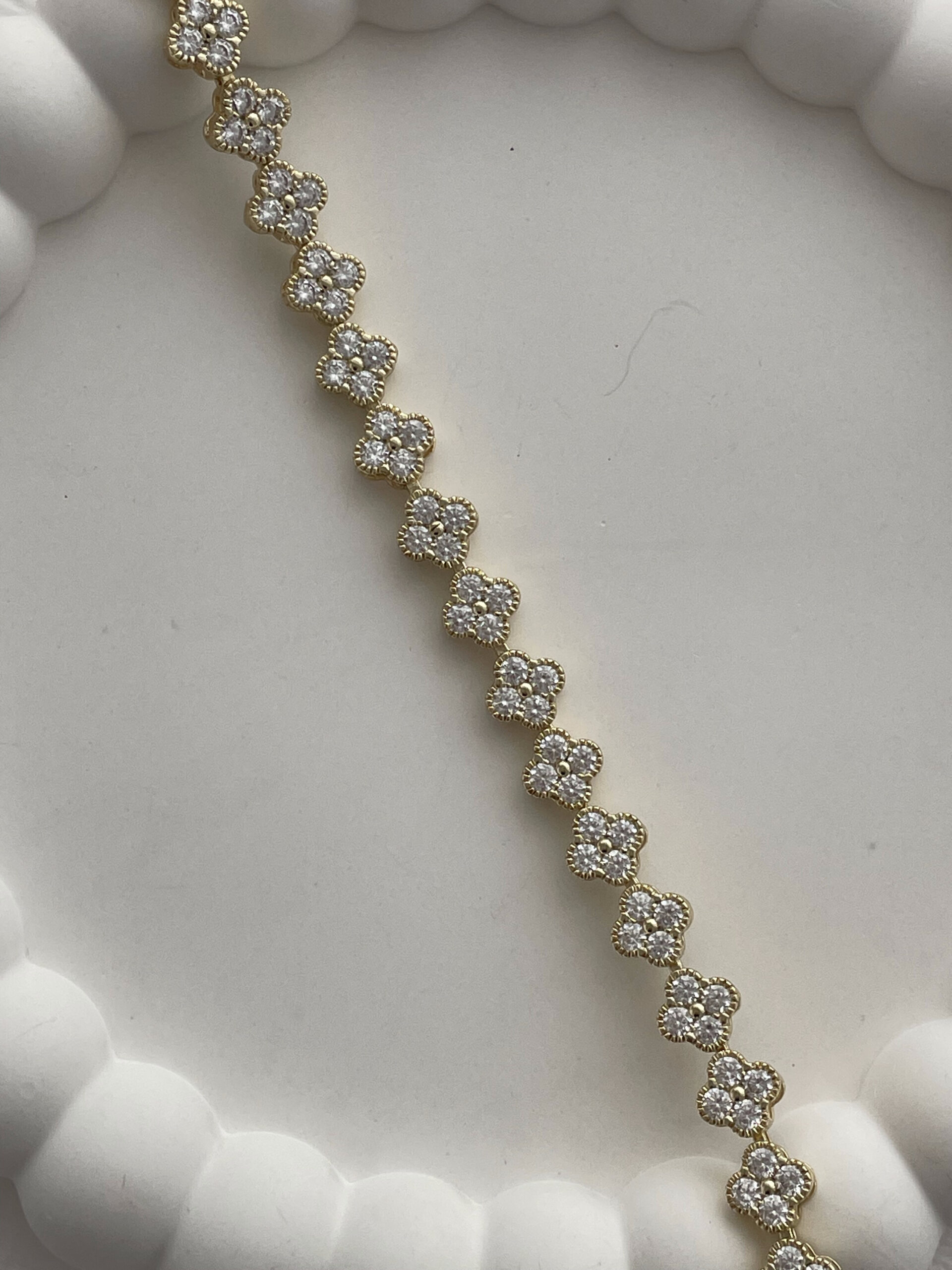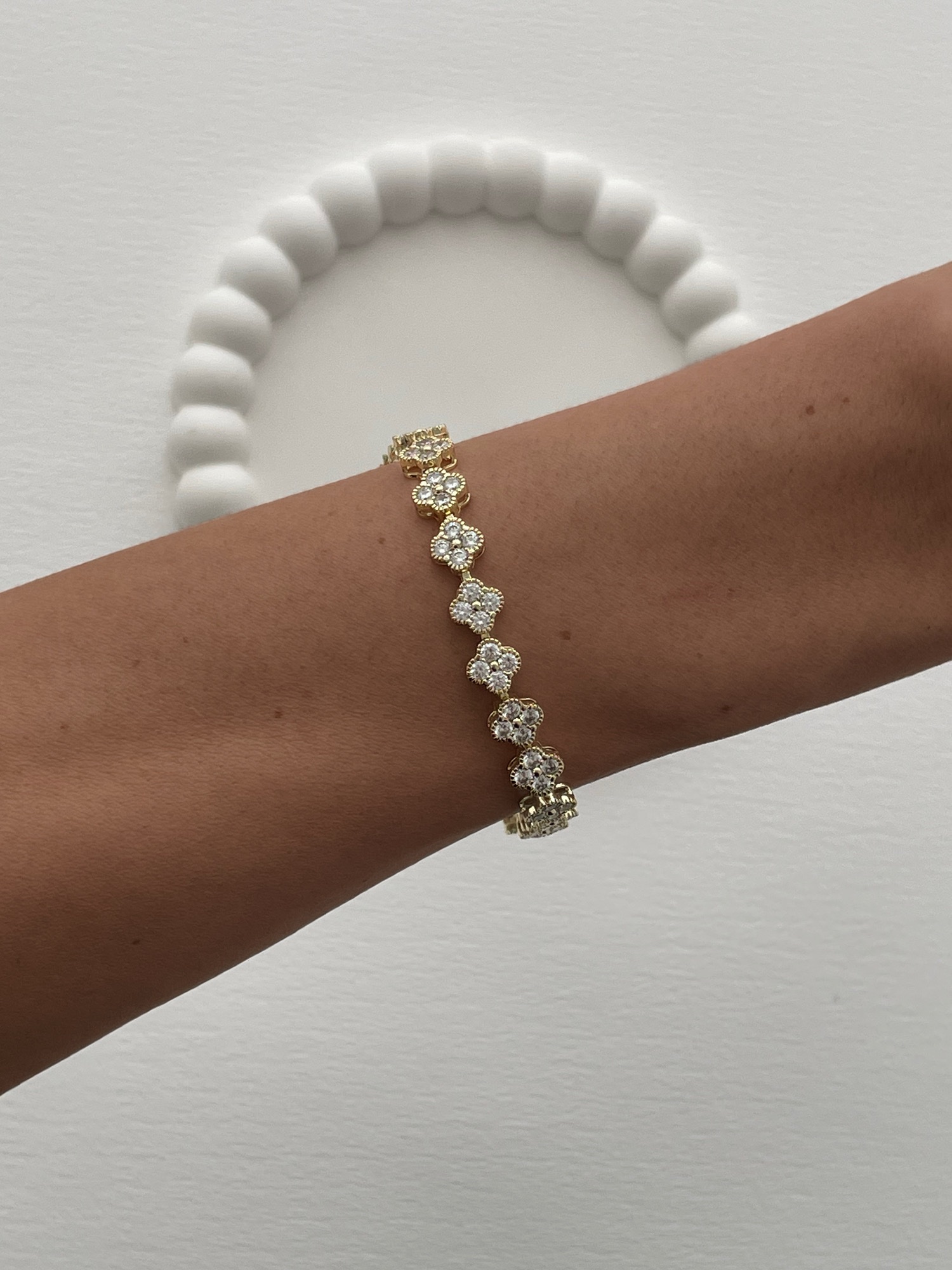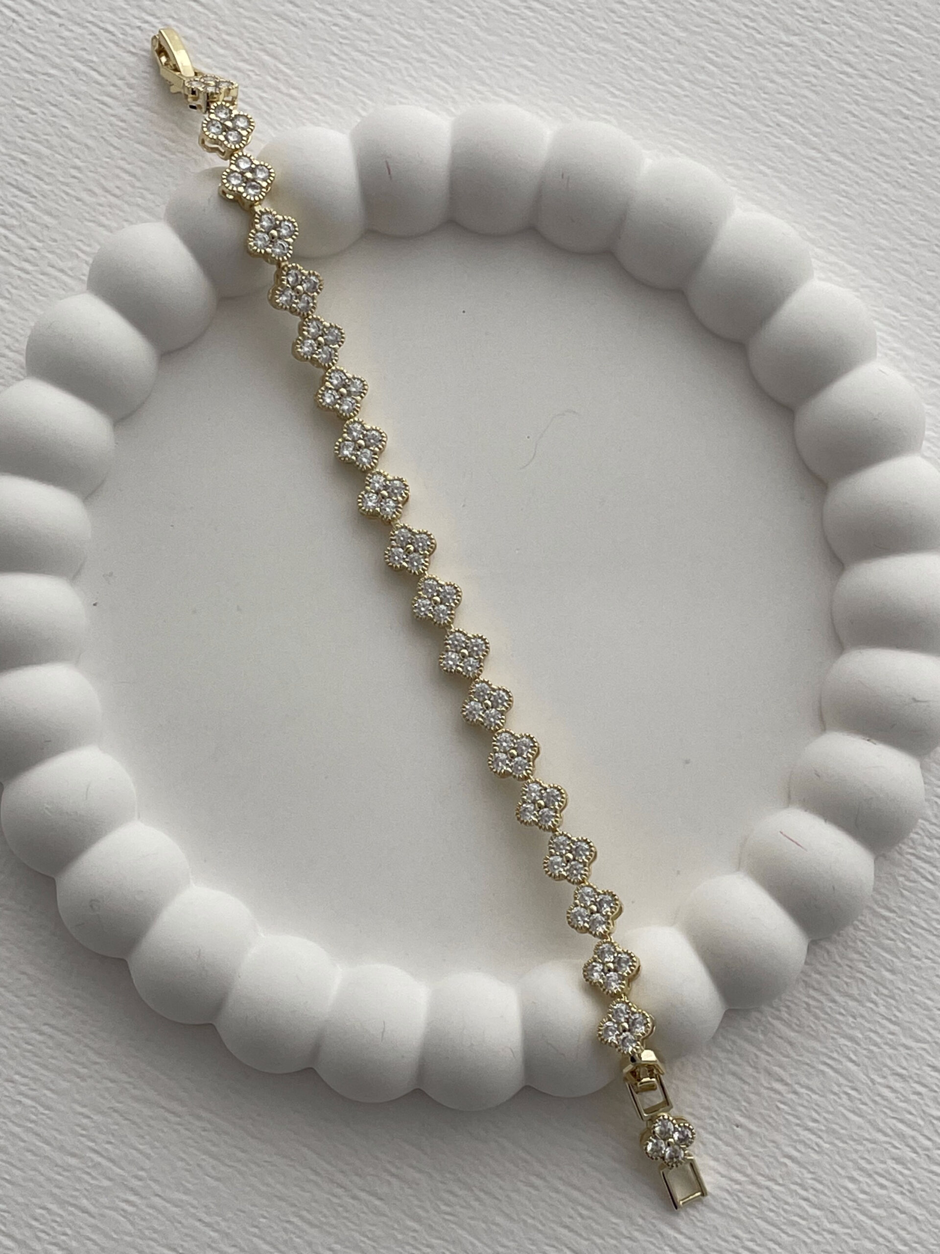Özel Seri Marka Model Yonca Tasarım Zirkon Taşlı Gold Bileklik (Orta)