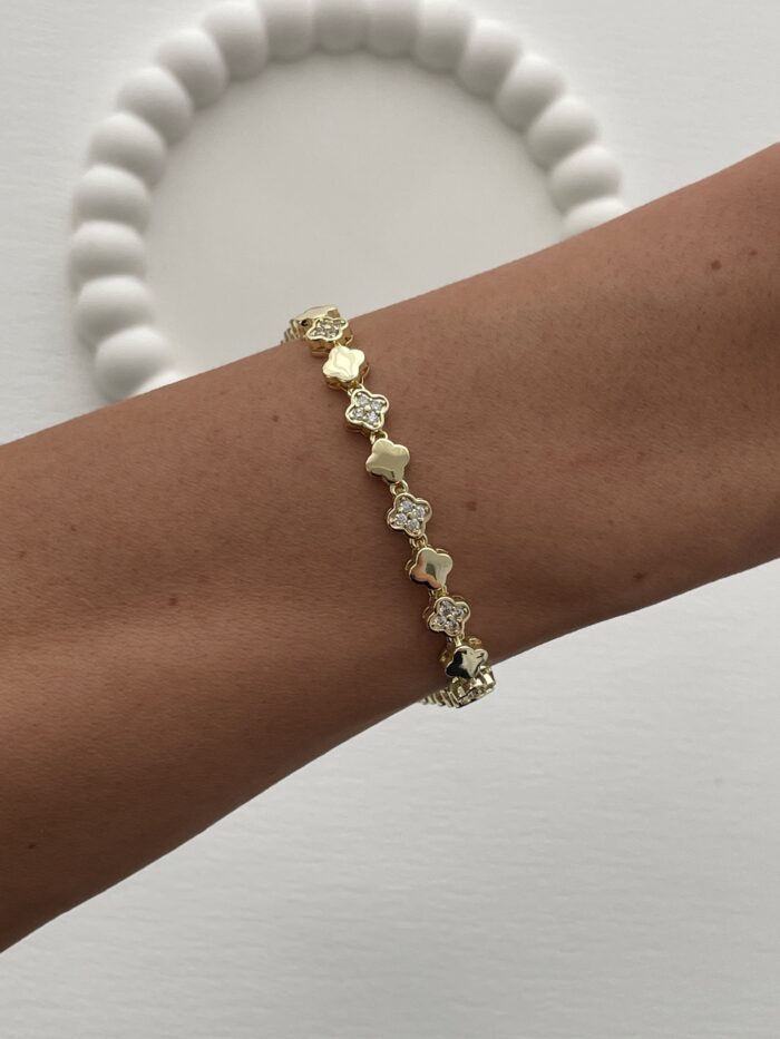 Özel Seri Marka Model Yonca Tasarım Zirkon Taşlı Gold Bileklik
