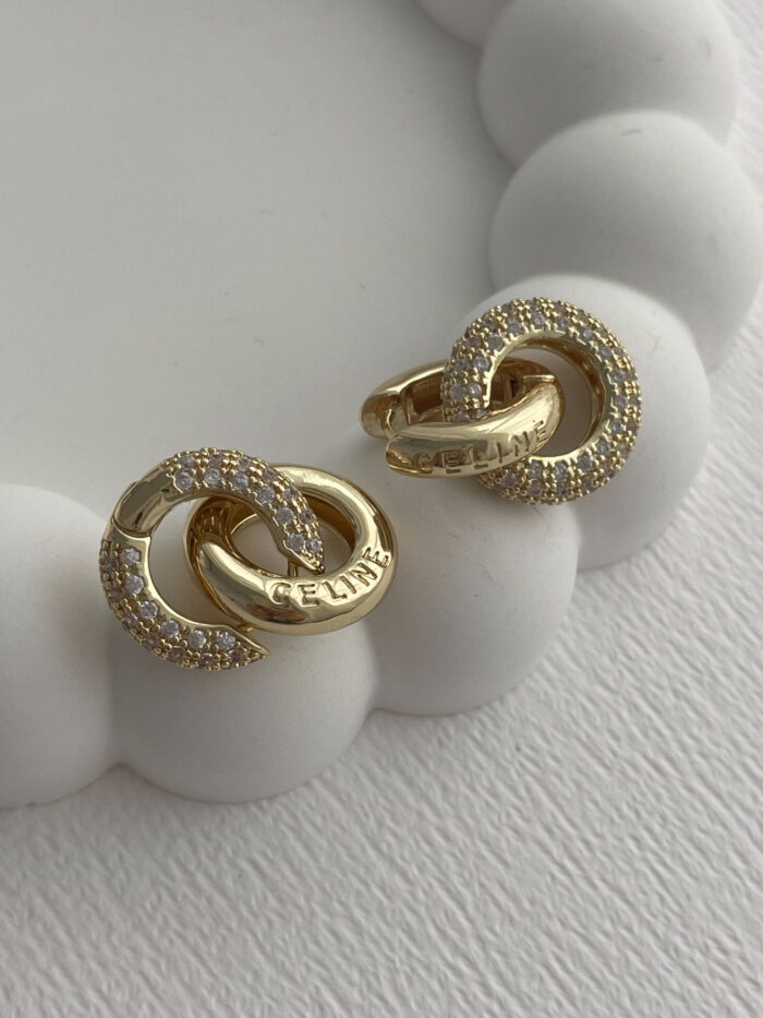 Özel Seri Marka Model Zirkon Taşlı İç İçe Geçmeli Gold Küpe
