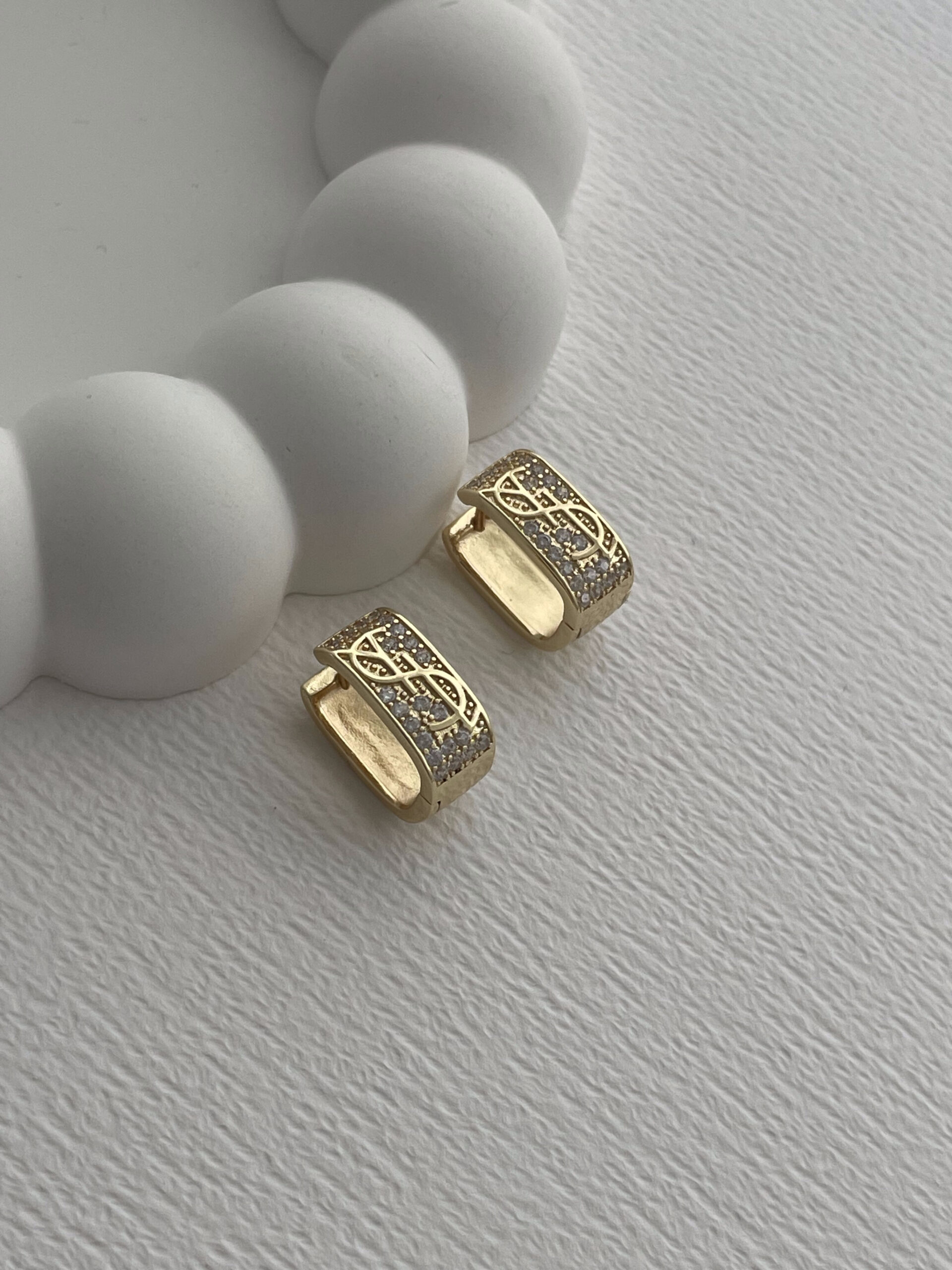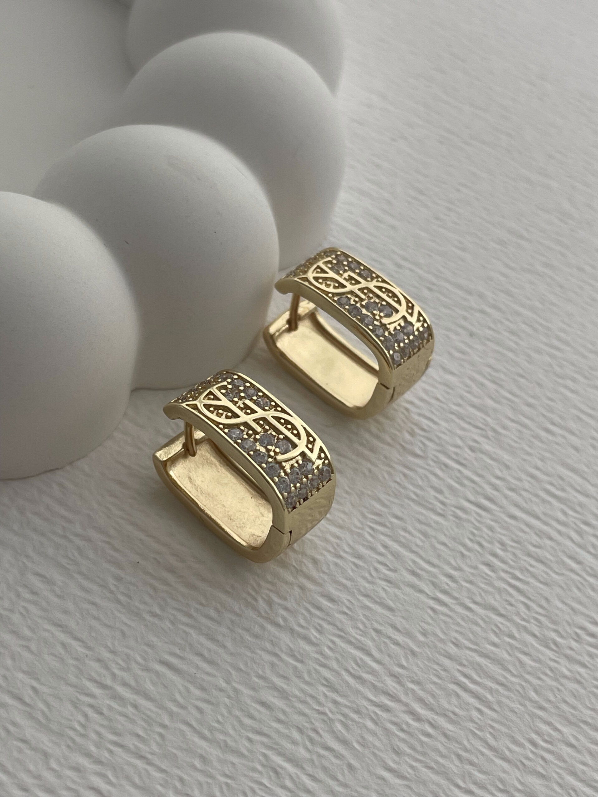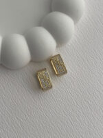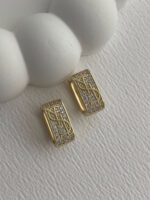 Özel Seri Marka Model Zirkon Taşlı Kare Gold Küpe