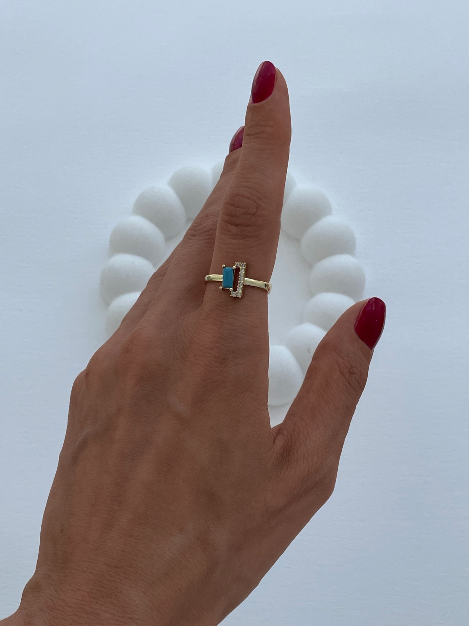 Özel Seri Mavi Baget & Zirkon Taş Gold Ayarlanabilir Yüzük
