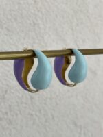 Özel Seri Mavi Lila Damla Halka Tasarım Gold Küpe