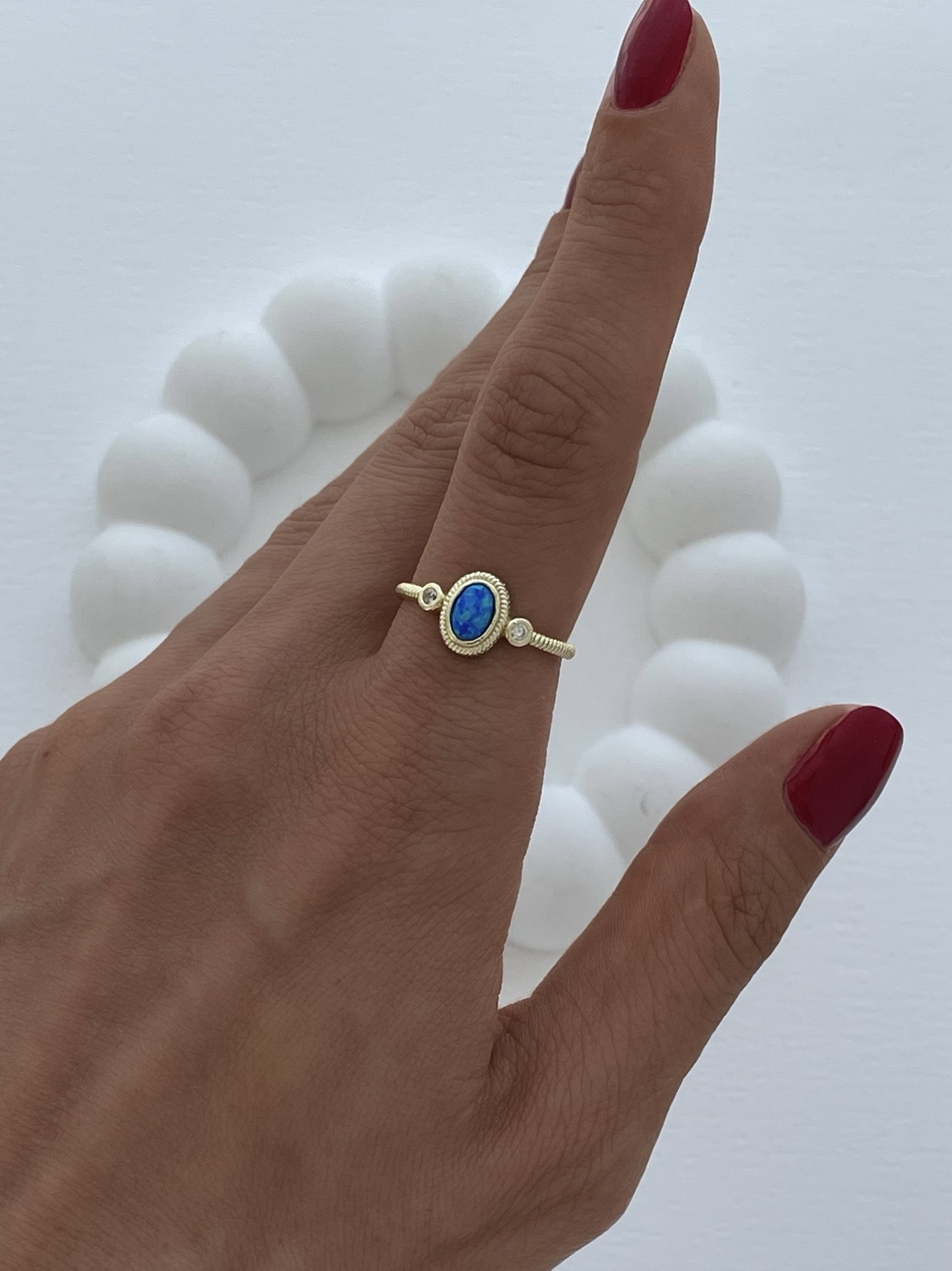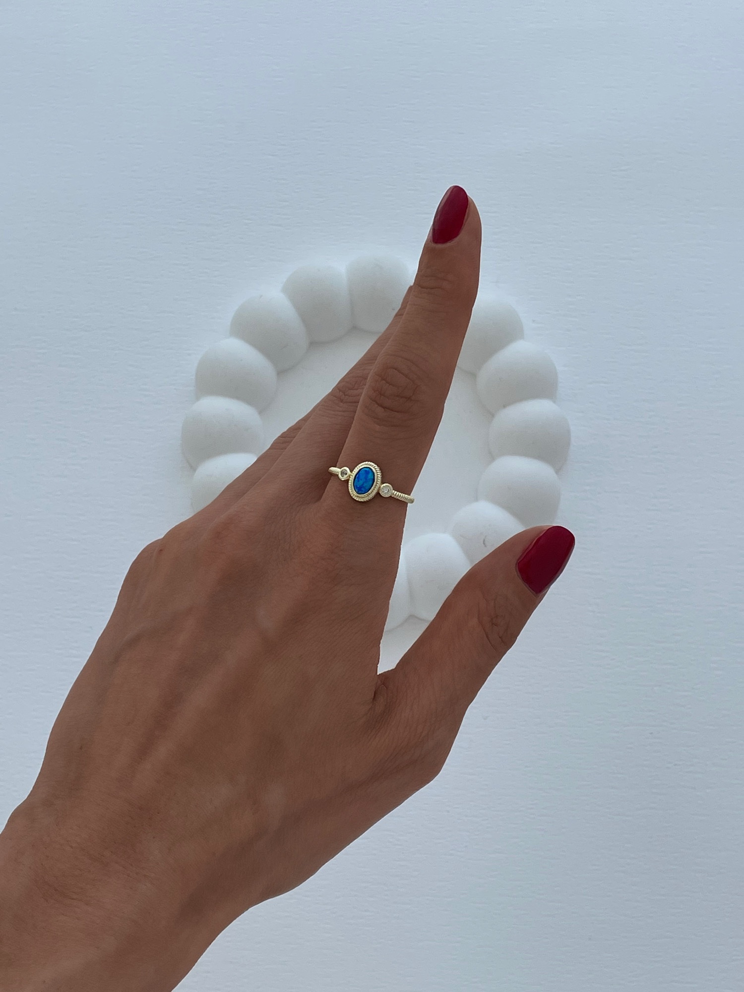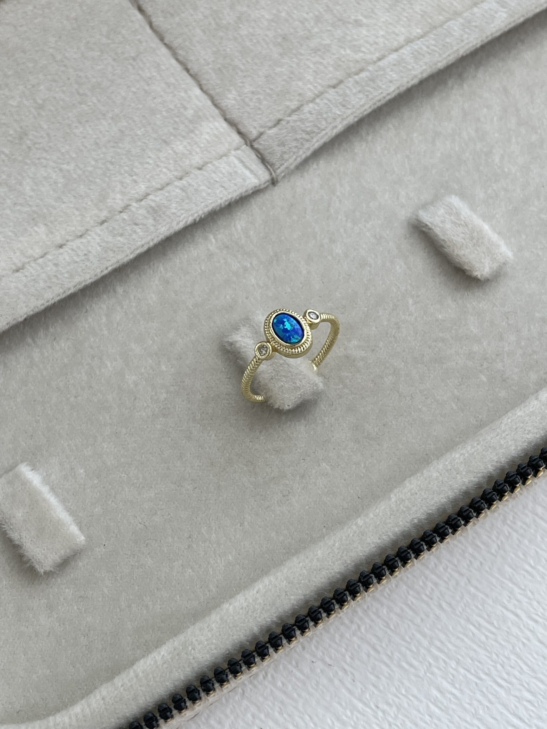 Özel Seri Mavi Opal Taş Gold Ayarlanabilir Yüzük