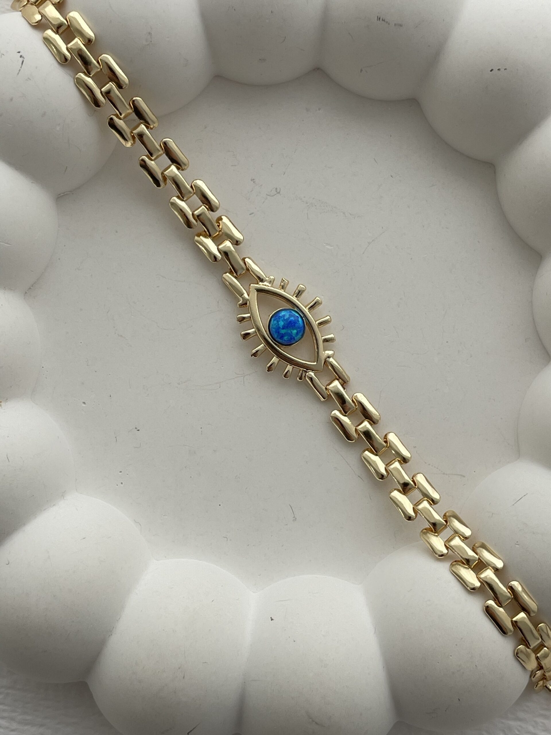 Özel Seri Mavi Opal Taş Göz Tasarım Gold Bileklik