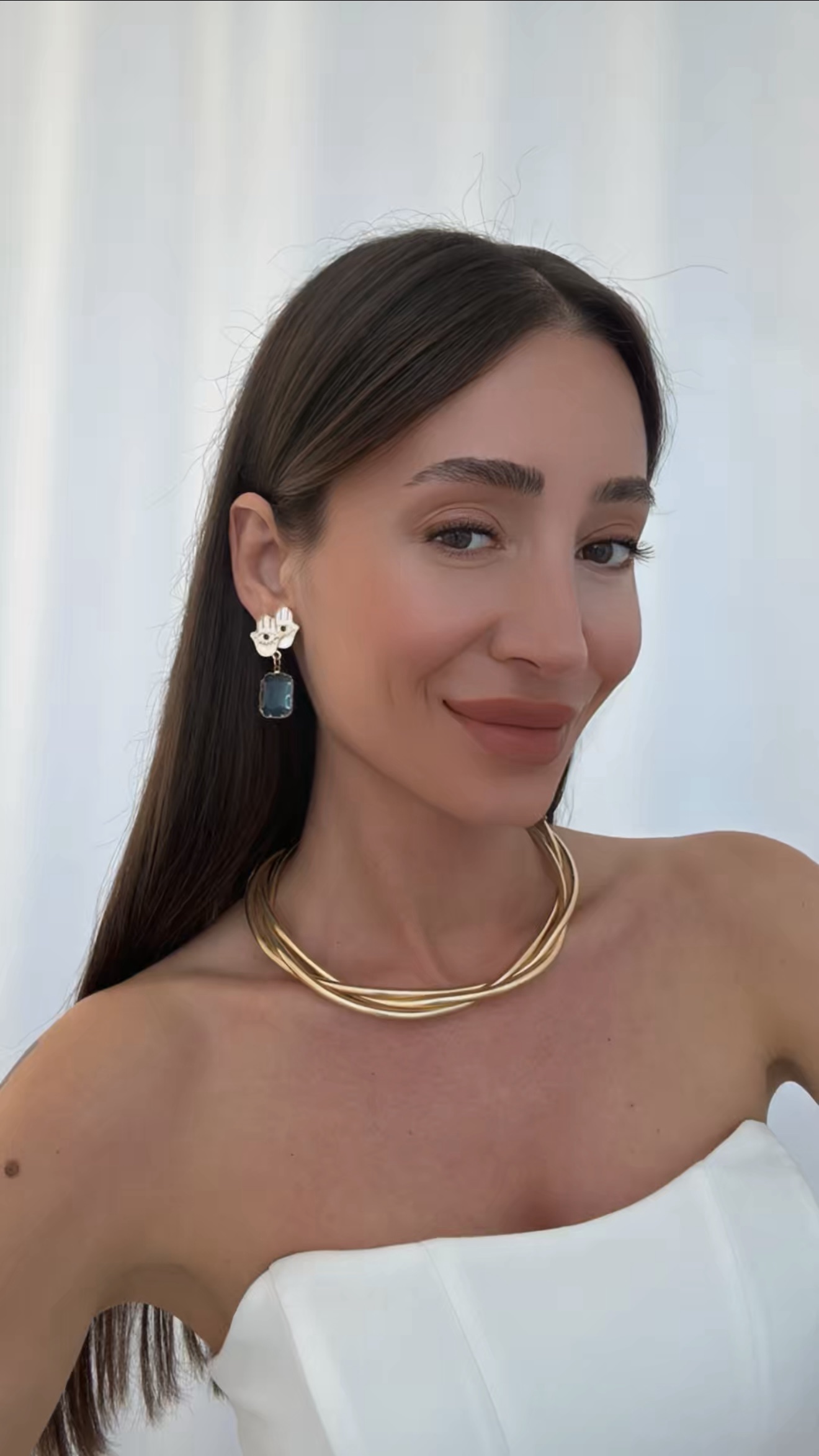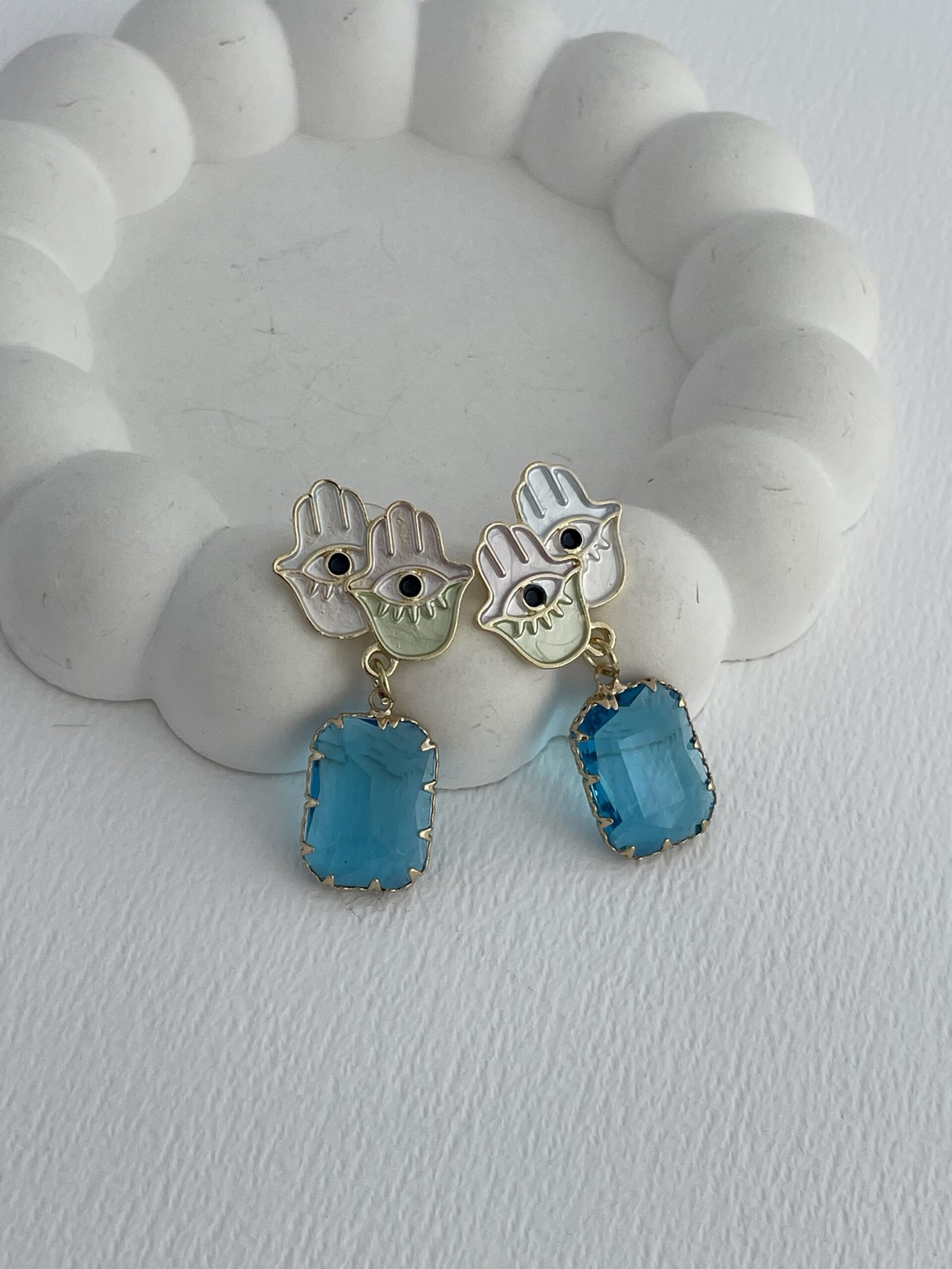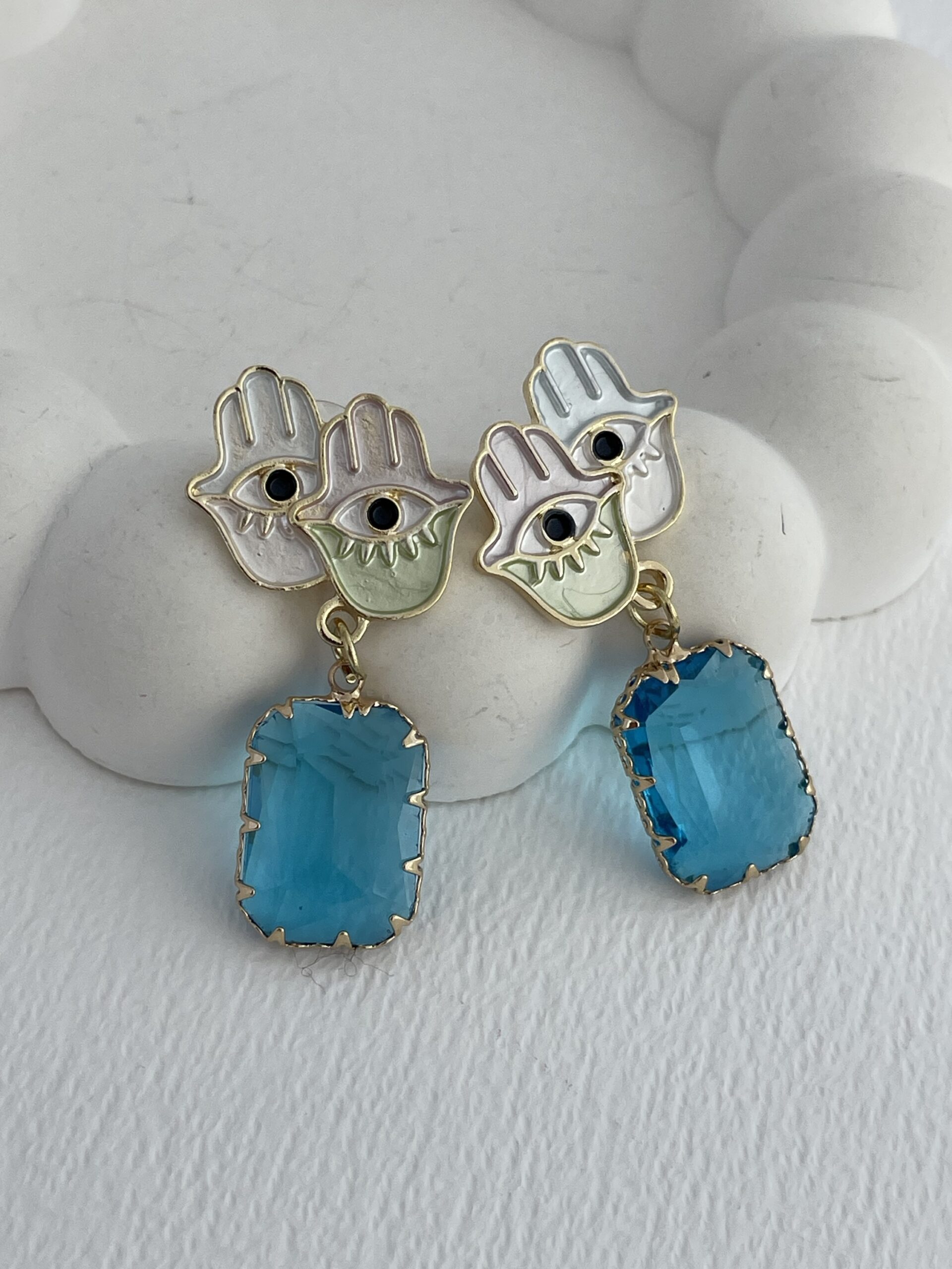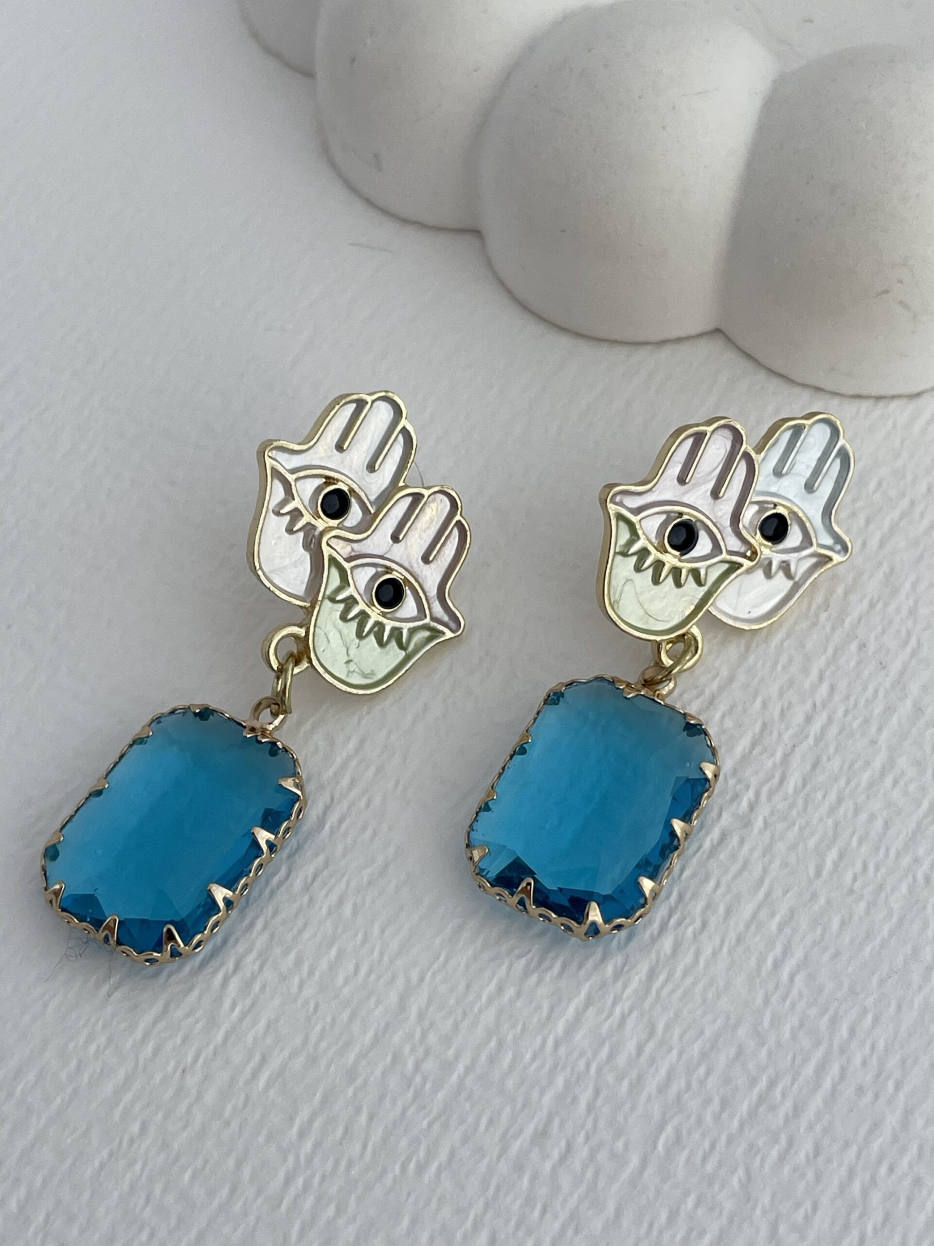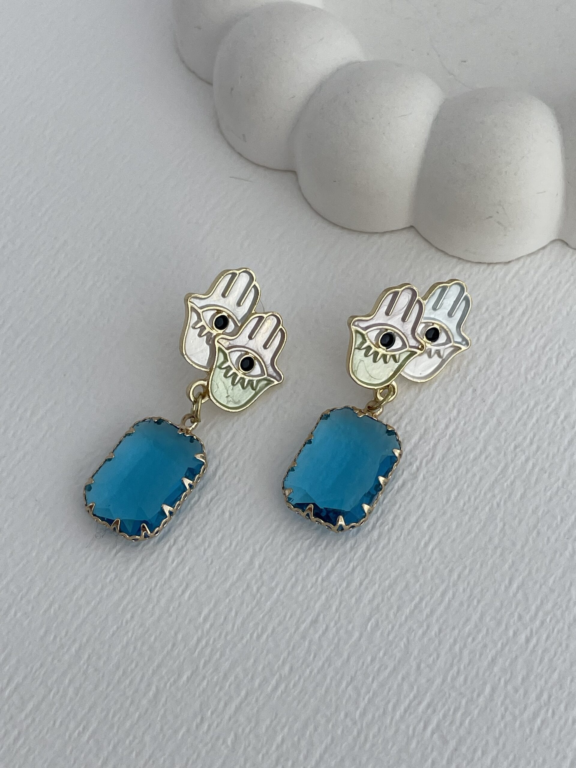 Özel Seri Mavi Taş Fatma Ana Eli Tasarım Gold Küpe