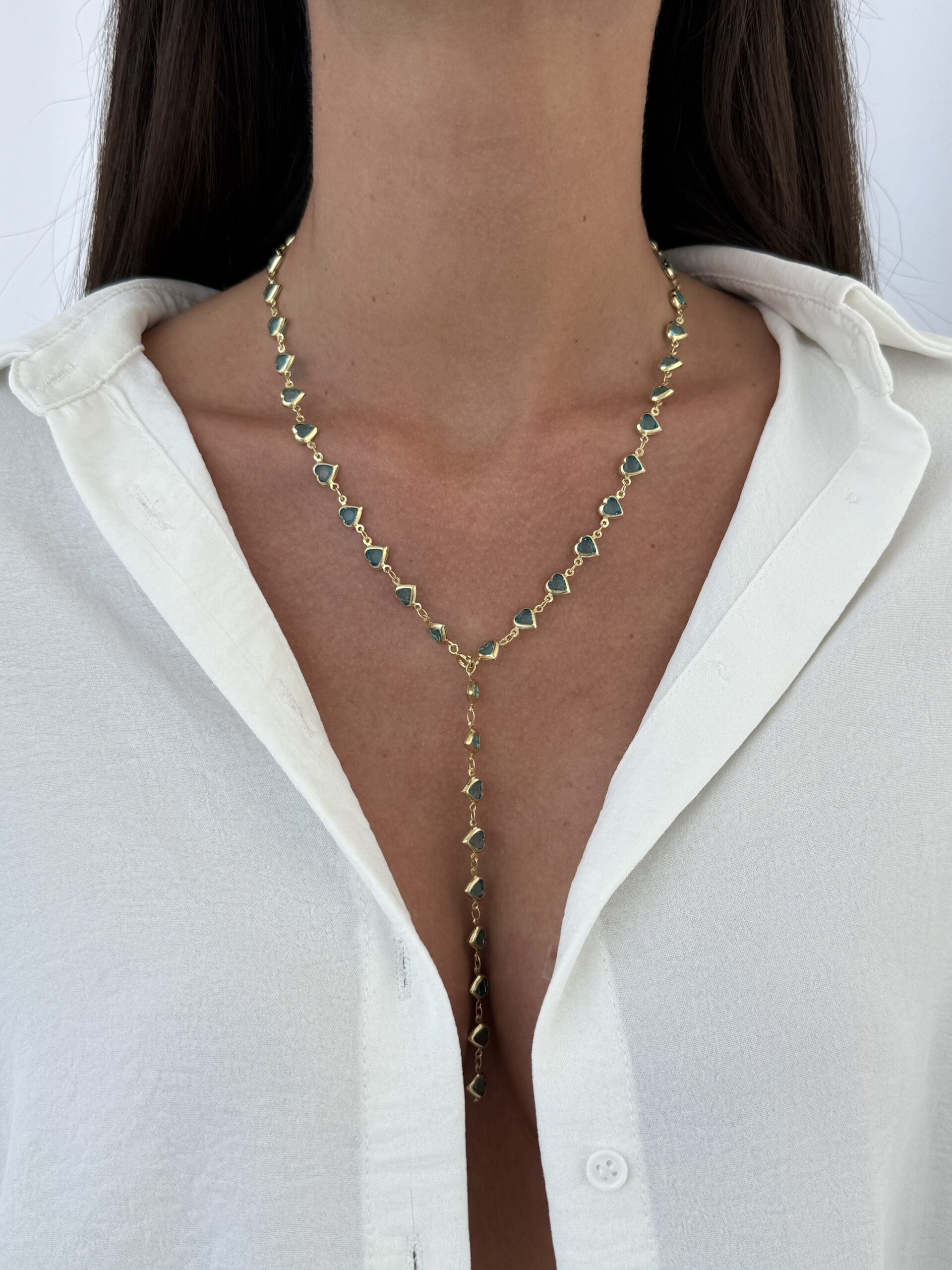 Özel Seri Mavi Taş Kalp Tasarım Gold Y Kolye