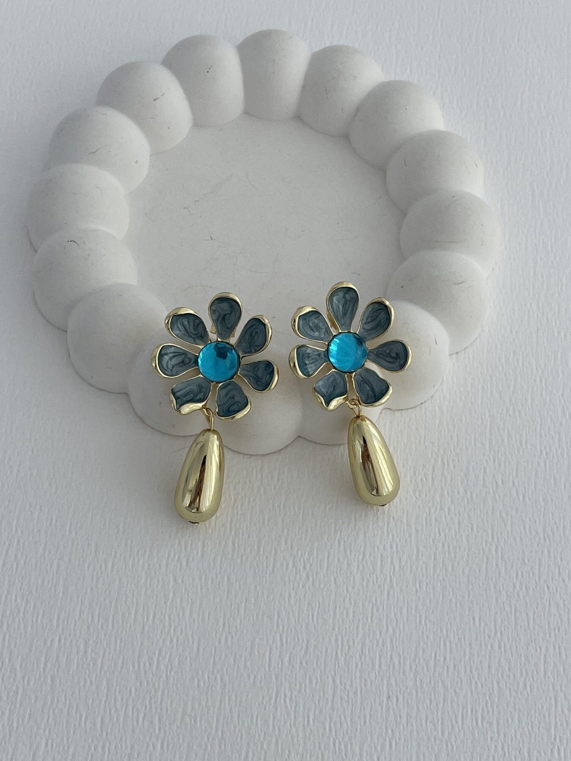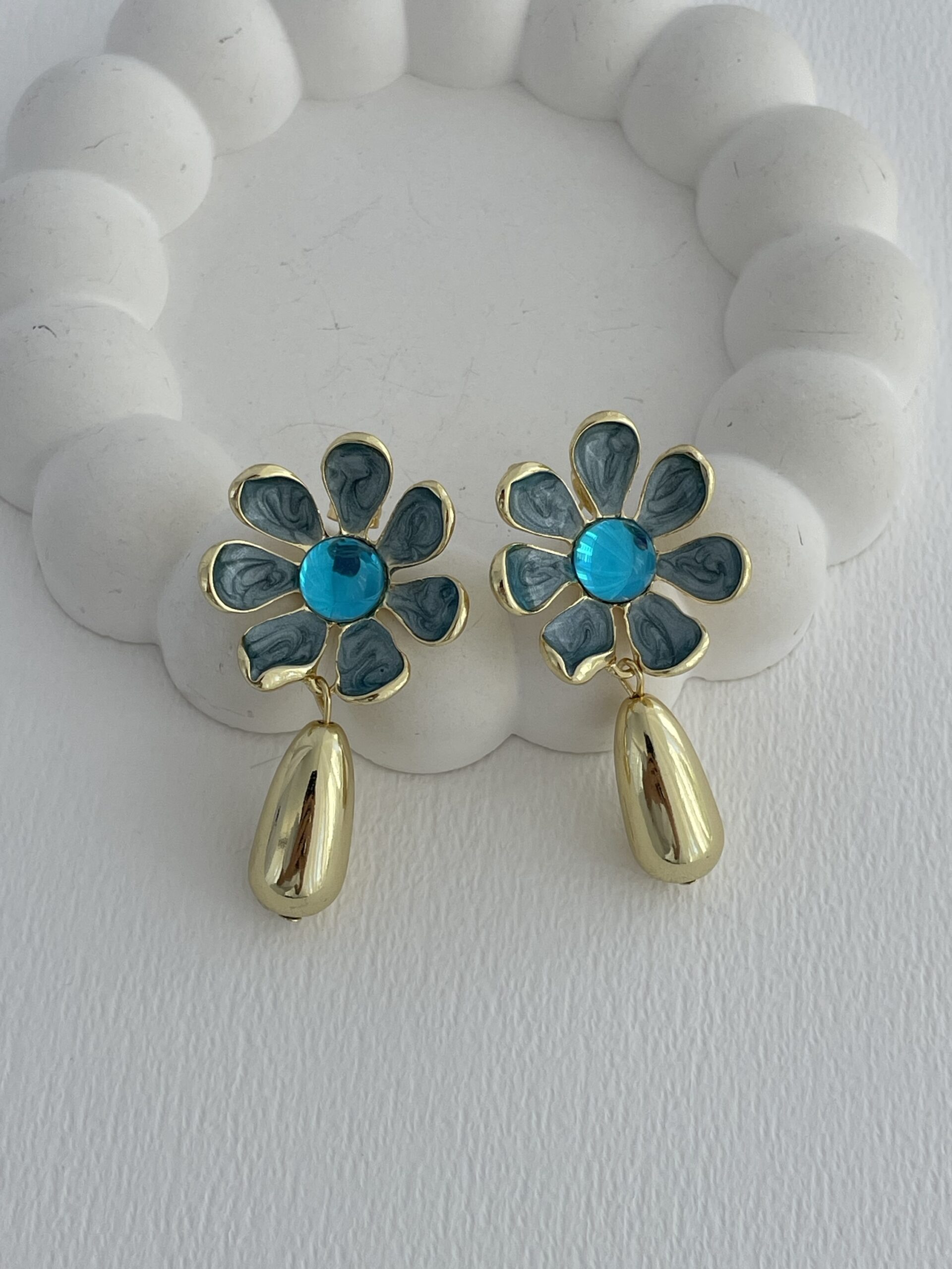 Özel Seri Mavi Taş Papatya Tasarım Gold Küpe