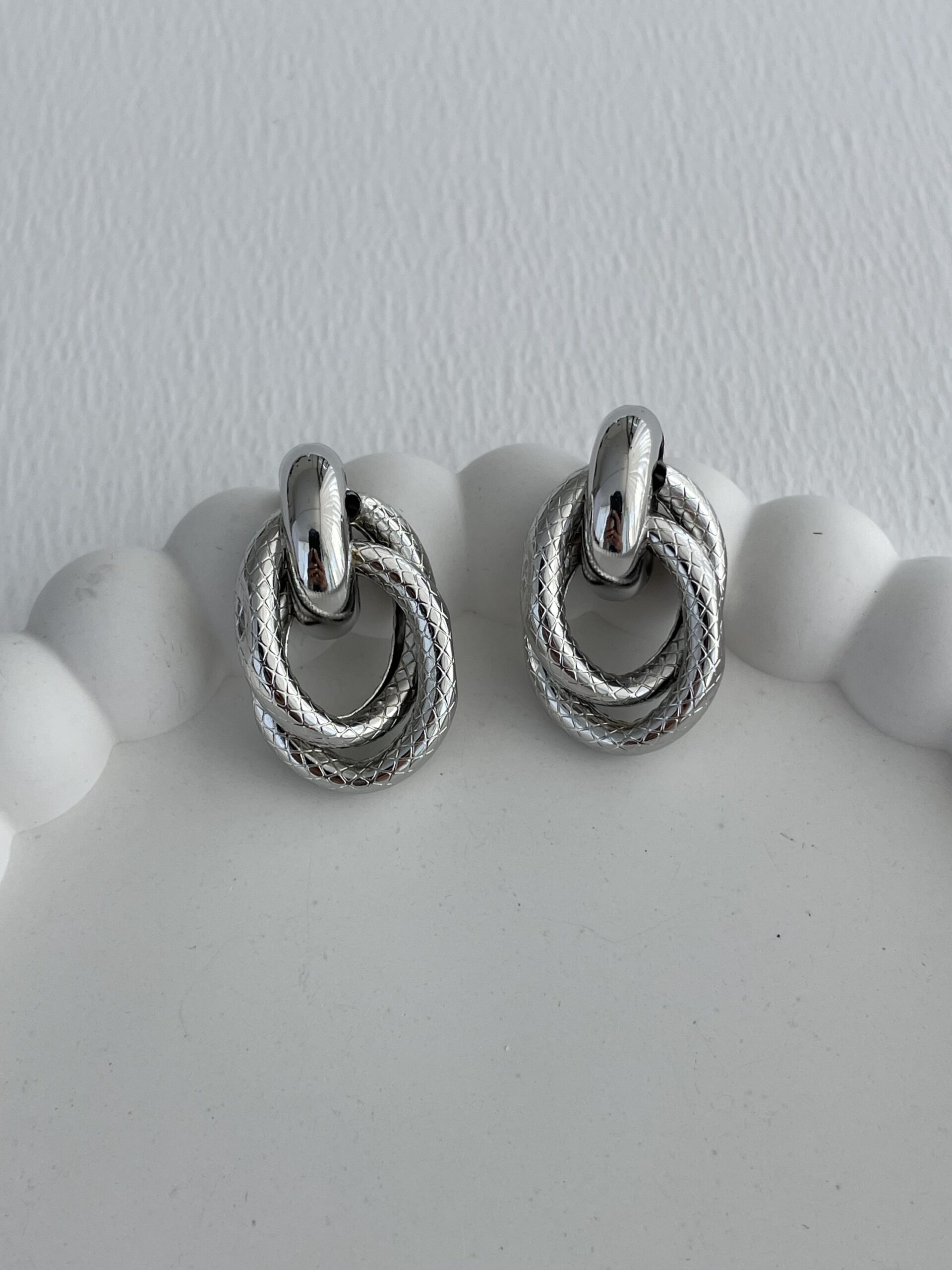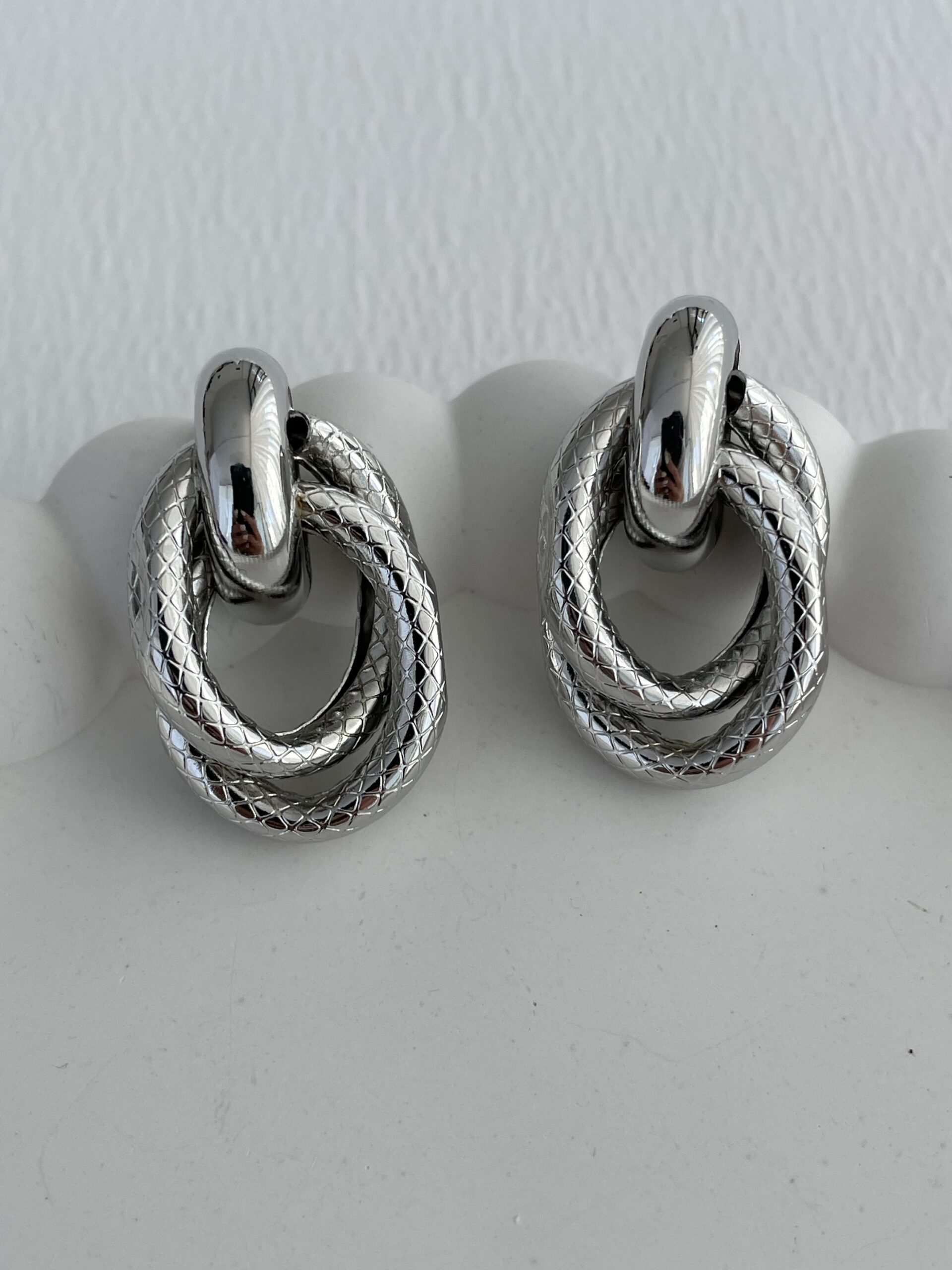 Özel Seri Metalik Gri İkili Oval Halka Küpe