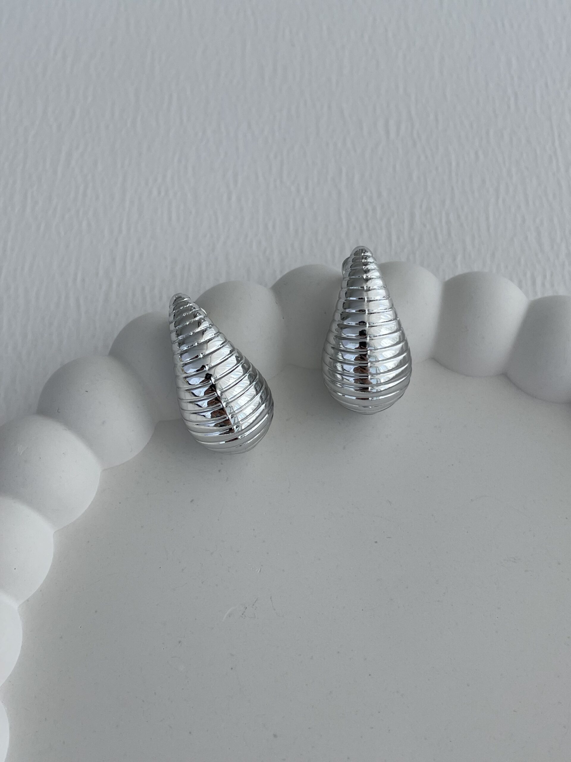 Özel Seri Metalik Gümüş Damla Tasarım Marka Küpe