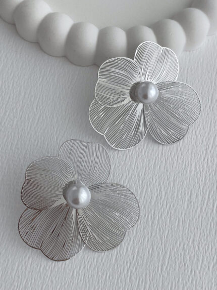 Özel Seri Metalik Gümüş Top Damla Küpe