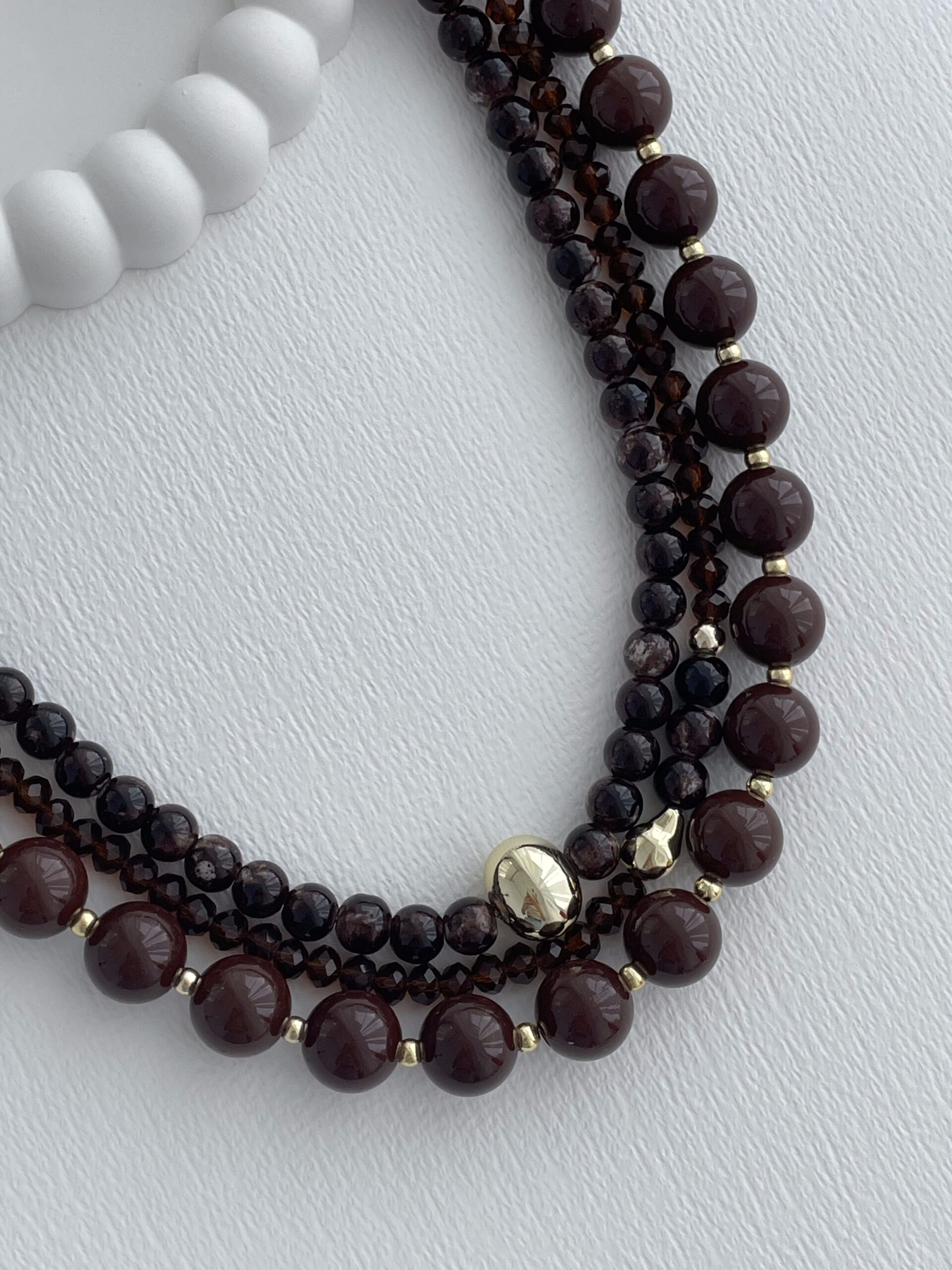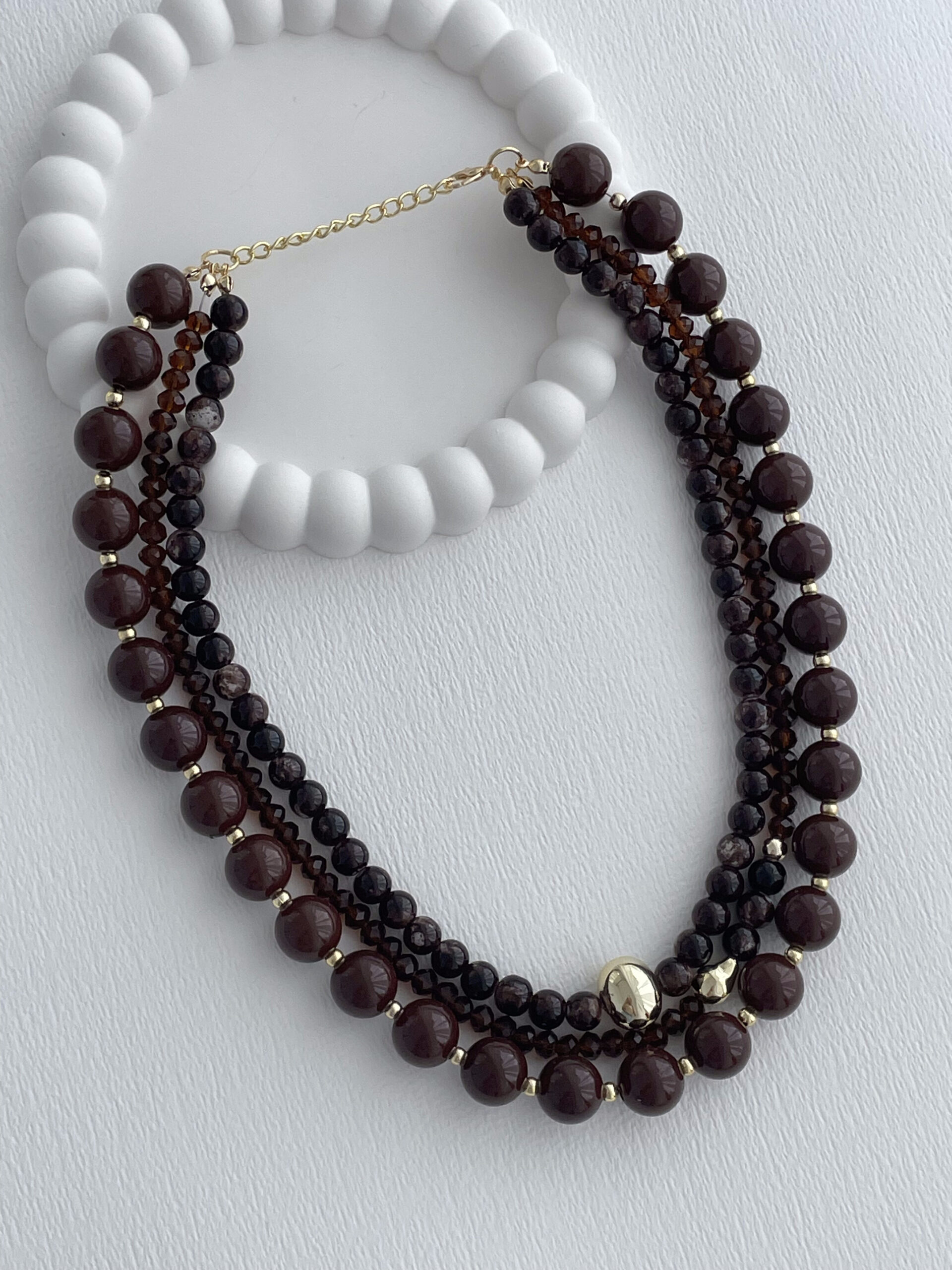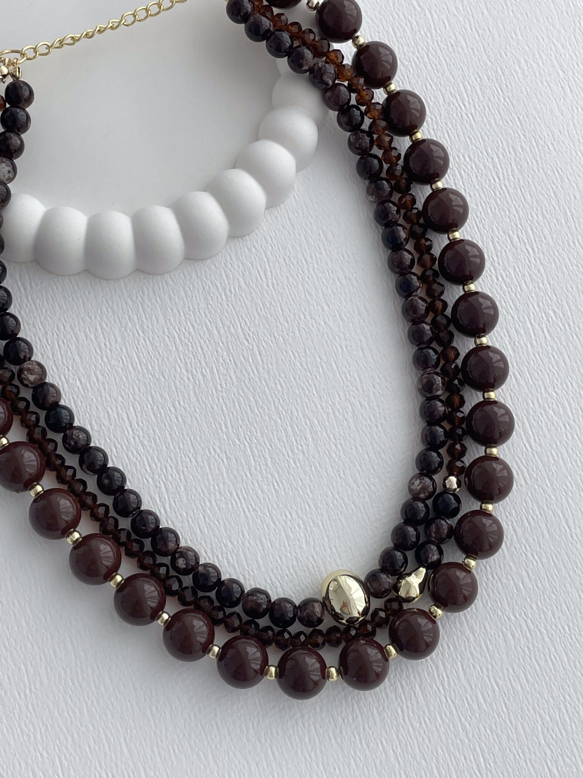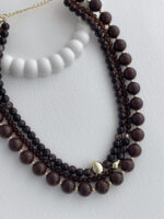 Özel Seri Minik Gold Boncuk Detay Üçlü Kahverengi Top Kolye
