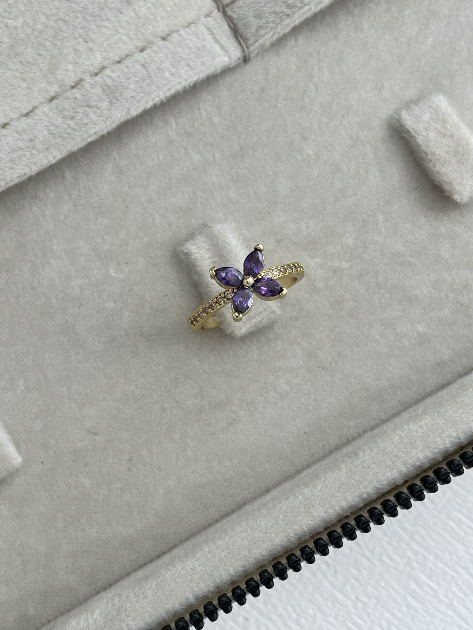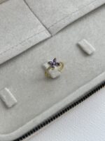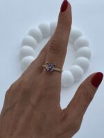 Özel Seri Mor Baget Taş Çiçek Gold Ayarlanabilir Yüzük