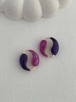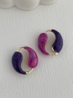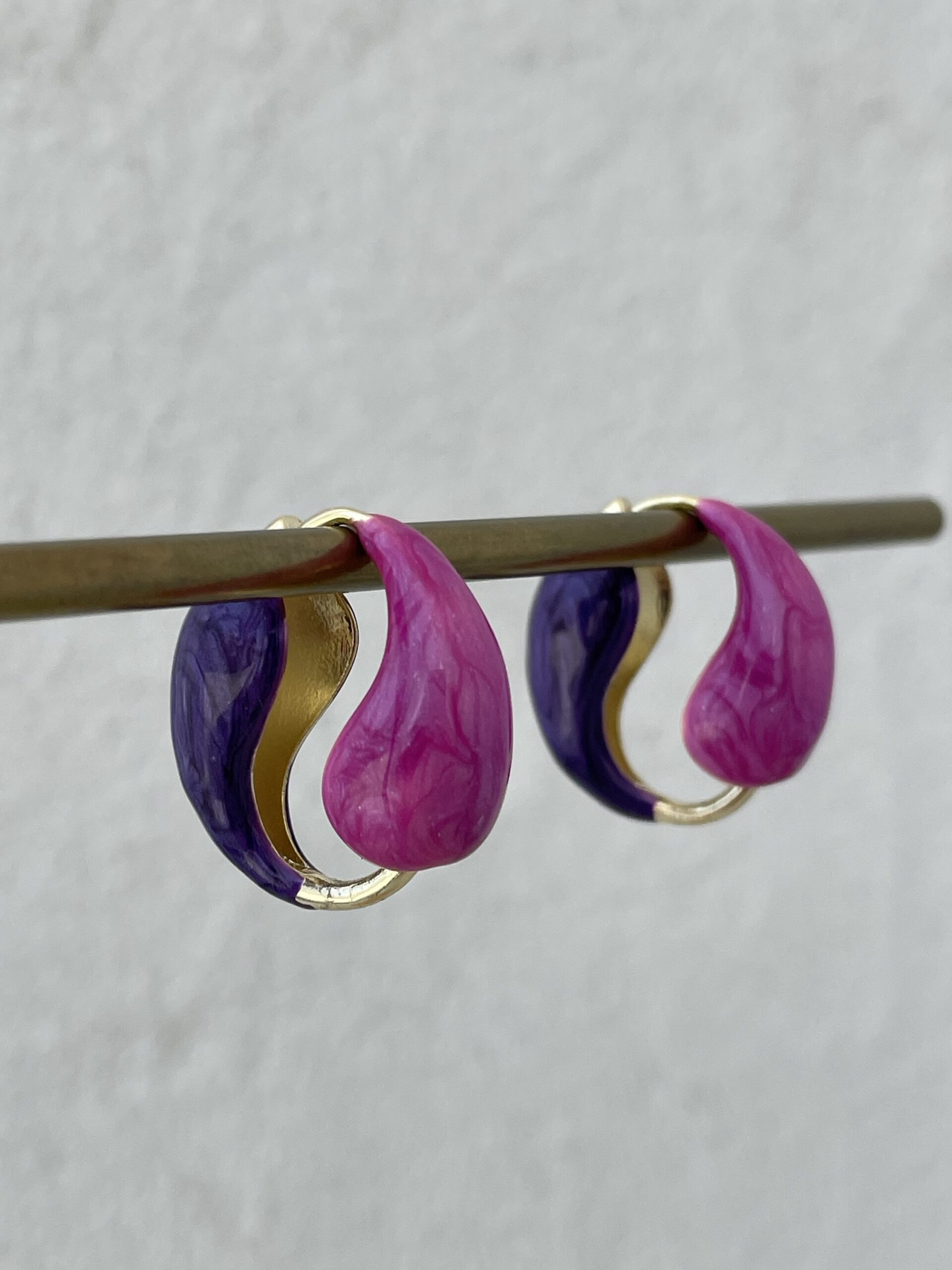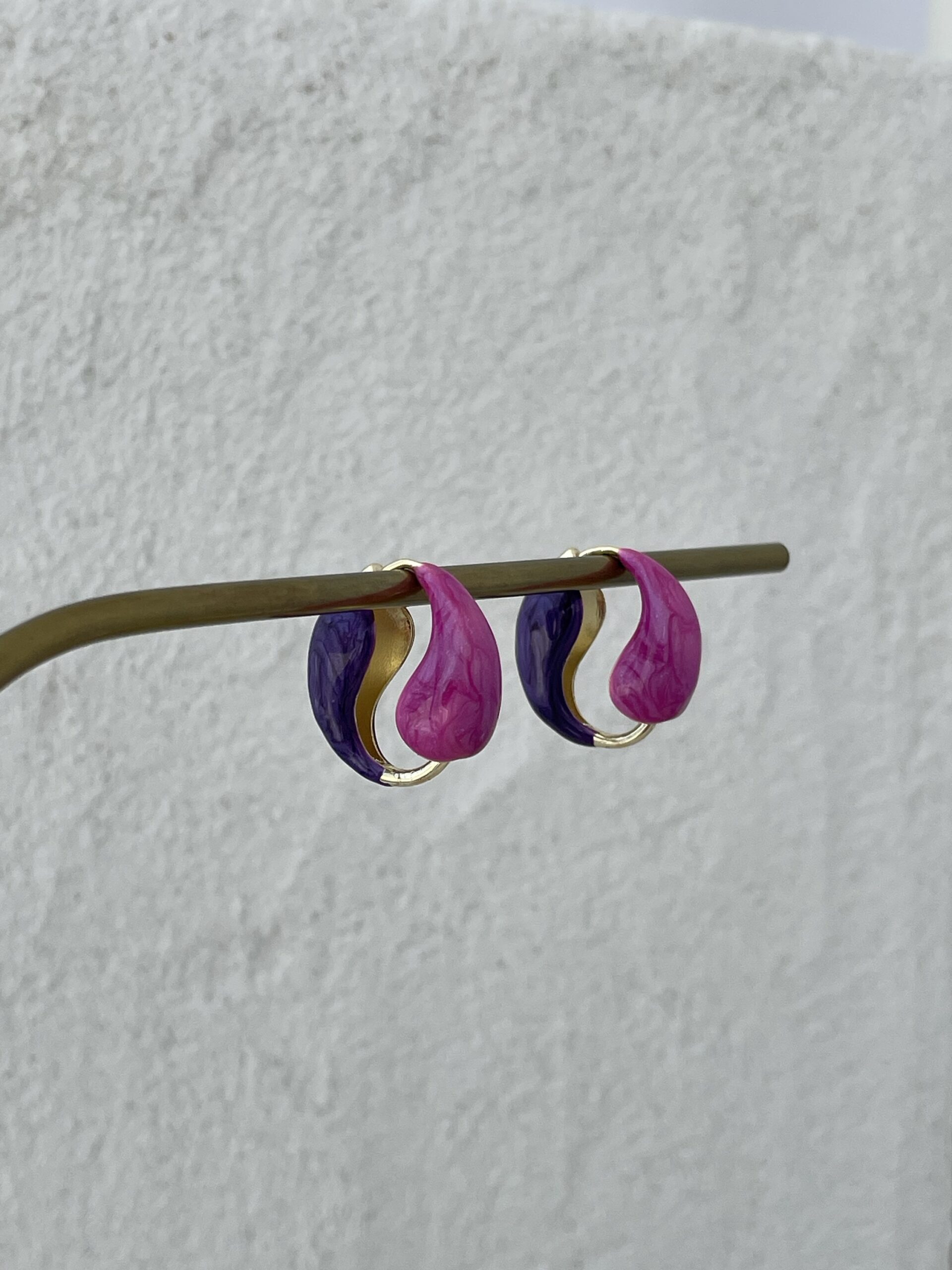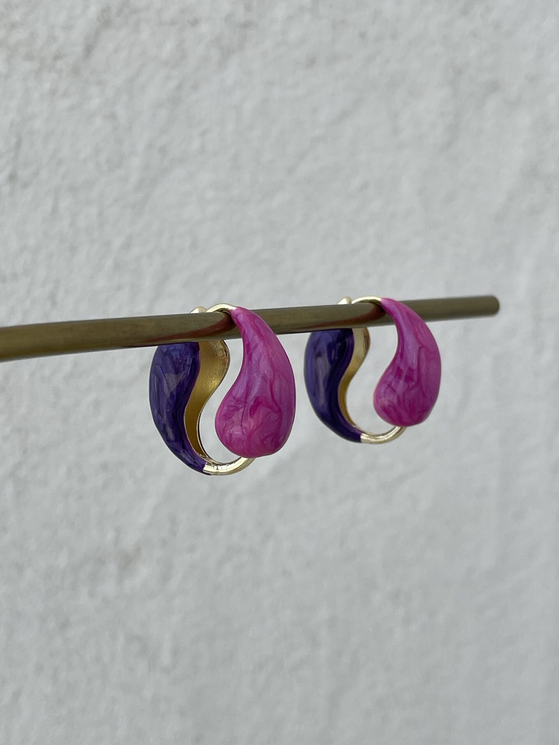 Özel Seri Mor Fuşya Damla Halka Tasarım Gold Küpe