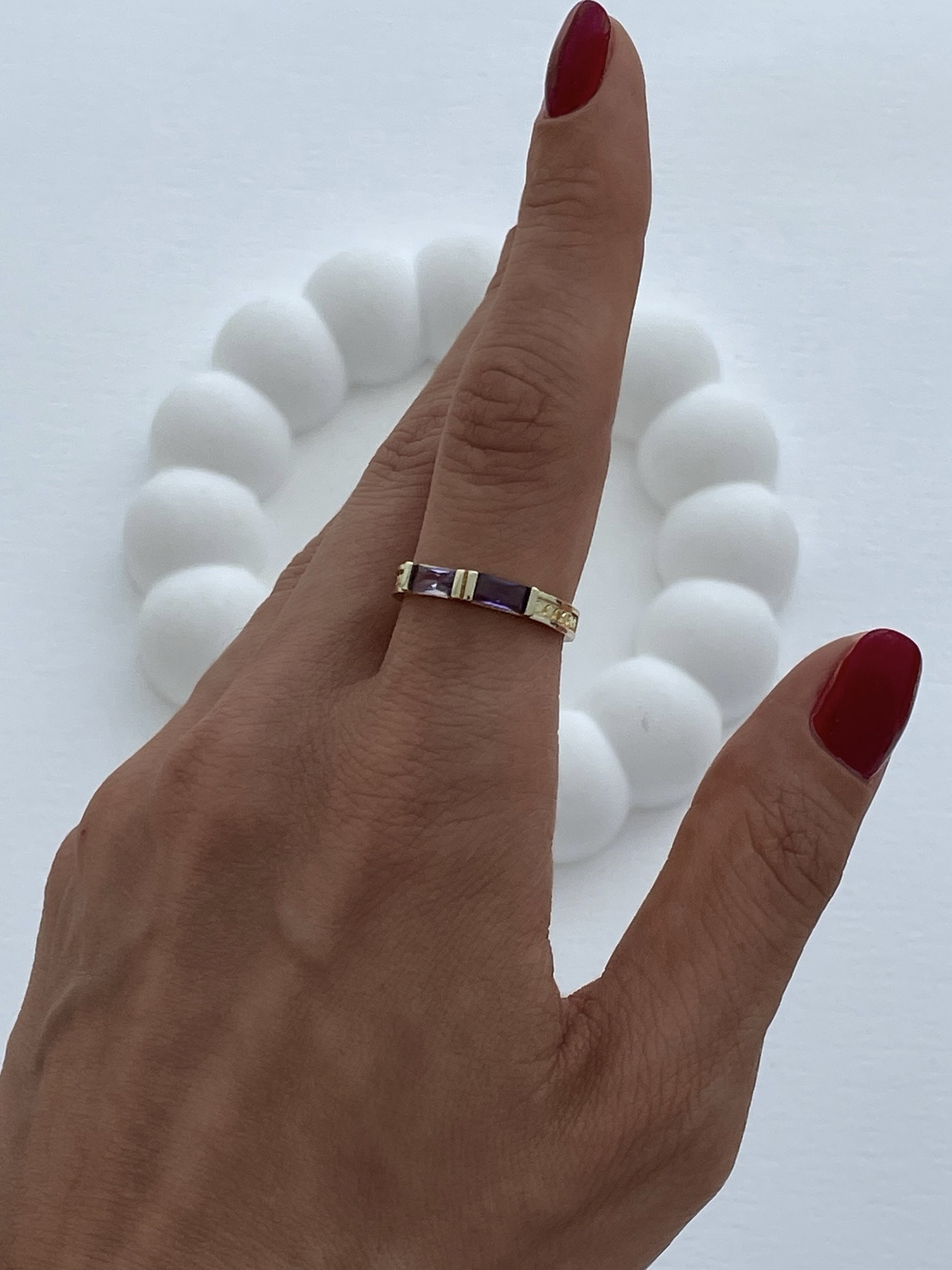 Özel Seri Mor İkili Baget Taş Gold Ayarlanabilir Yüzük