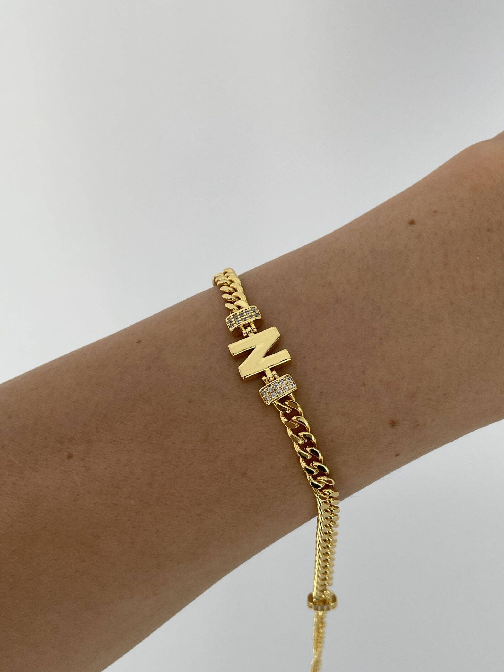 Özel Seri N Harf Zirkon Taşlı Gold Bileklik